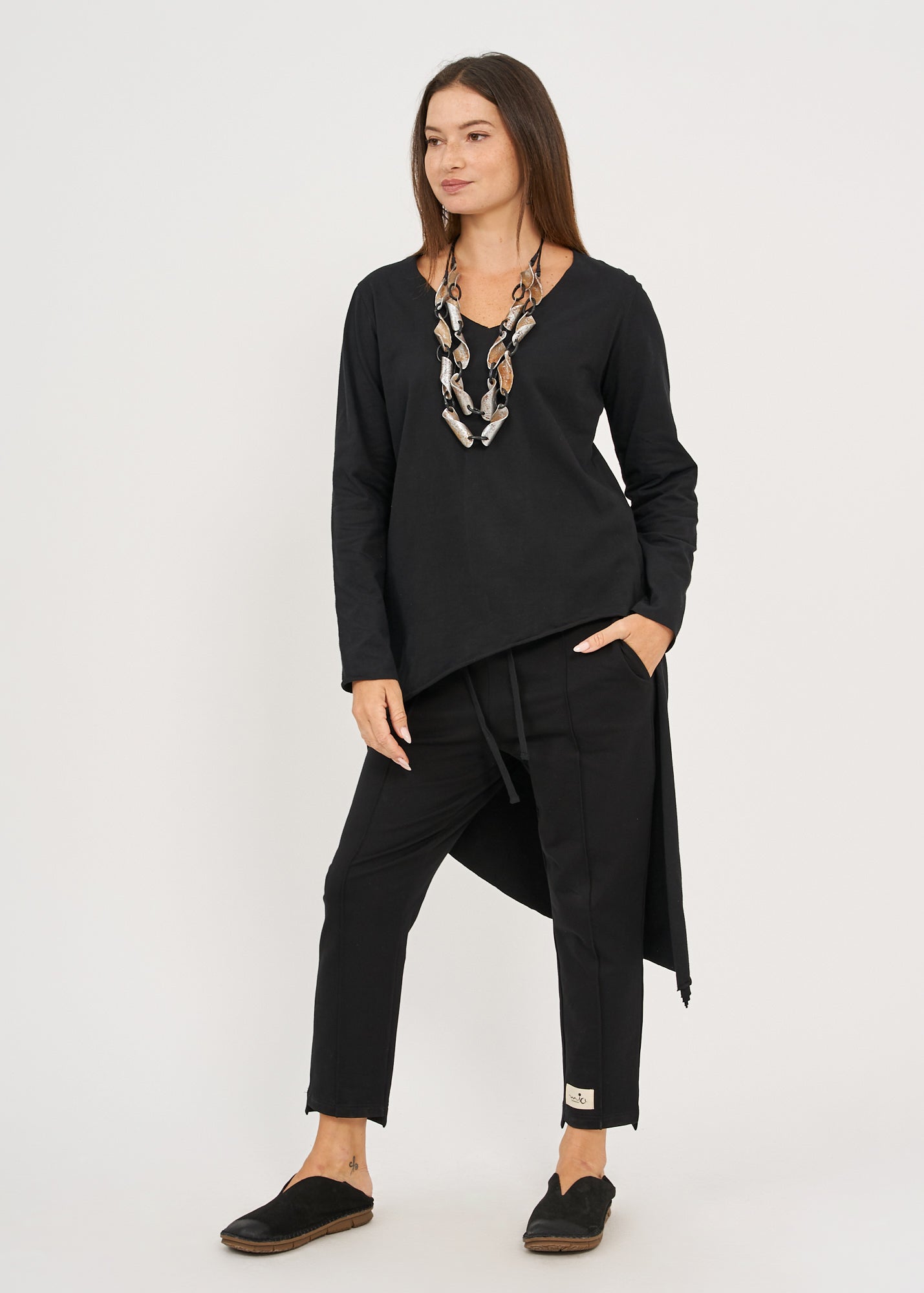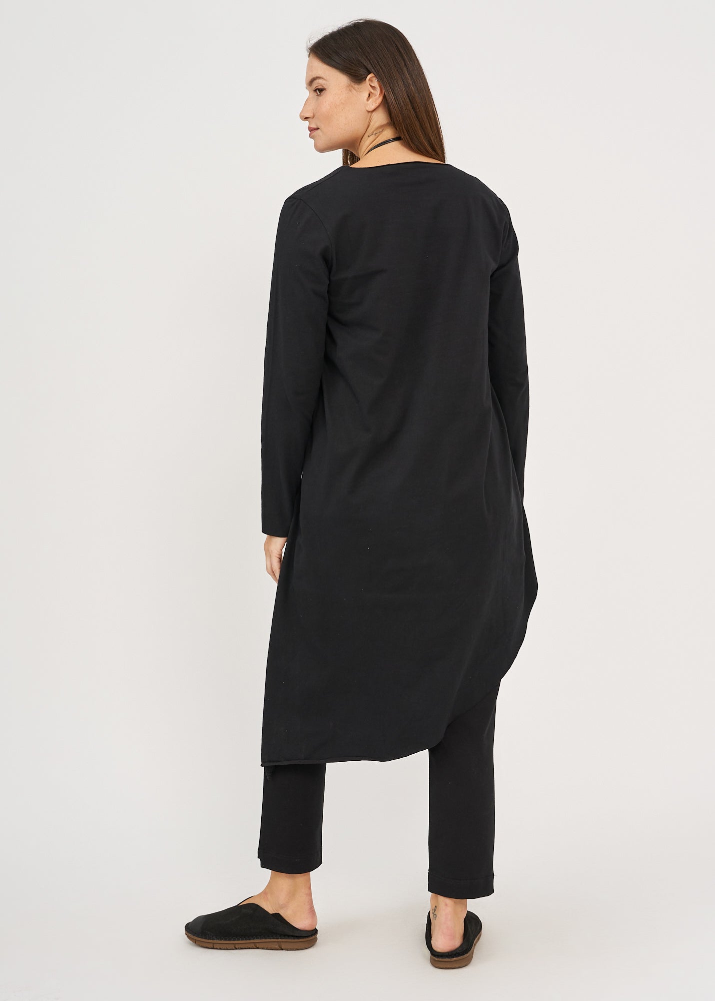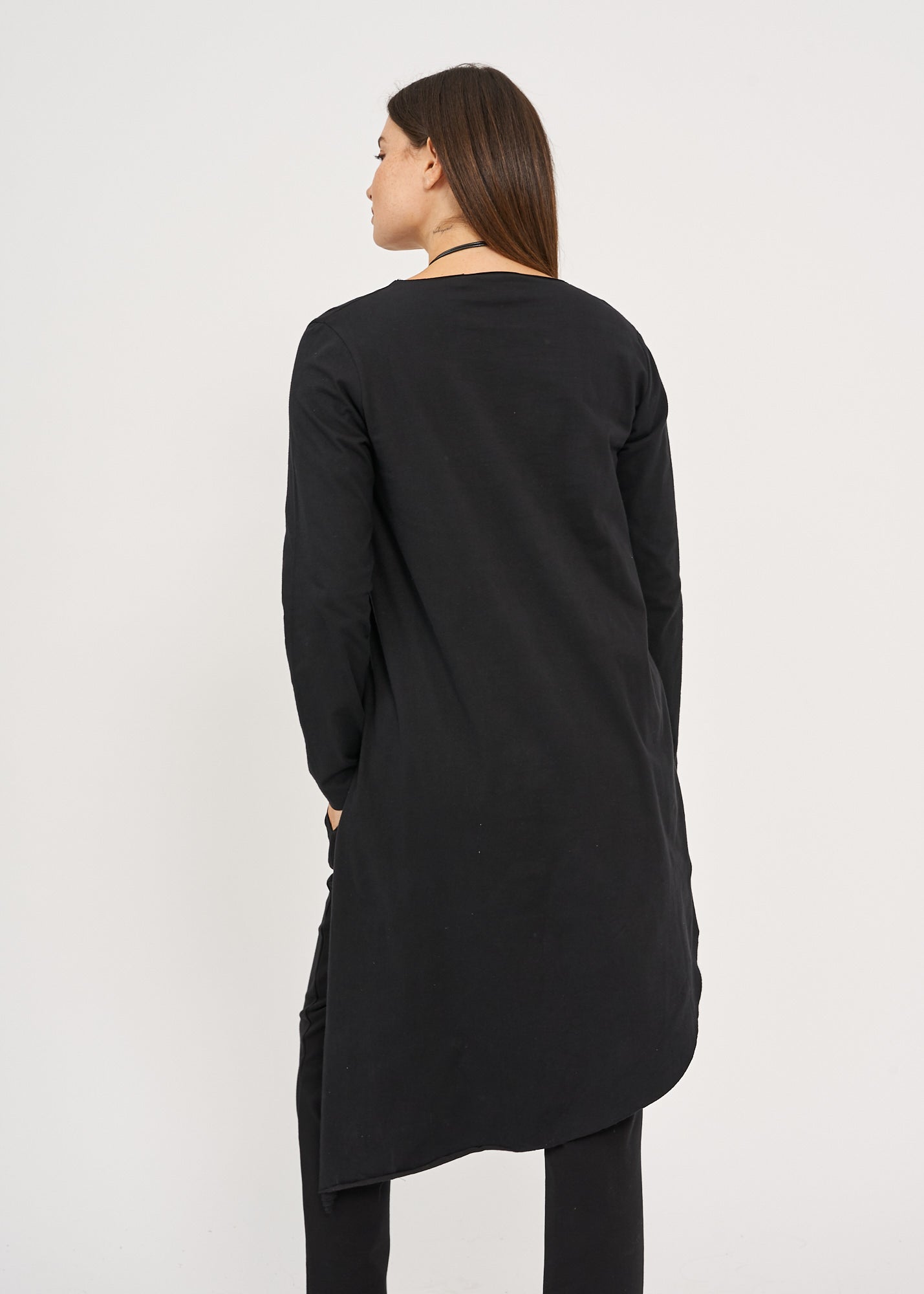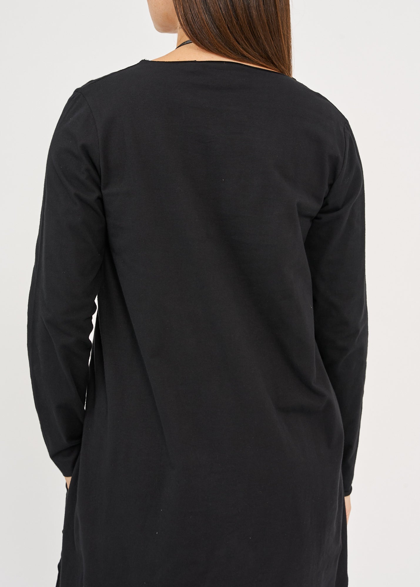 חולצה שרוול ארוך מפתח וי גב ארוך שחור
