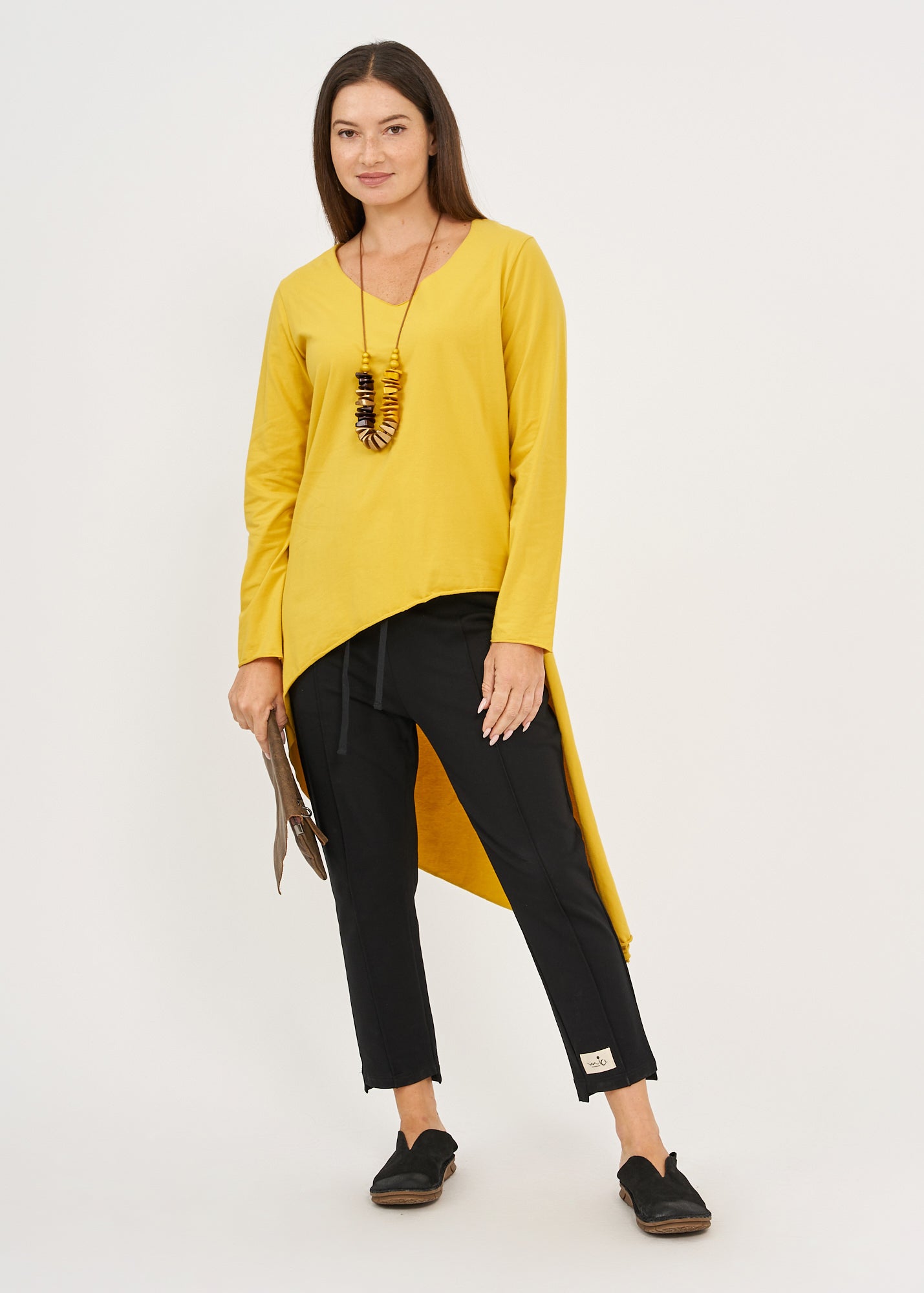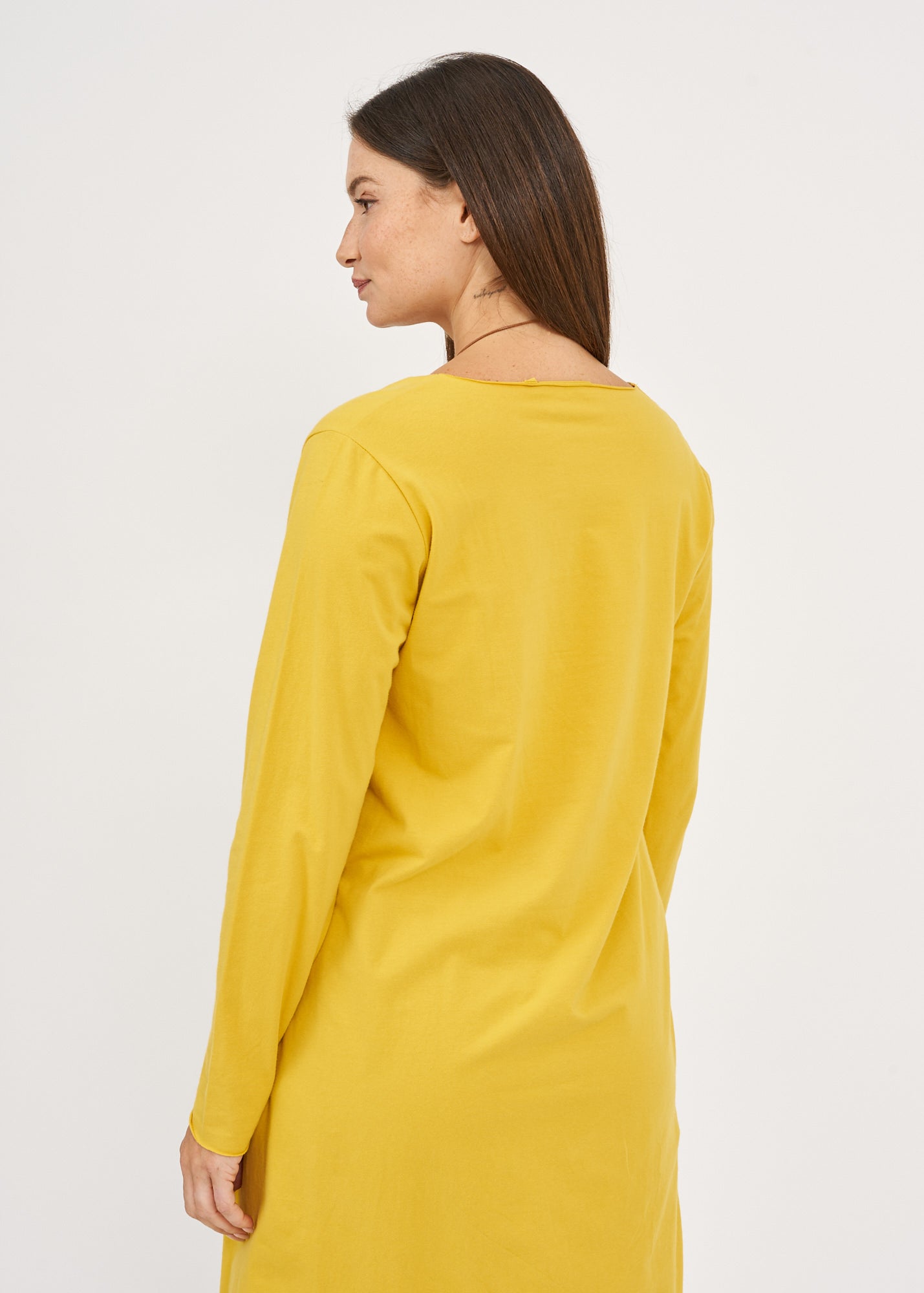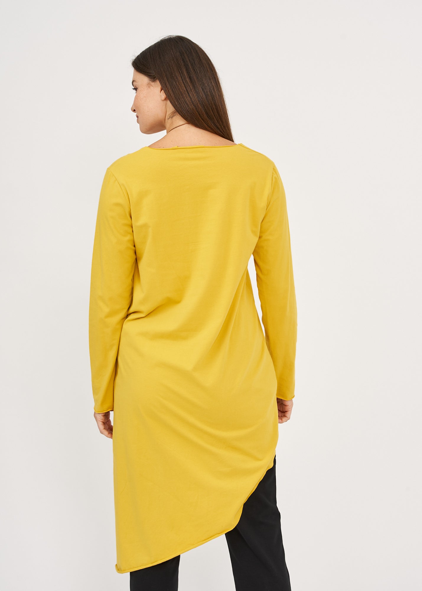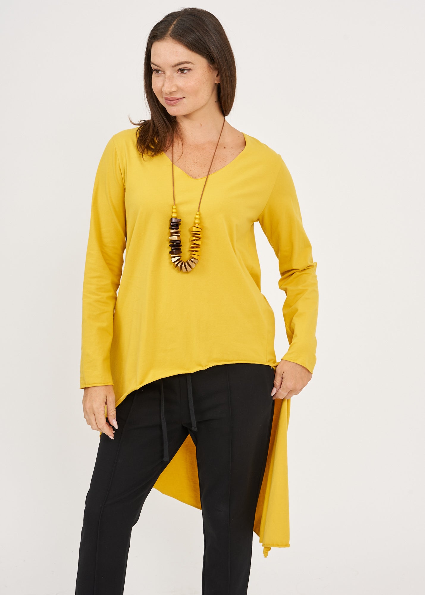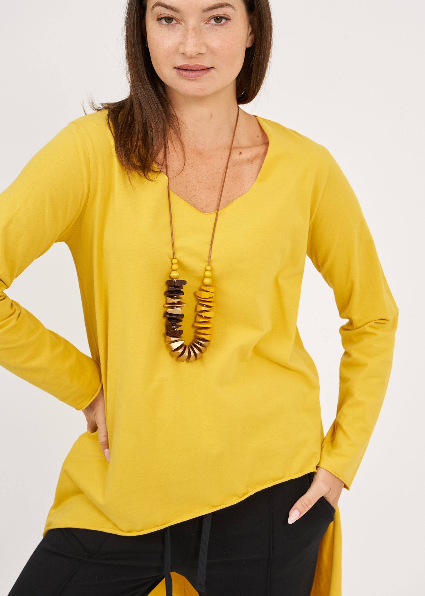 חולצה שרוול ארוך מפתח וי גב ארוך חרדל