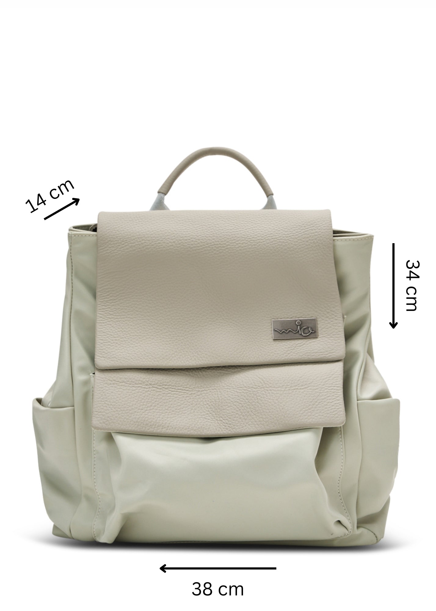 תיק גב עם קלאפה כפולה וכיסיים צדדיים, בעל ידית עליונה המאפשרת נשיאה ביד, לצד רצועות גב מרופדות ומתכווננות לנוחות מקסימלית בנשיאה על הגב.