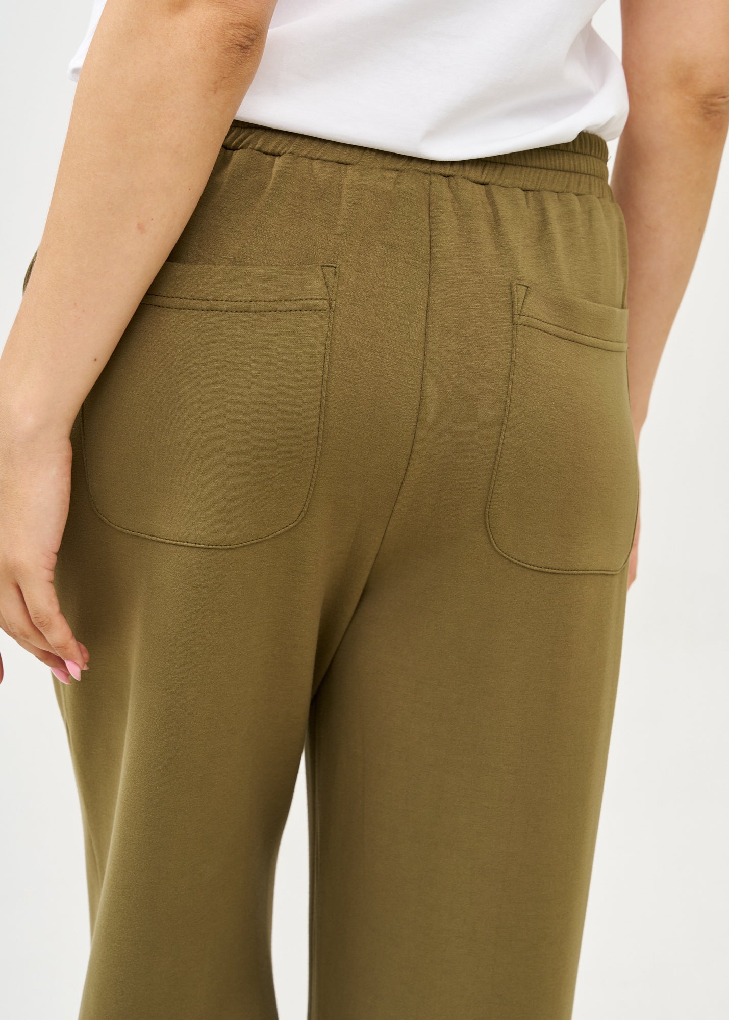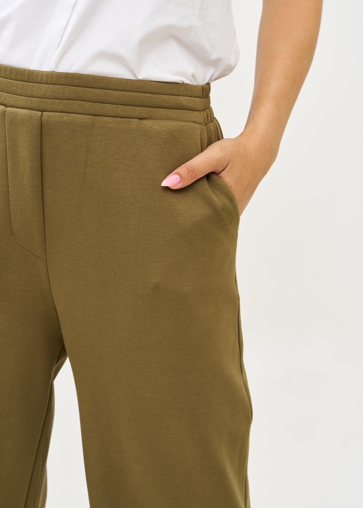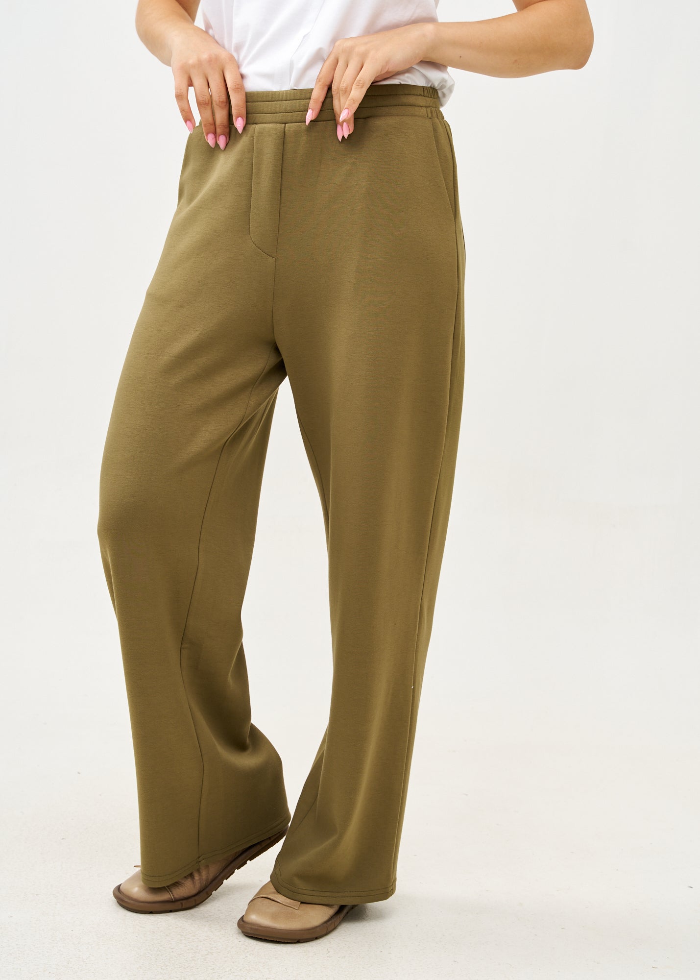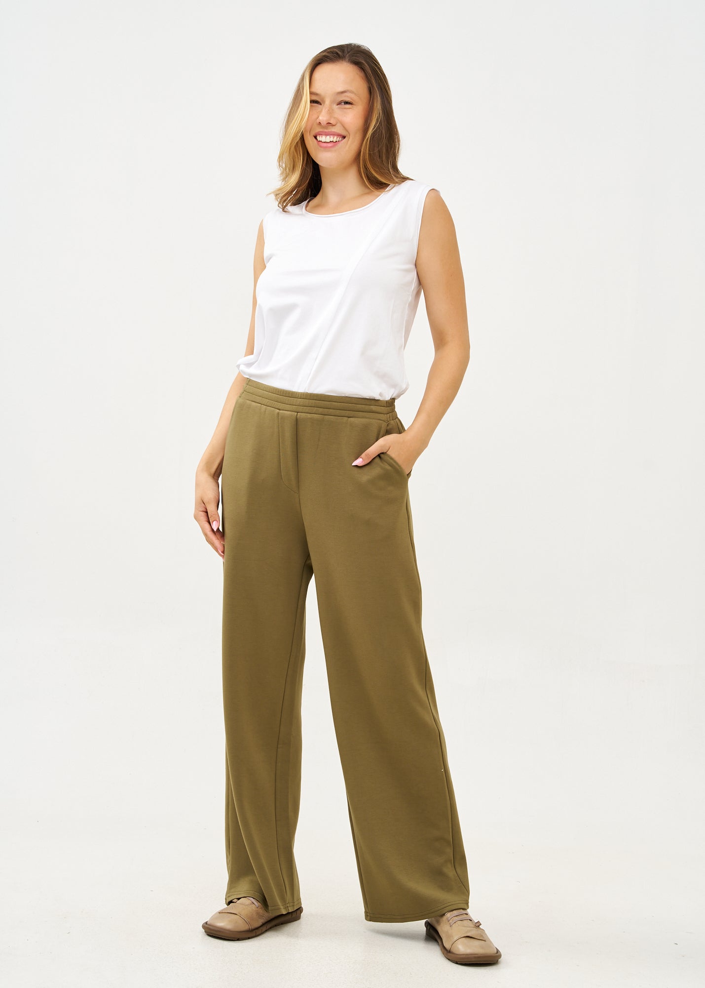 מכנסיים רחבים ונוחים במיוחד בגזרה משוחררת ישרה ואלגנטית, בעלי מותן אלסטית רחבה המבטיחה התאמה מושלמת וללא לחץ, שני כיסים קדמיים ושני כיסים אחוריים.