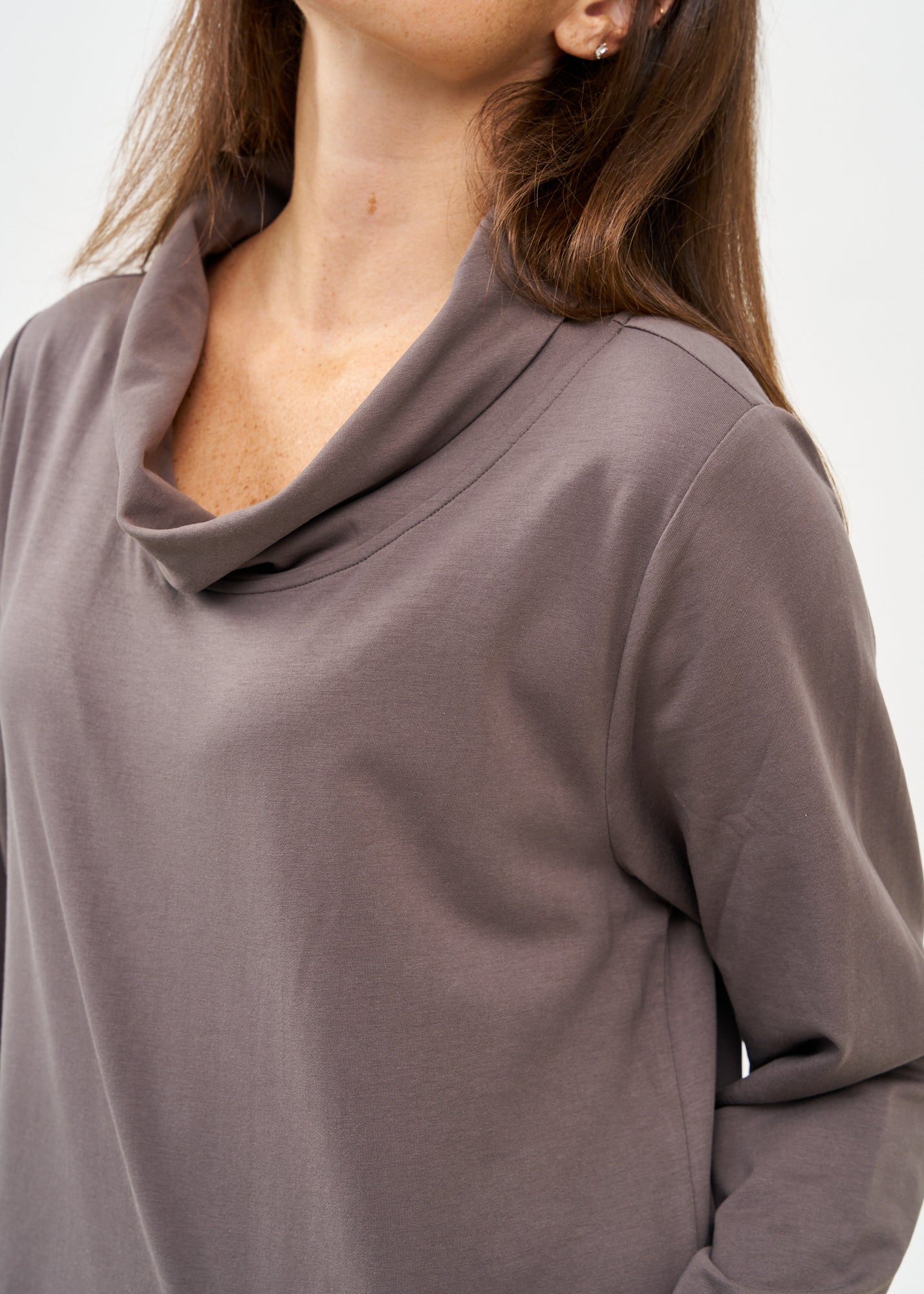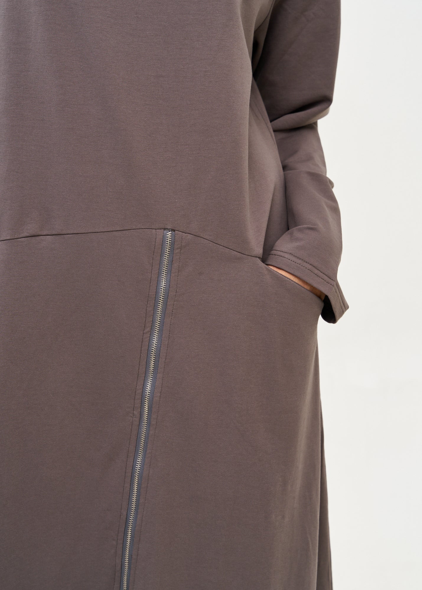 שמלה שרוול ארוך גולף ורוכסן אפור כהה