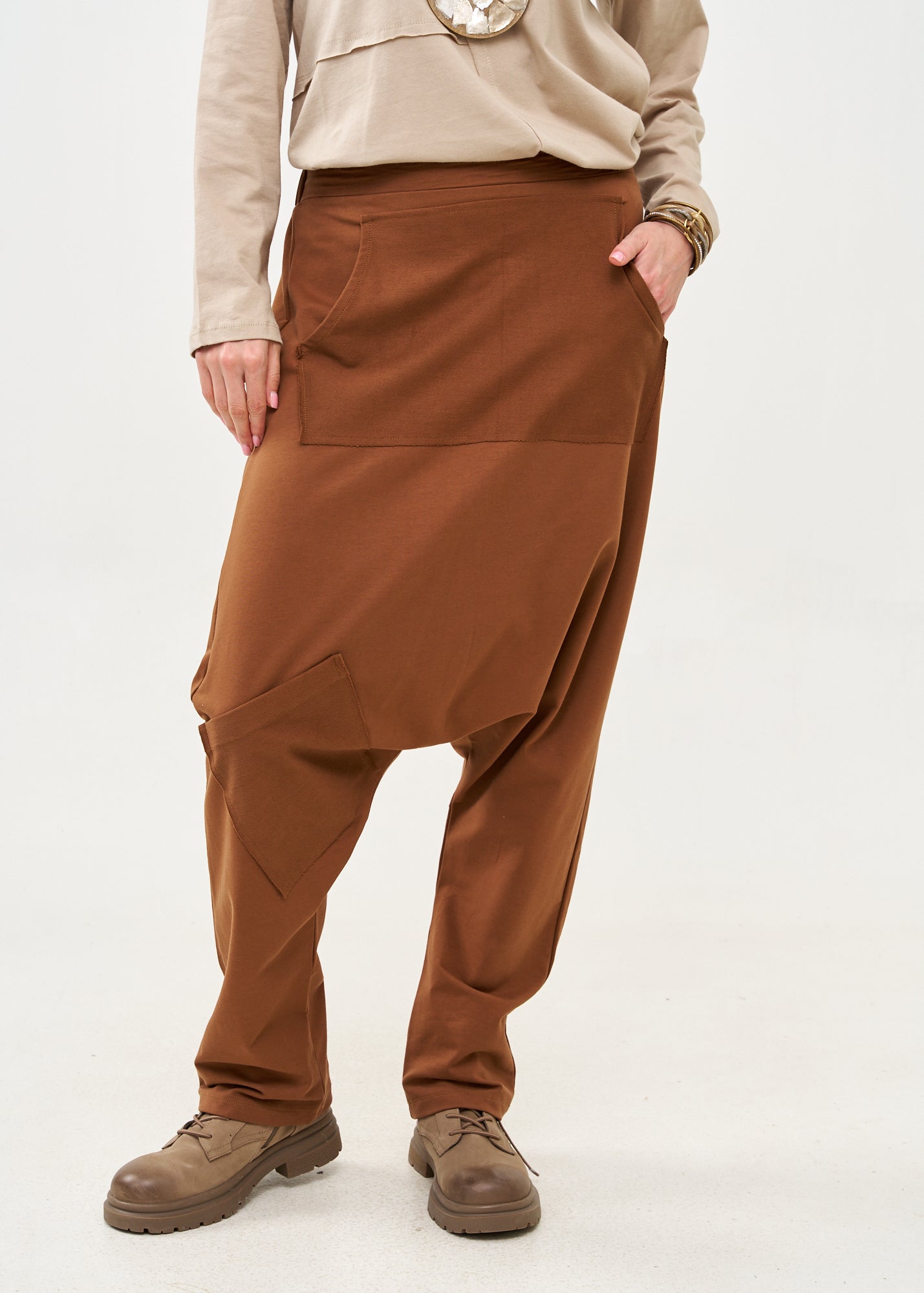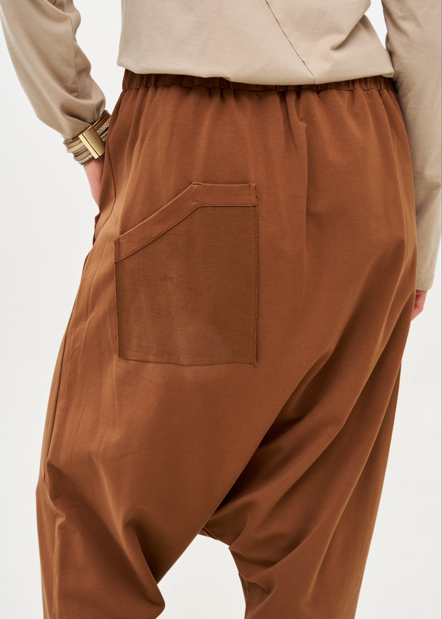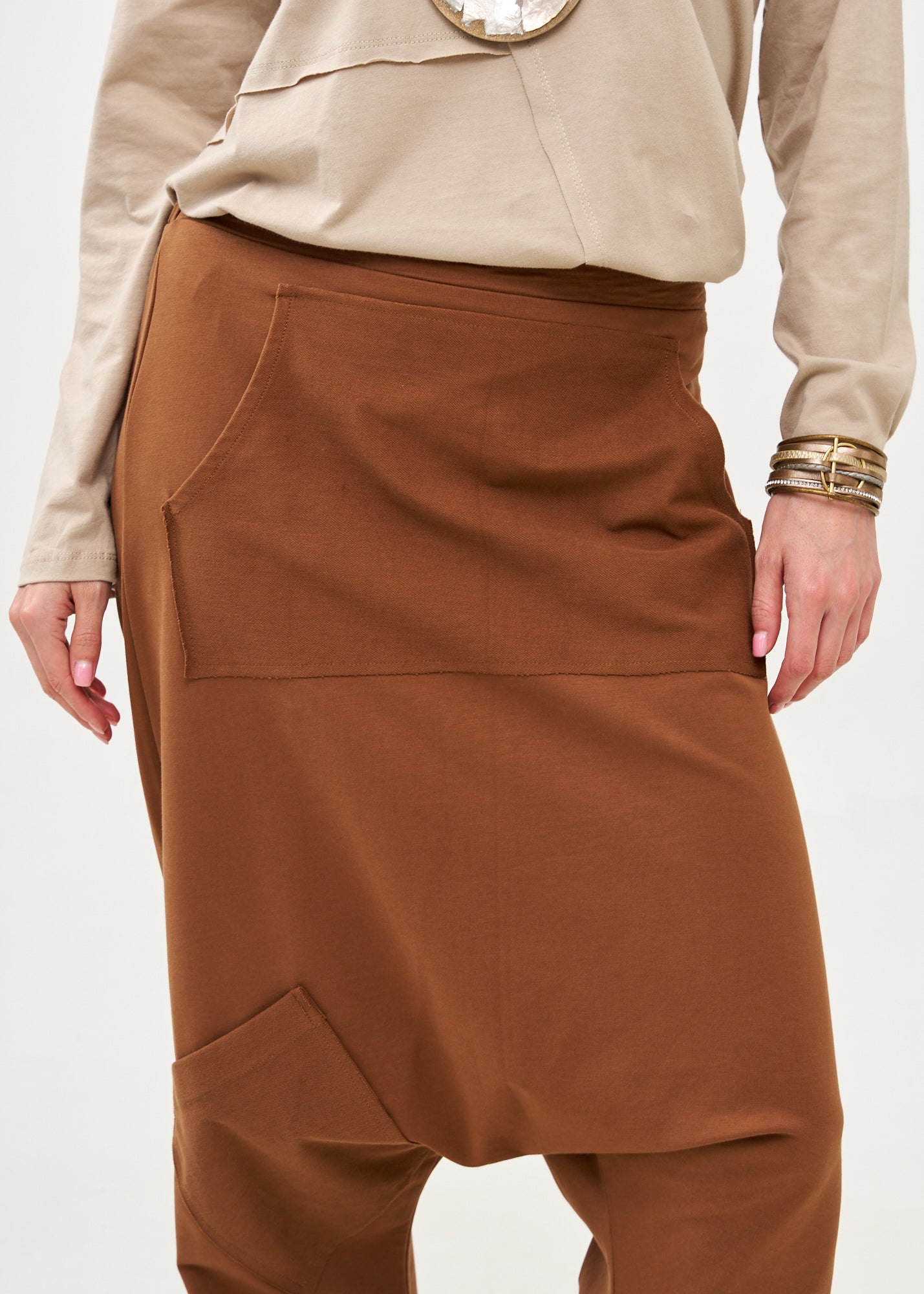מכנסיים שקי טריקו עם כיס קנגרו חום