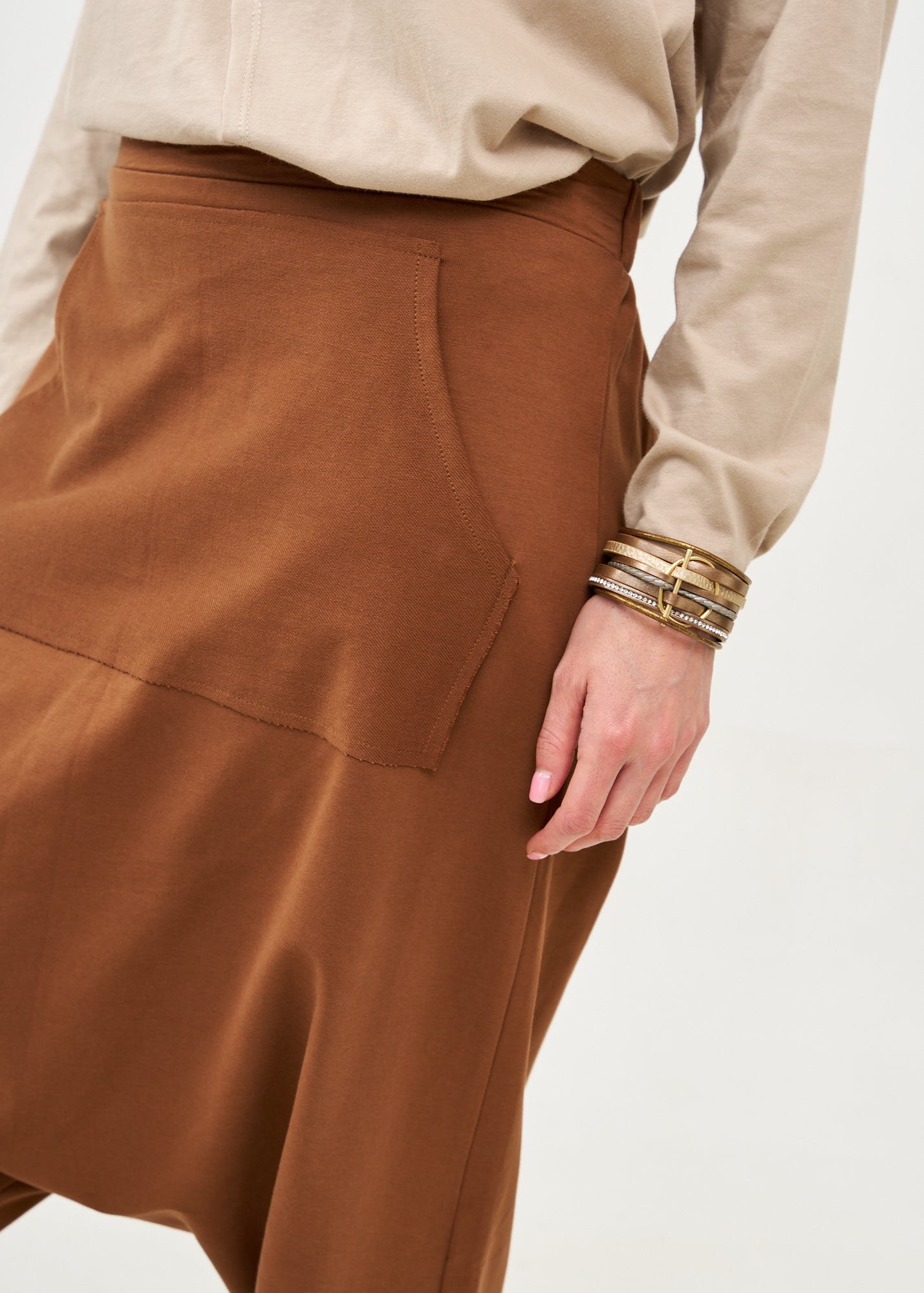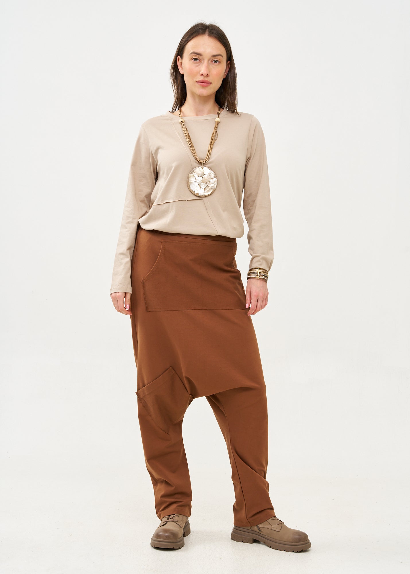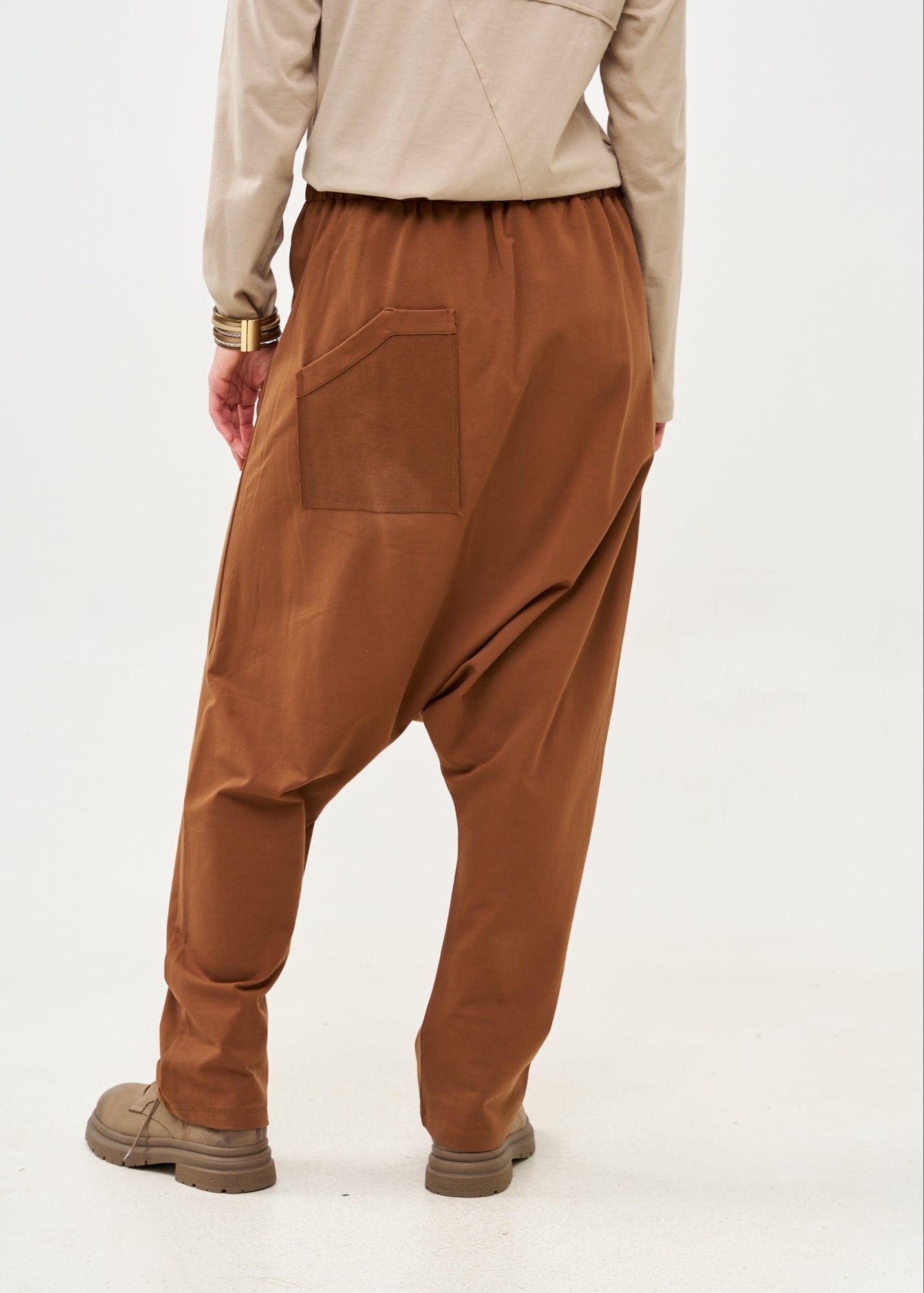 מכנסיים שקי טריקו עם כיס קנגרו חום
