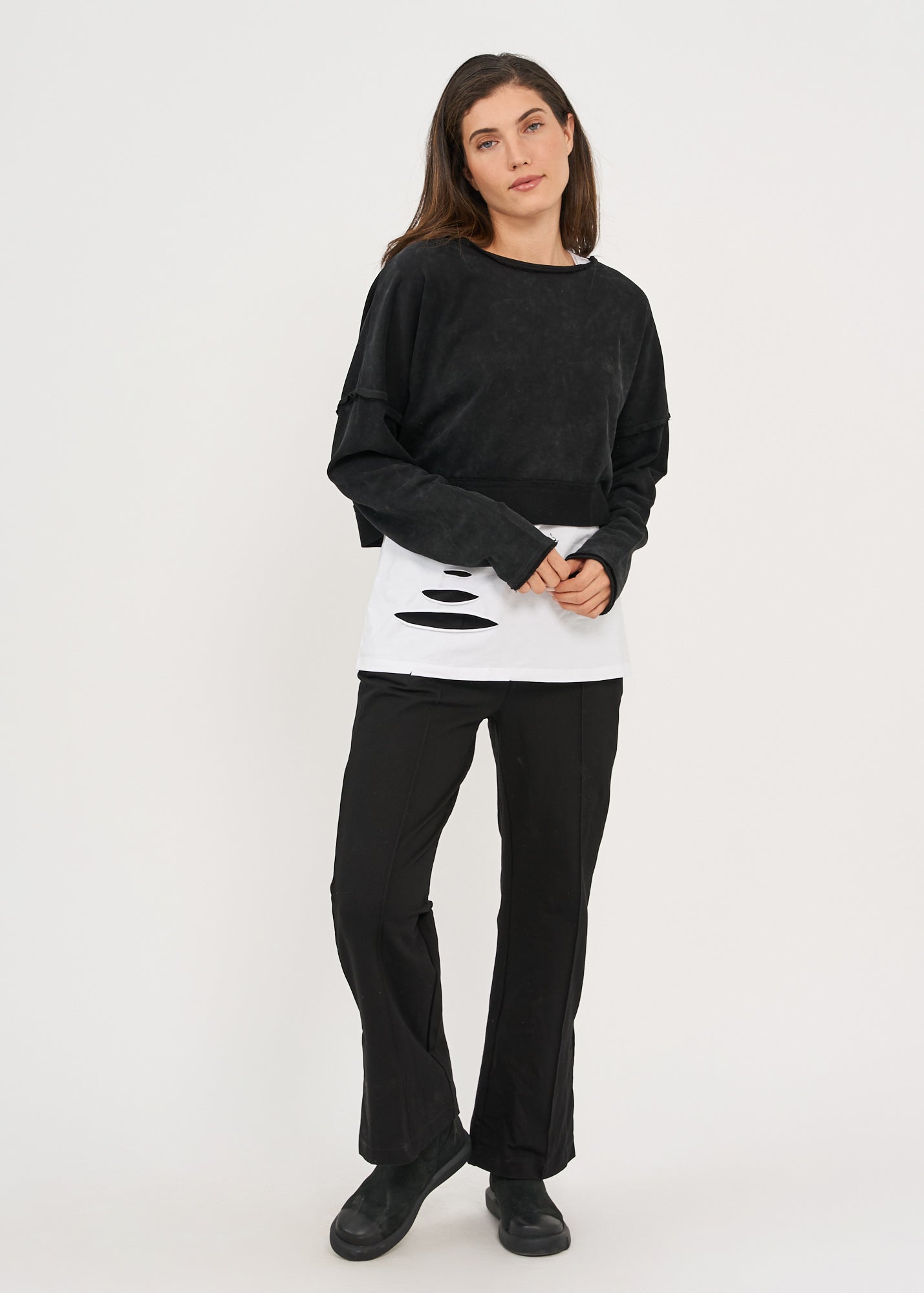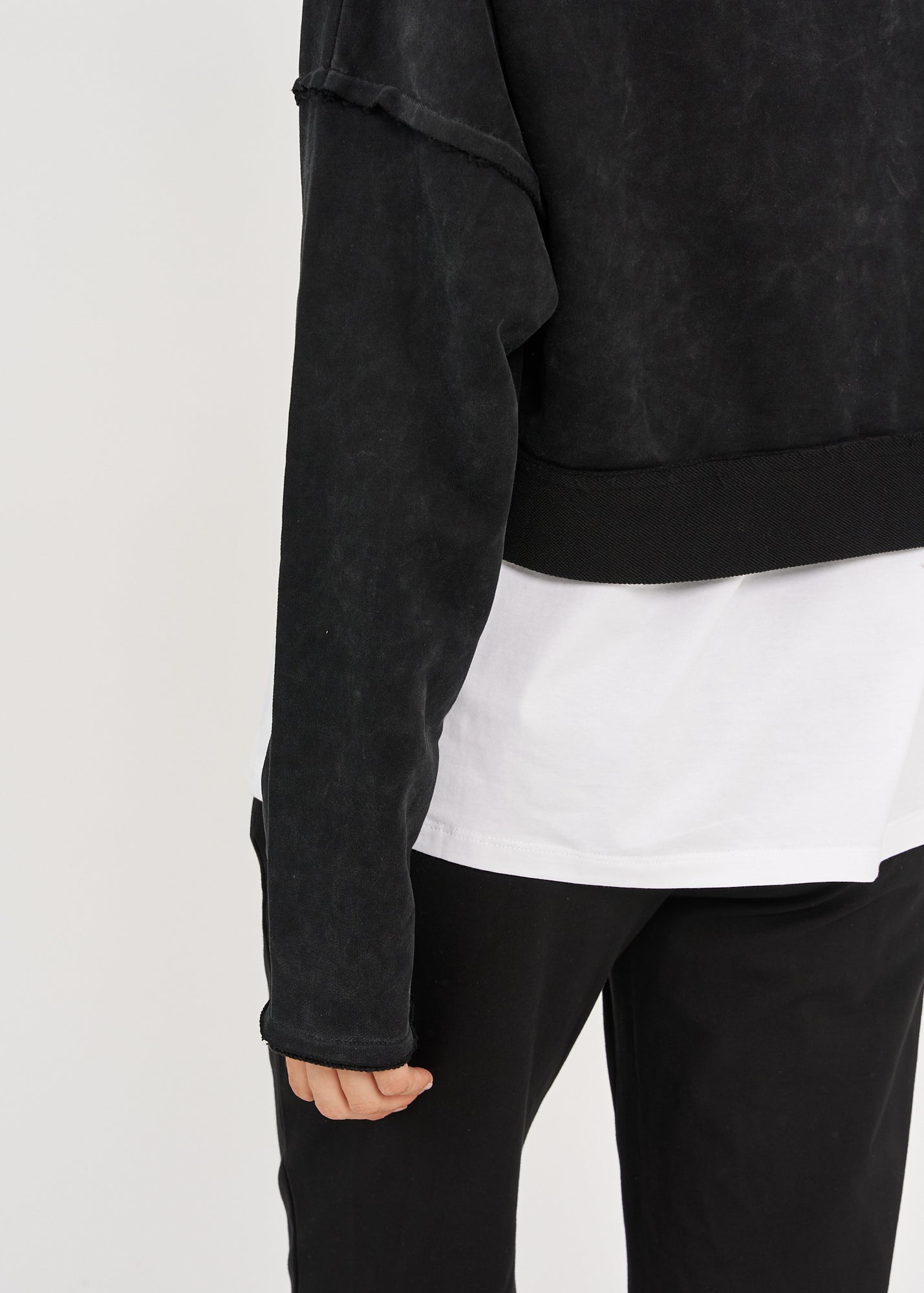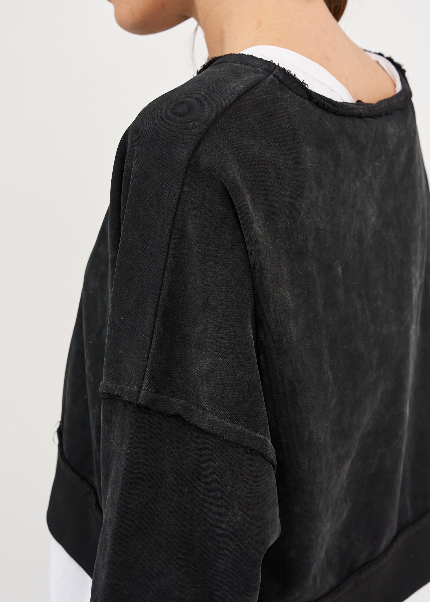 חולצה שרוול ארוך קצרצרה סיומת מקופלת שחור ווש