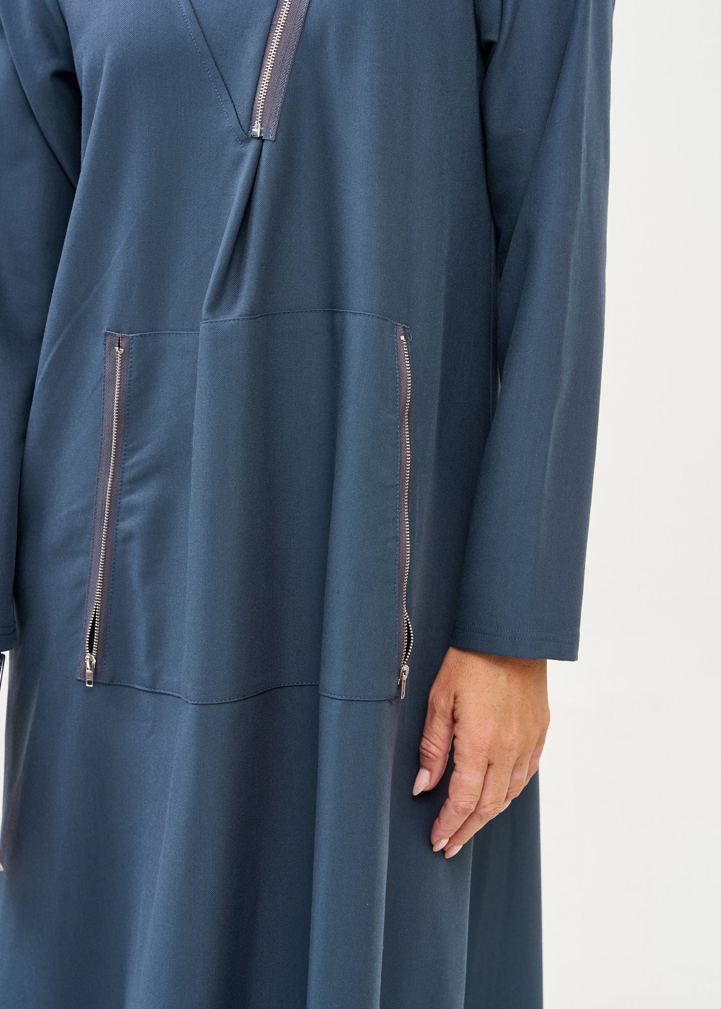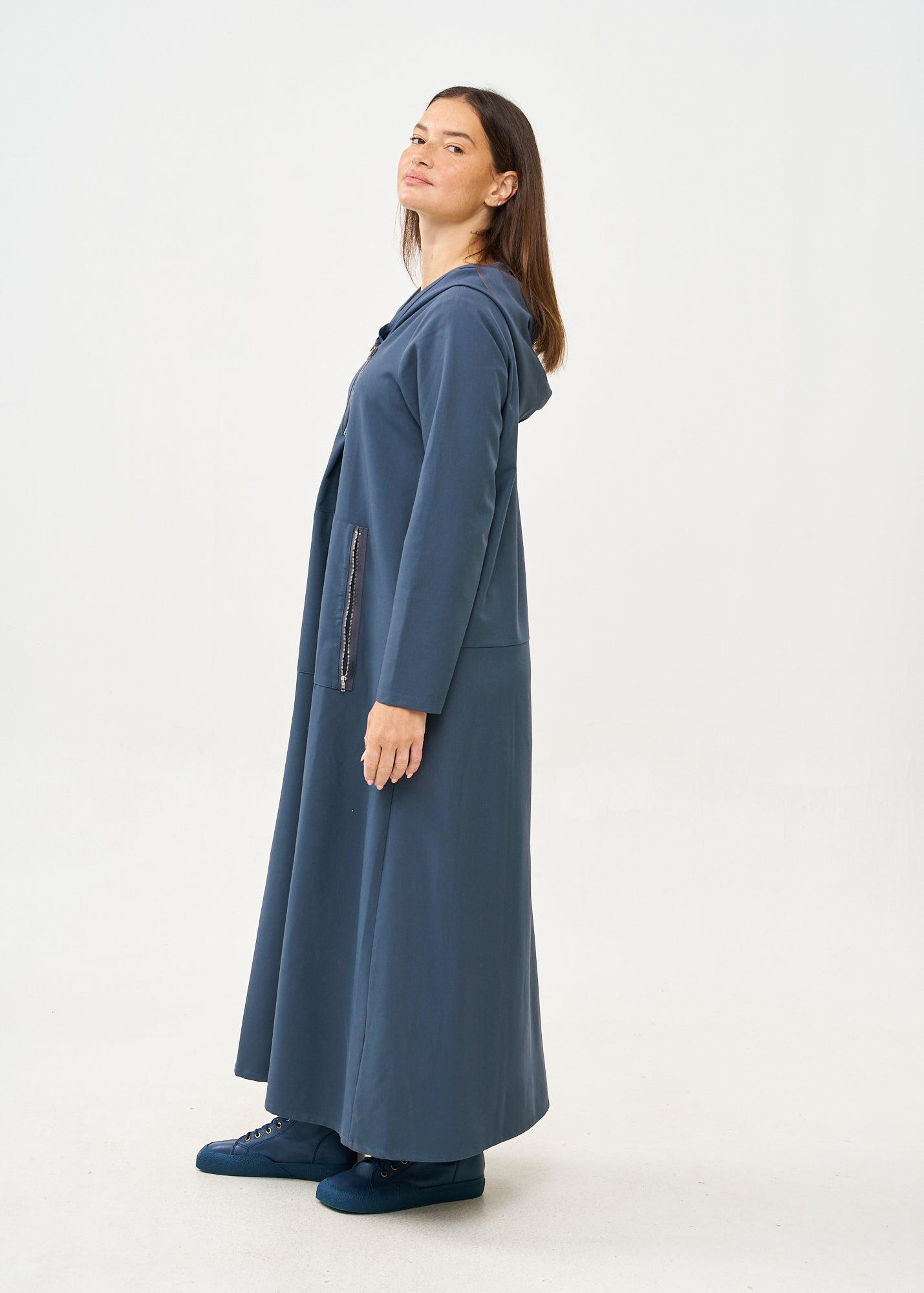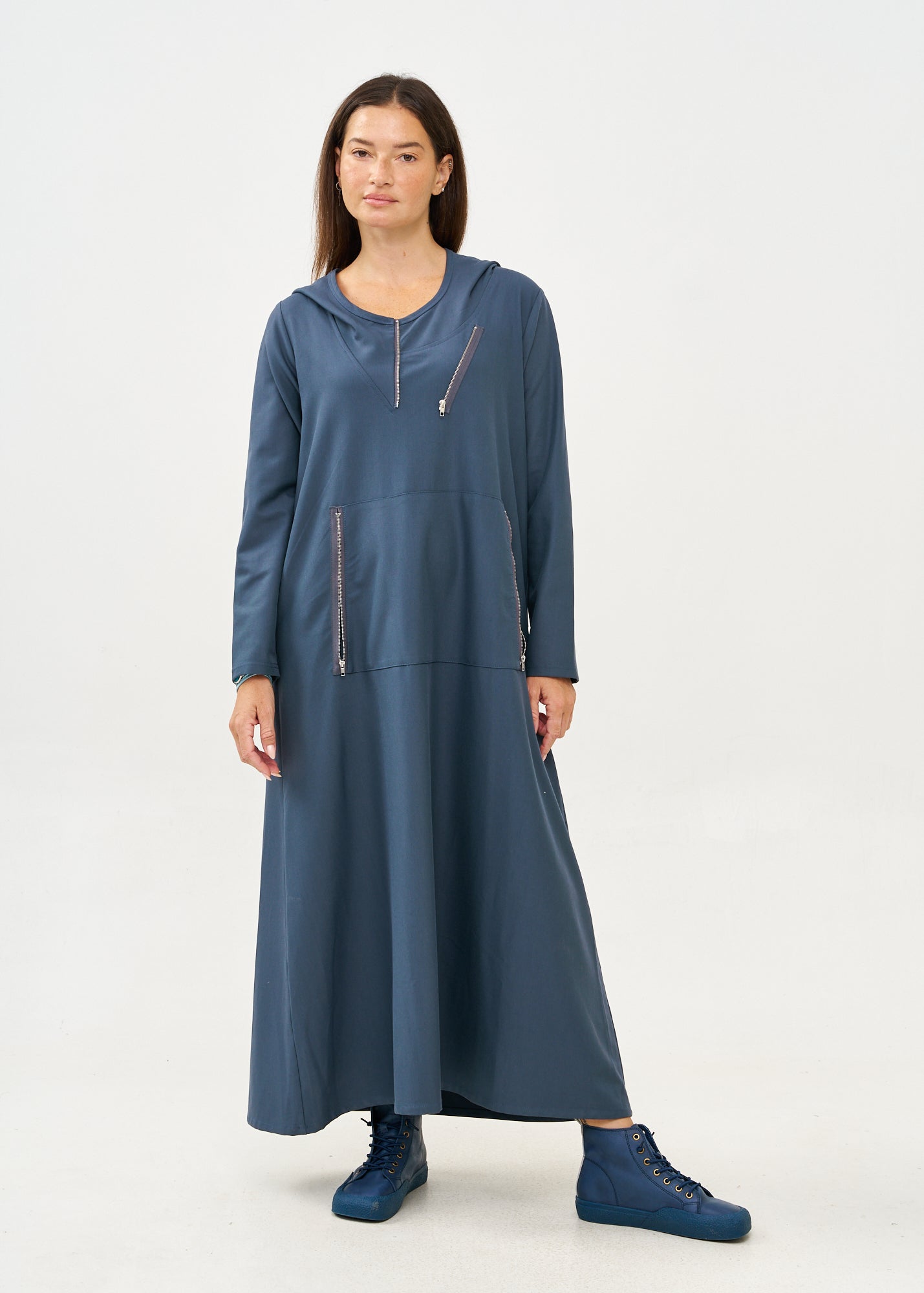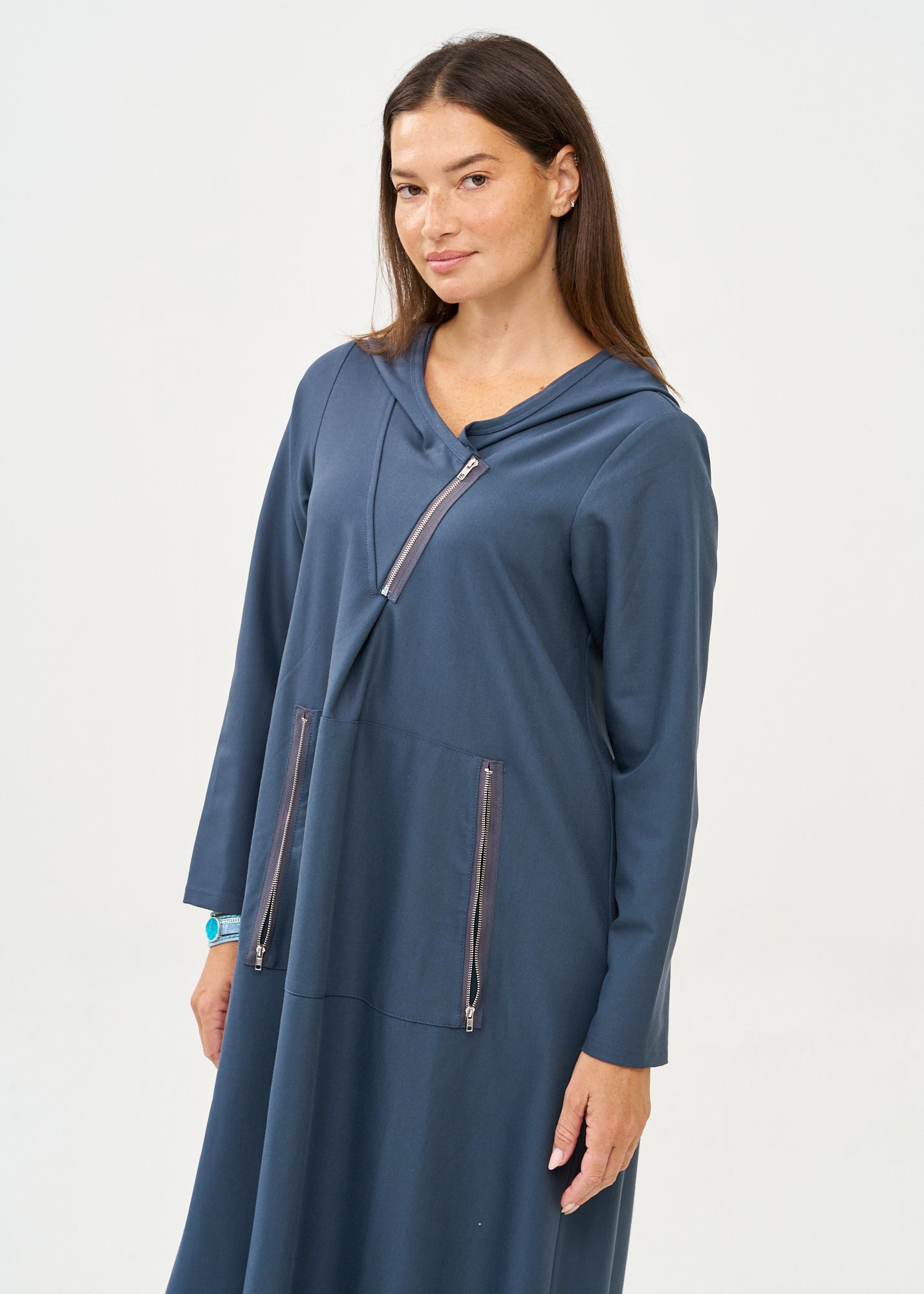 שמלה שרוול ארוך עם כובע ורוכסן כחול כהה