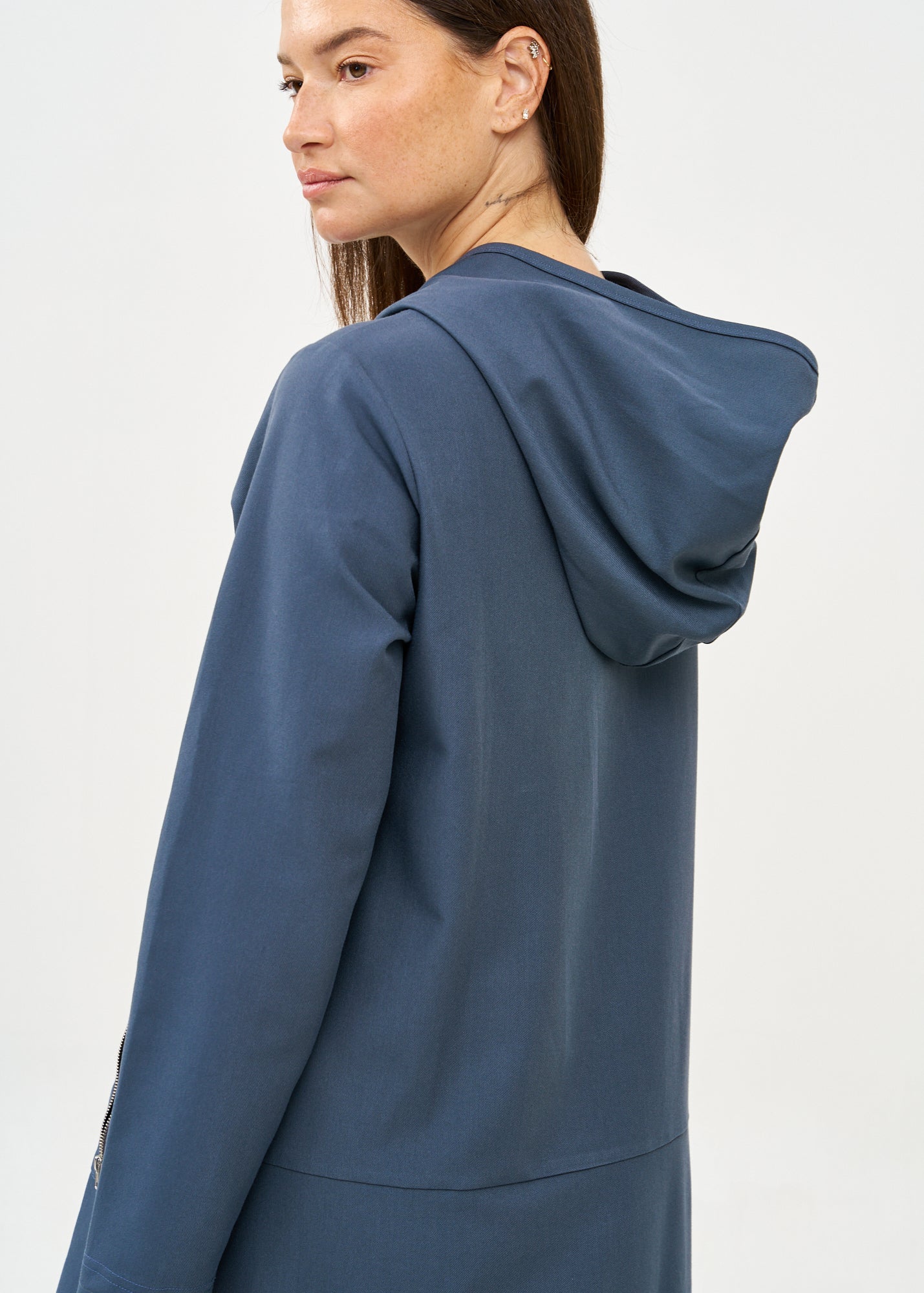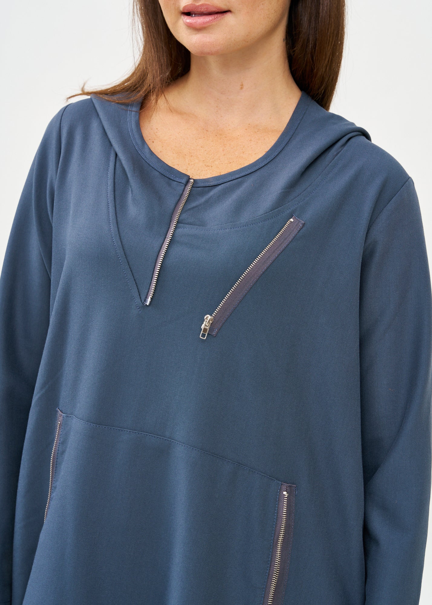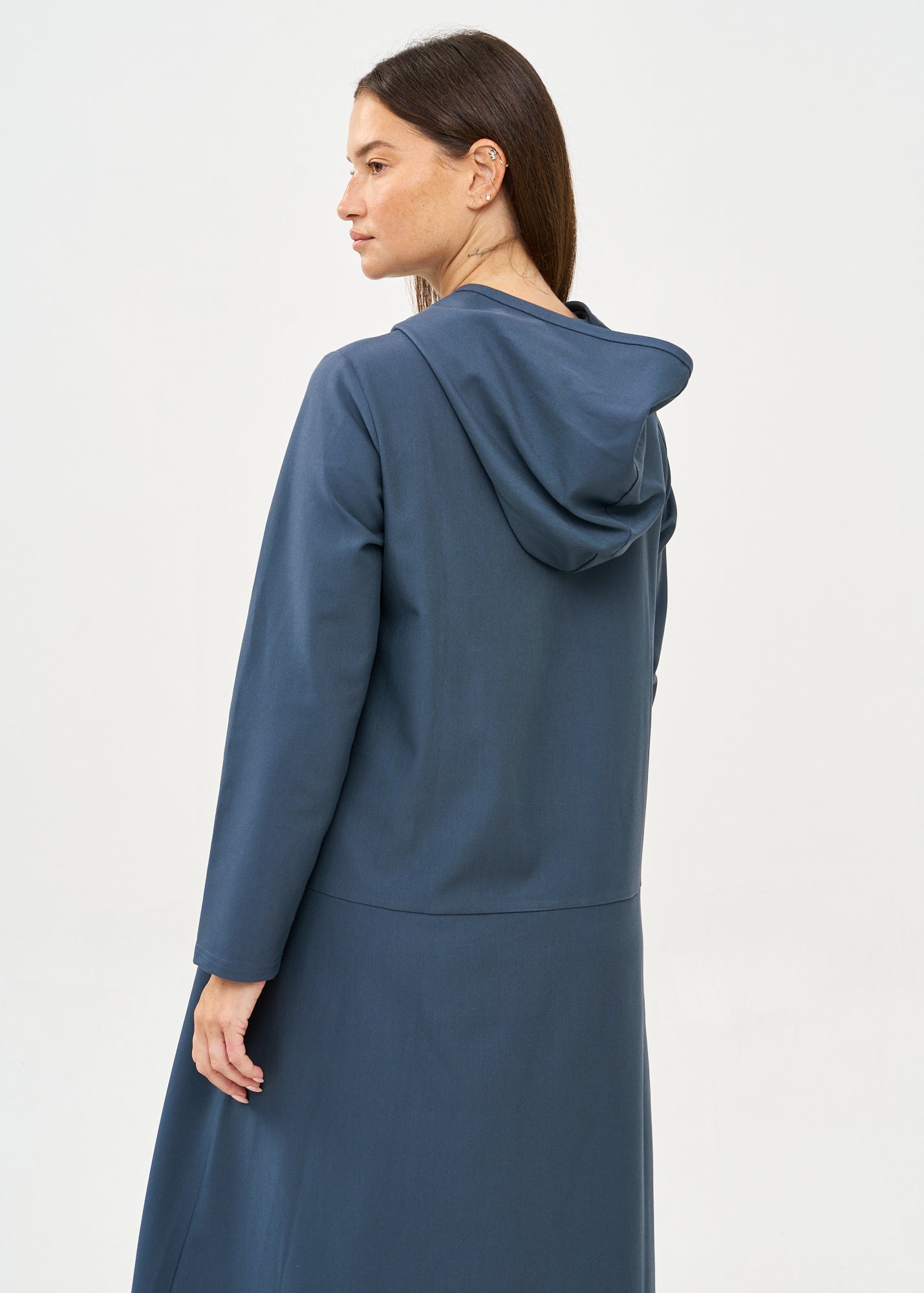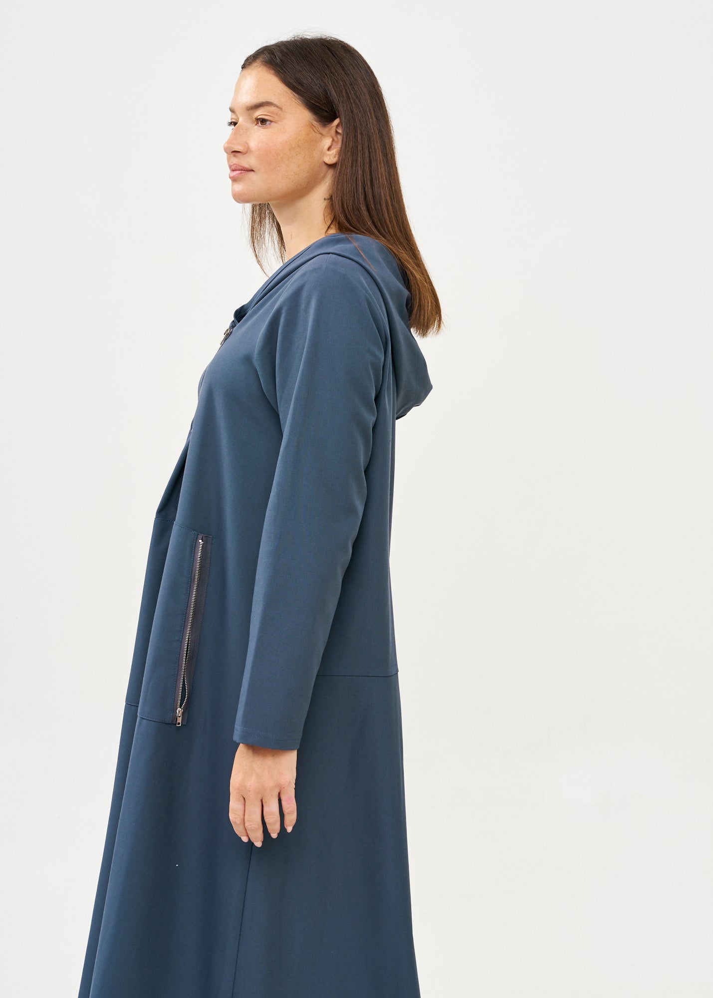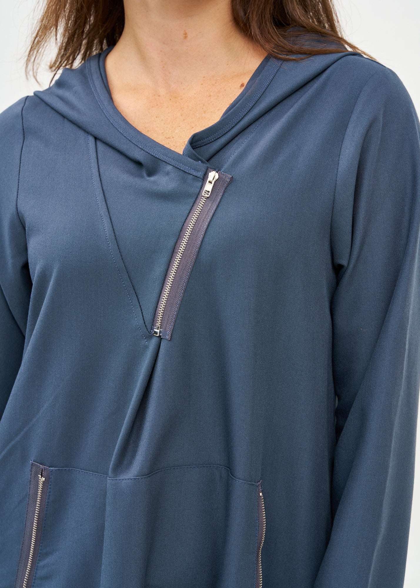 שמלה שרוול ארוך עם כובע ורוכסן כחול כהה