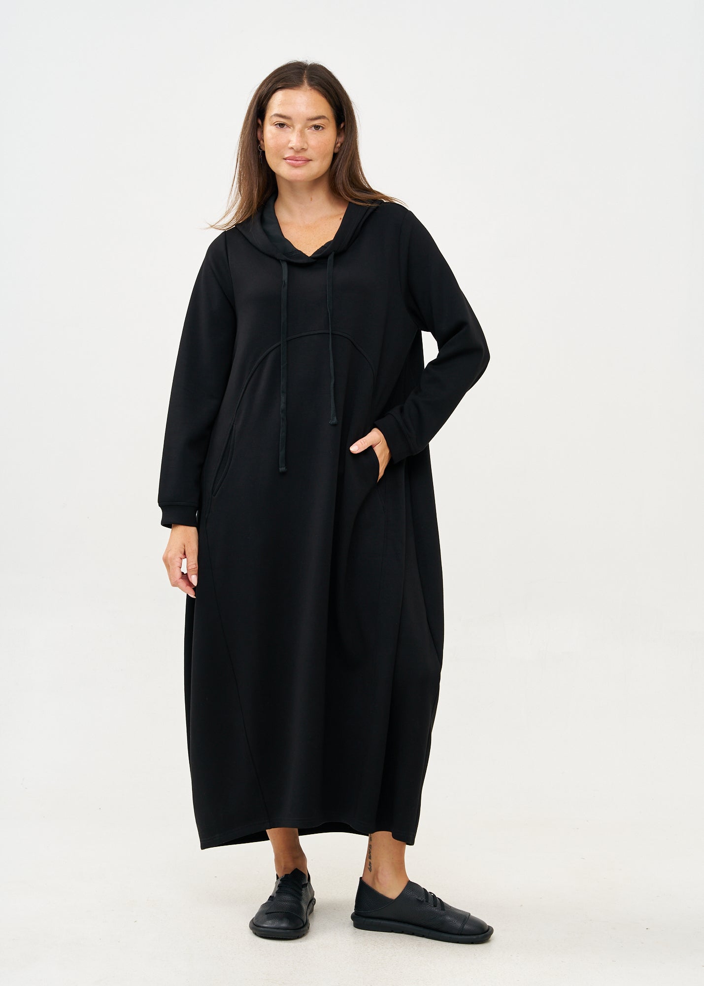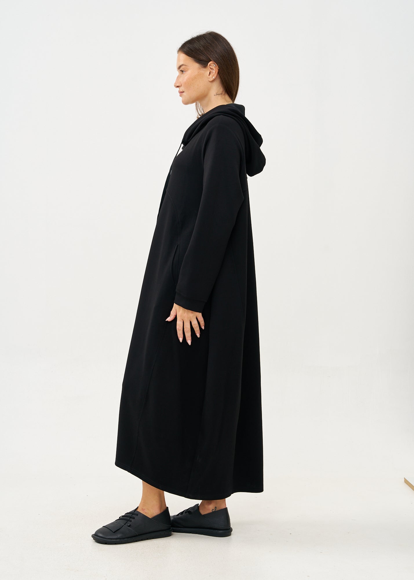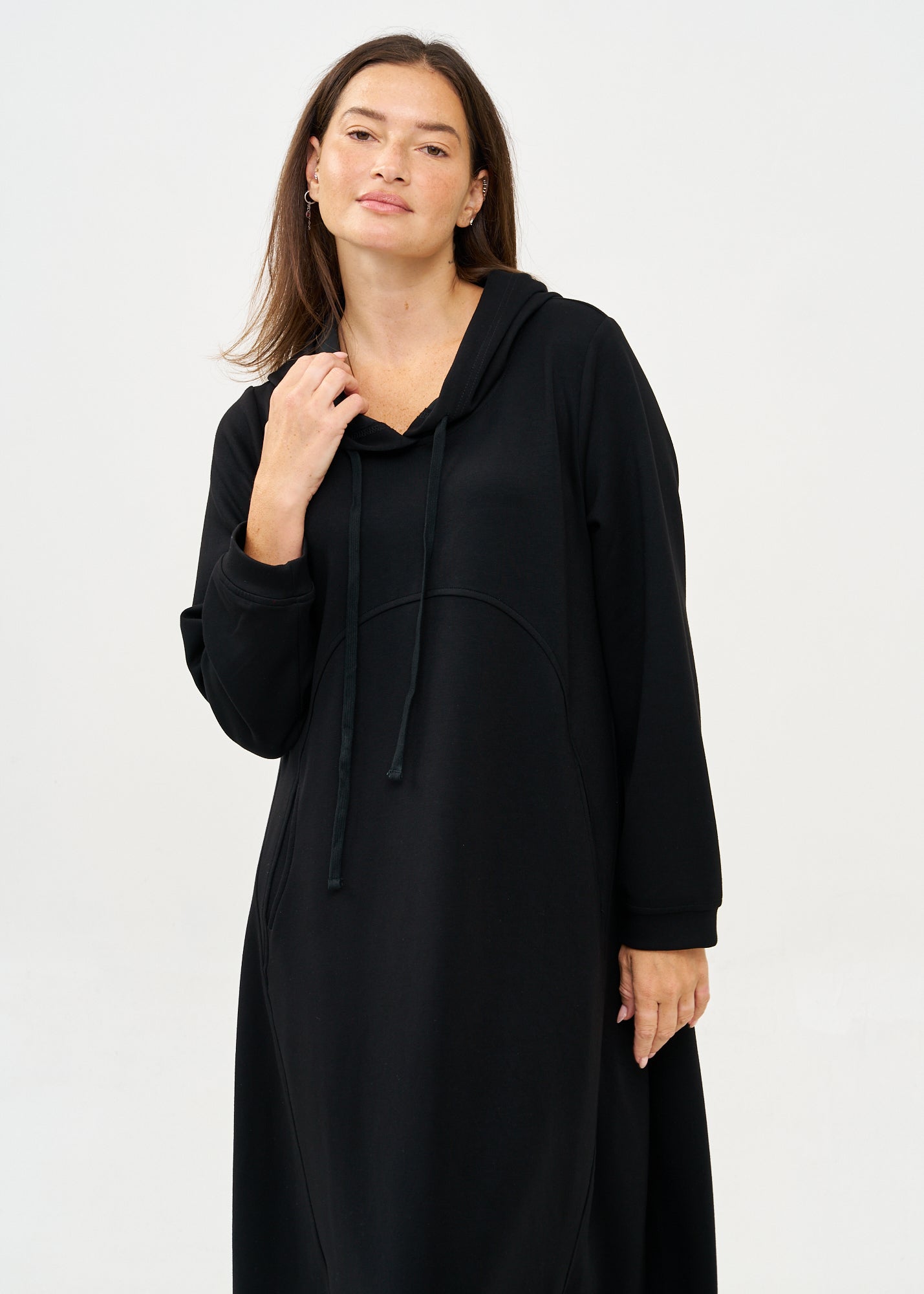 שמלה עם קפוצ'ון שרוול ארוך שחור