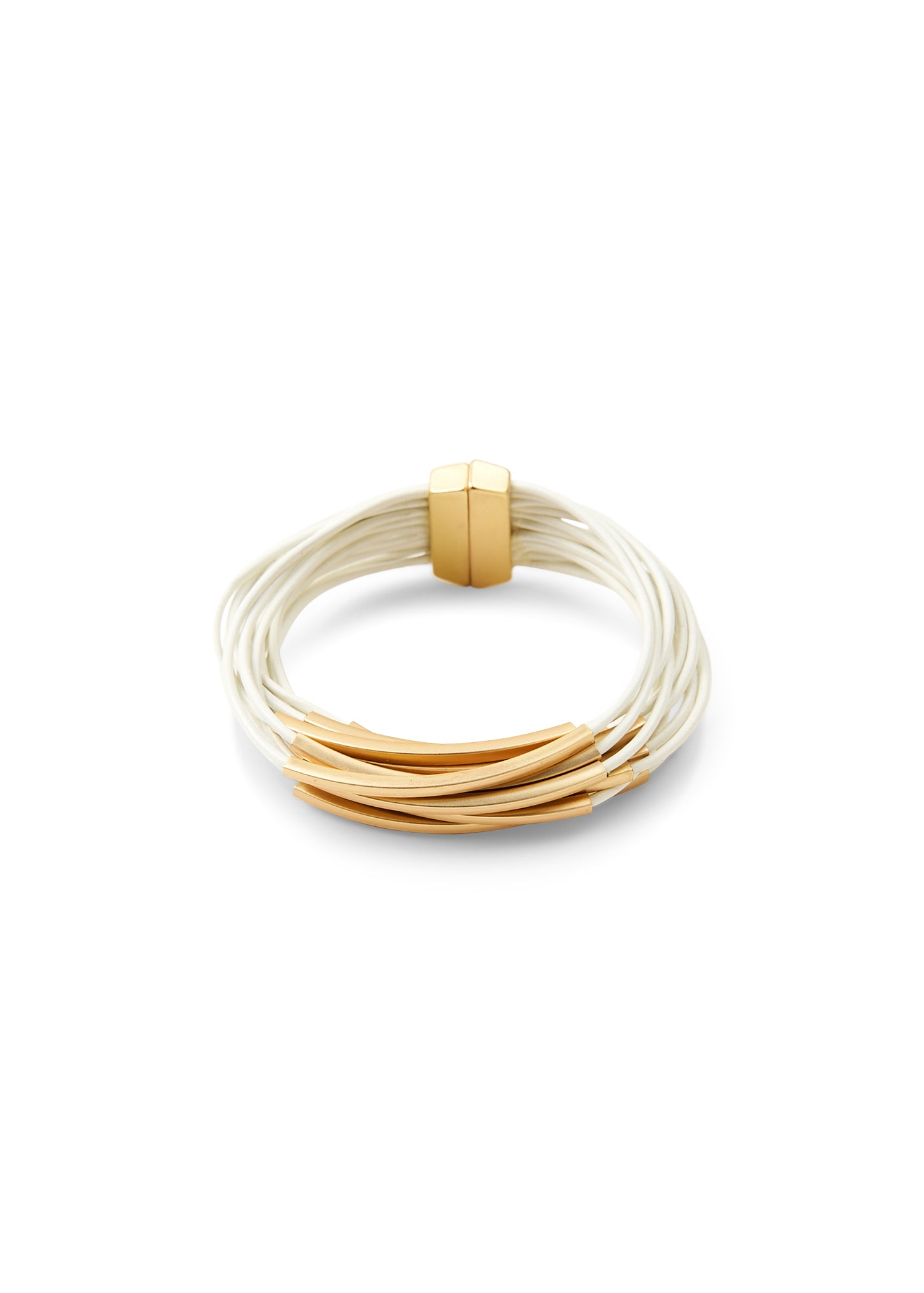 צמיד רצועות עור דקות וטיובים לבן