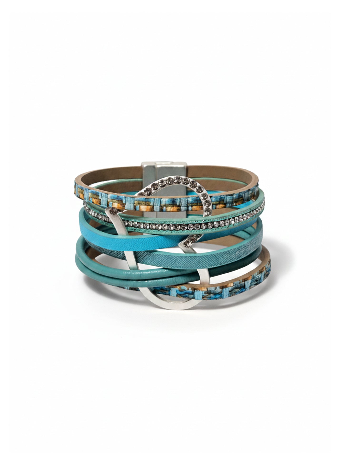 צמיד רצועות עור ולב גדול טורקיז