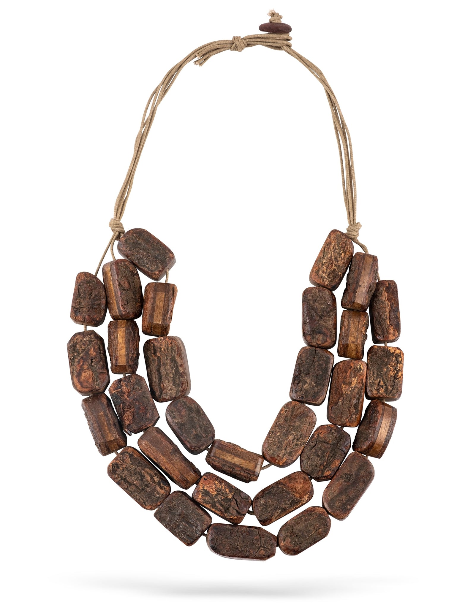 שרשרת שורות לאורך מעץ מתקלף על חוט חום