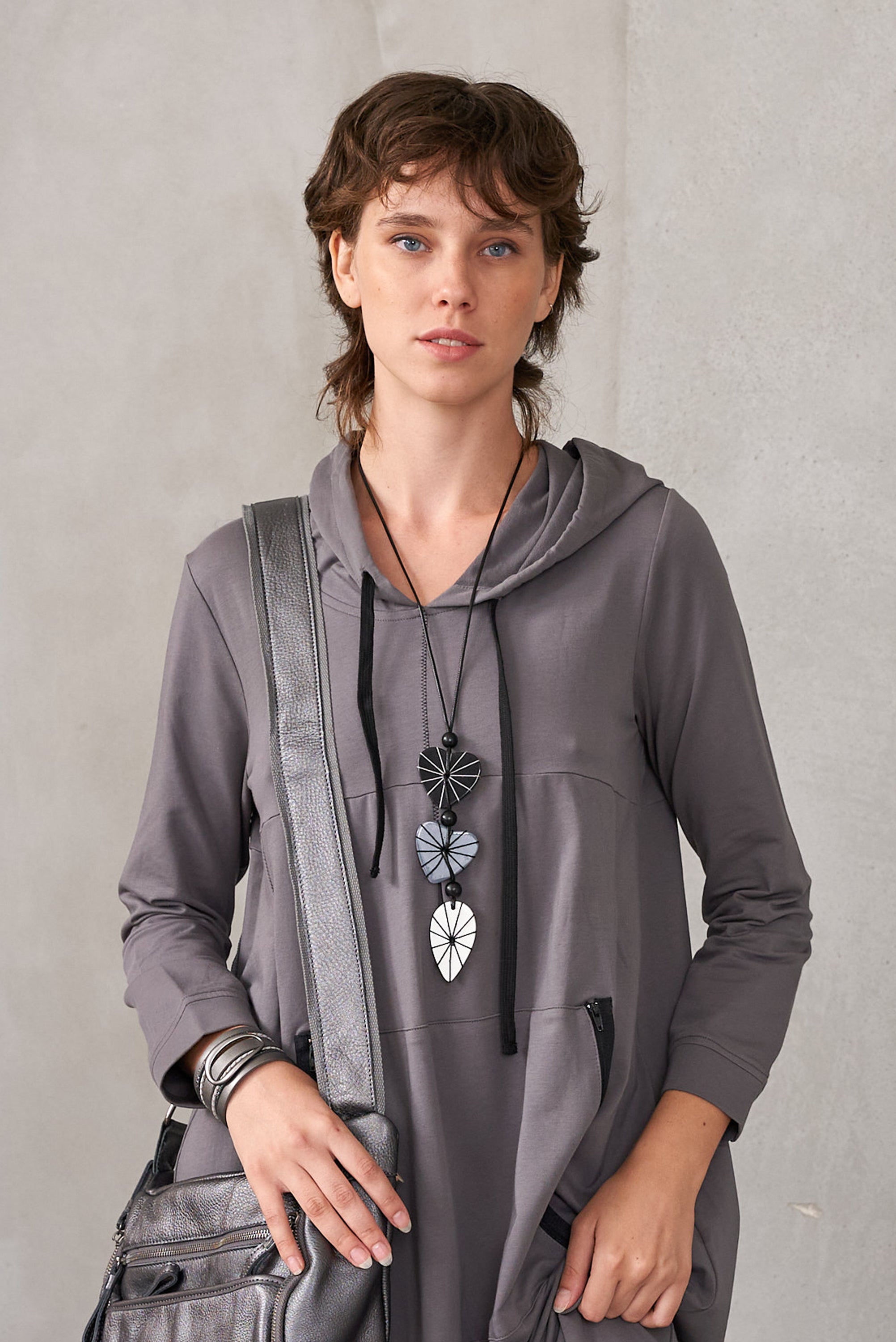 שרשרת עדינה לבבות מלופפים אפור