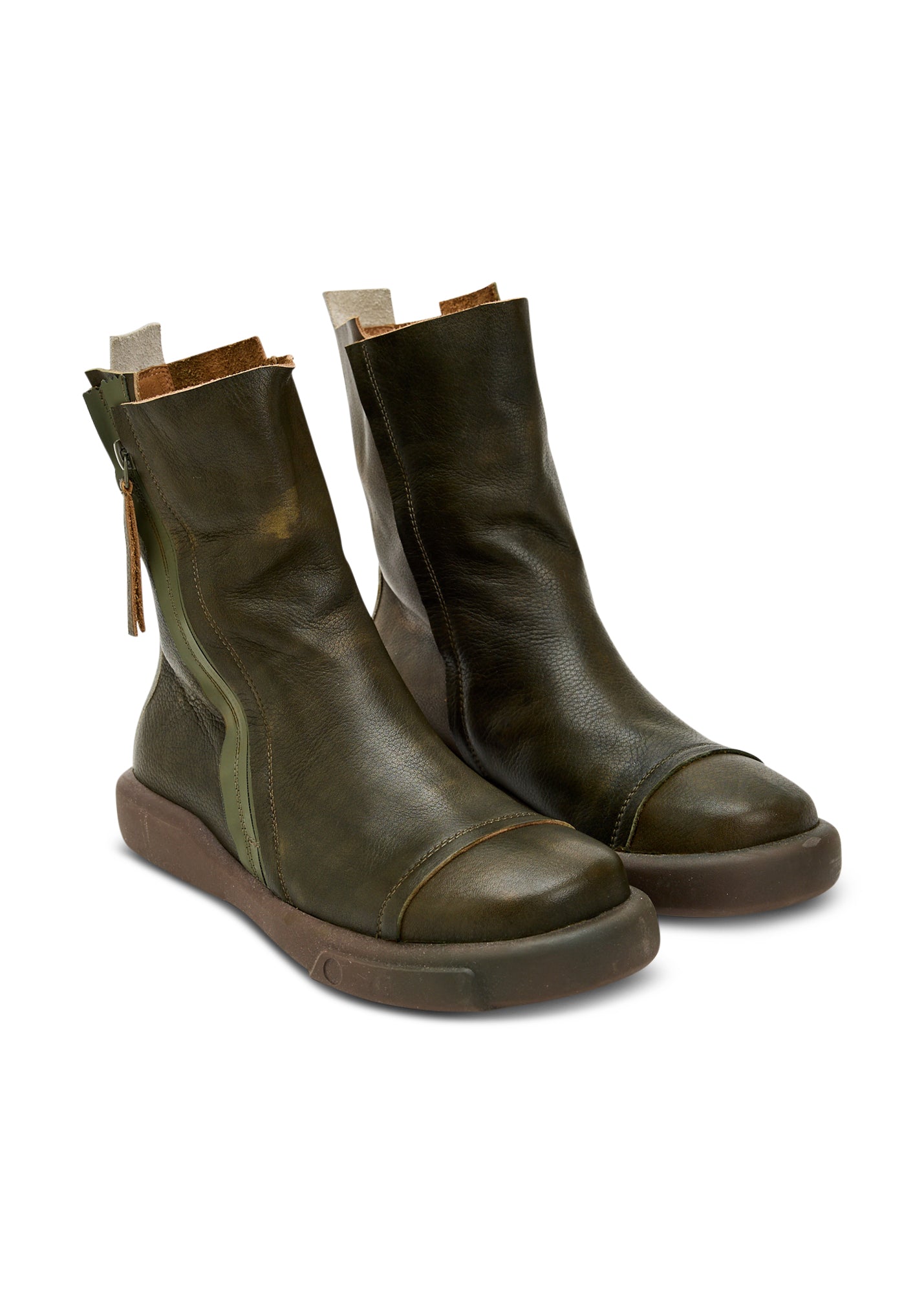 מגפוני נוחות מעור עם רוכסן הפוך חום