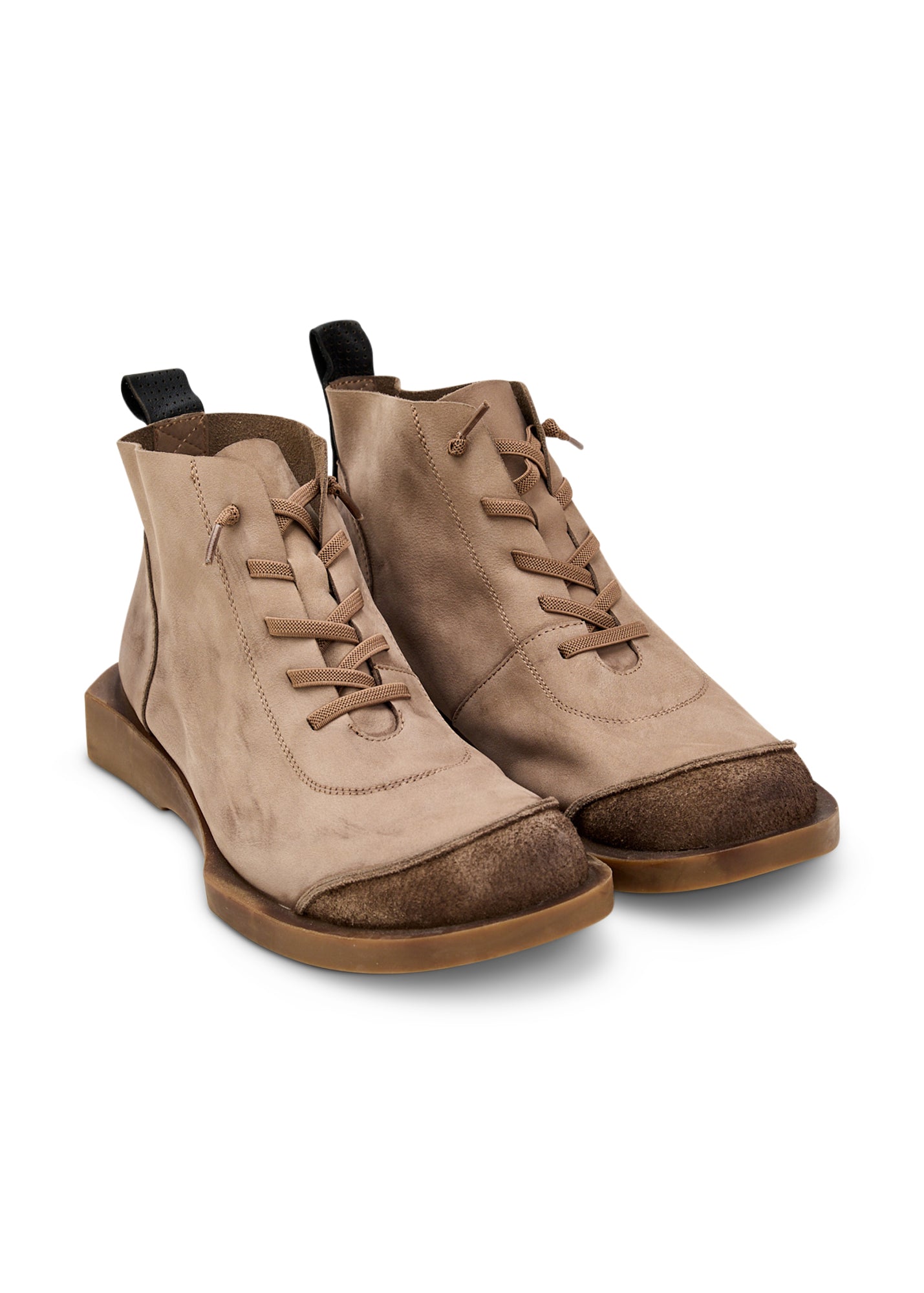נעלי נוחות גבוהות בגזרה גבוהה המגיעה עד מעל הקרסול ומעניקה תמיכה וחמימות, לצד קווים נקיים ומינימליסטיים שמדגישים את איכות החומרים והעבודה המוקפדת.