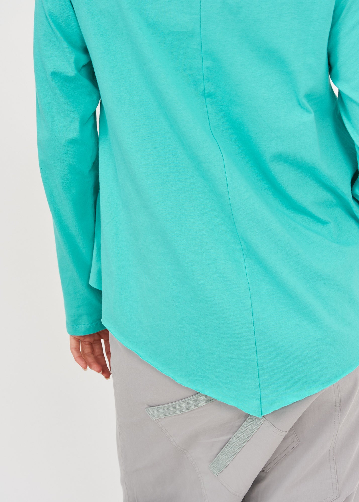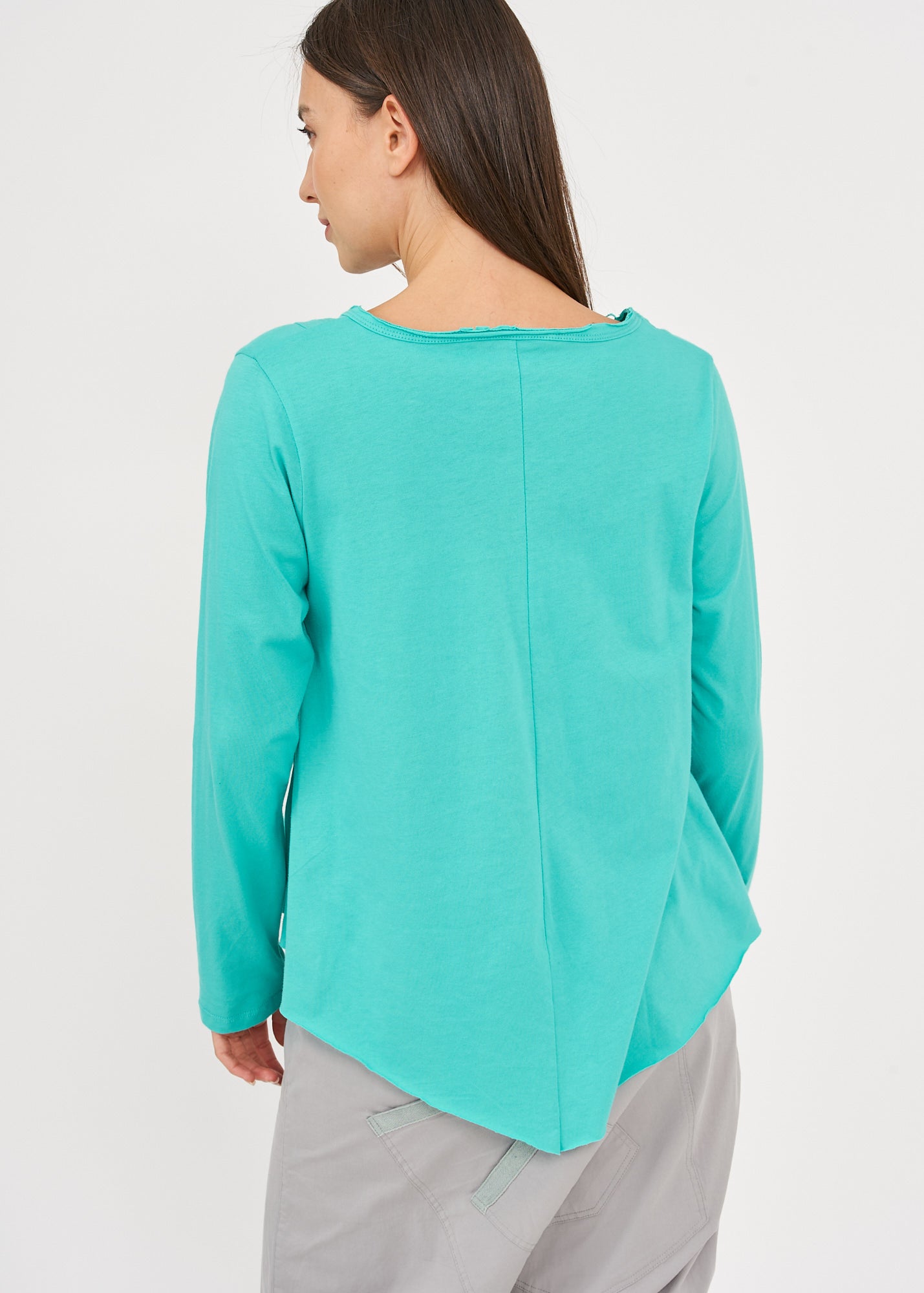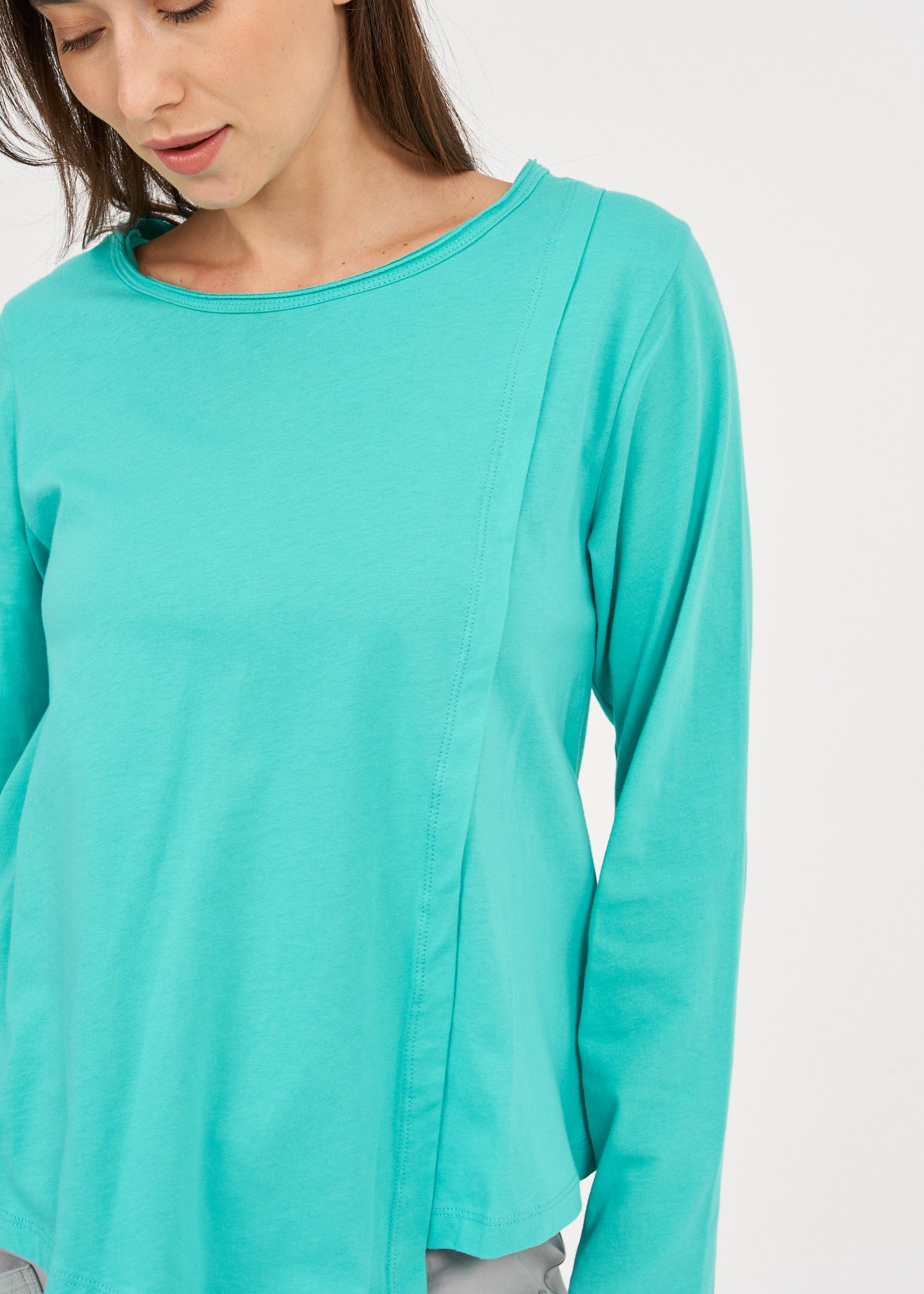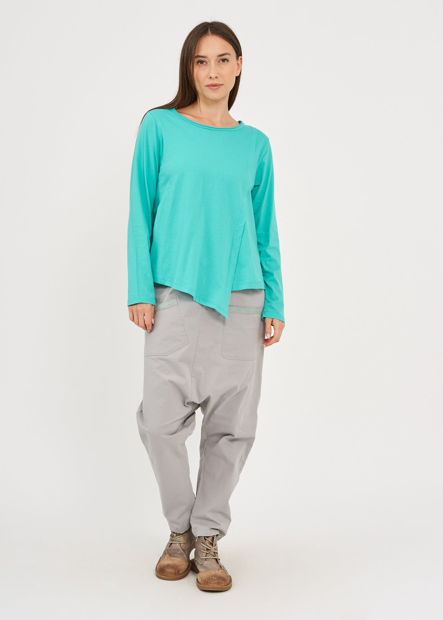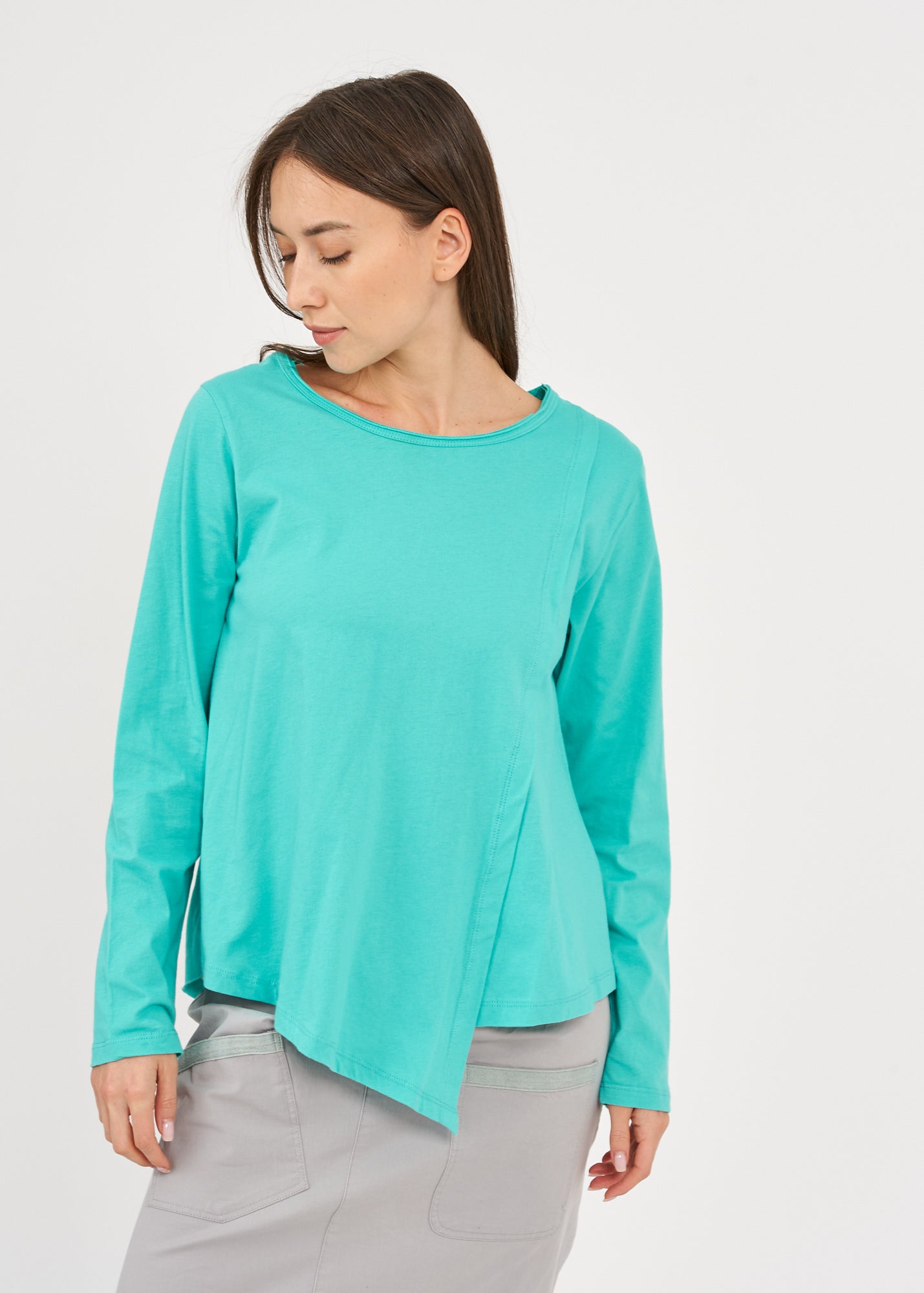 חולצה שרוול ארוך אסימטרית קפל לאורך טורקיז