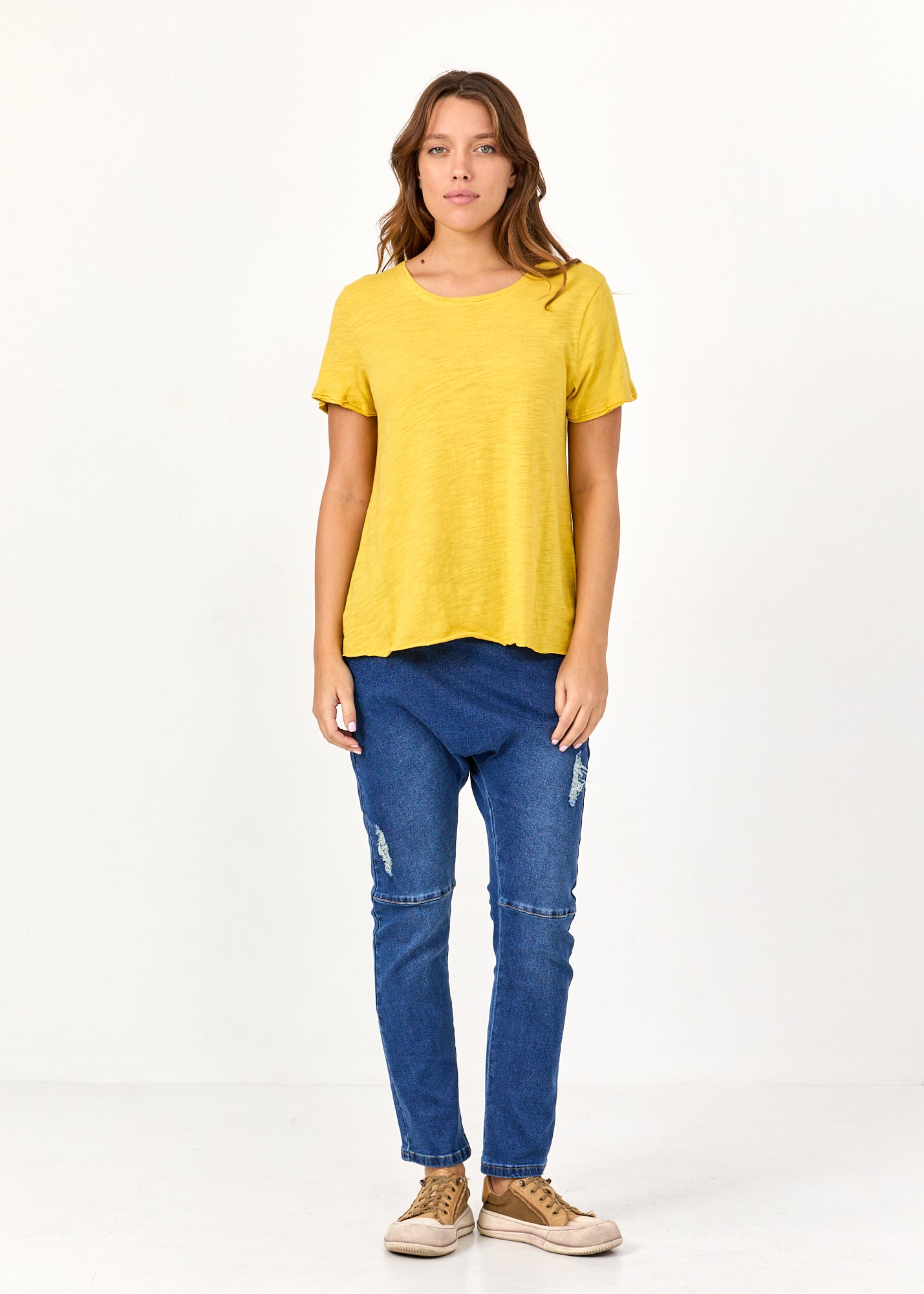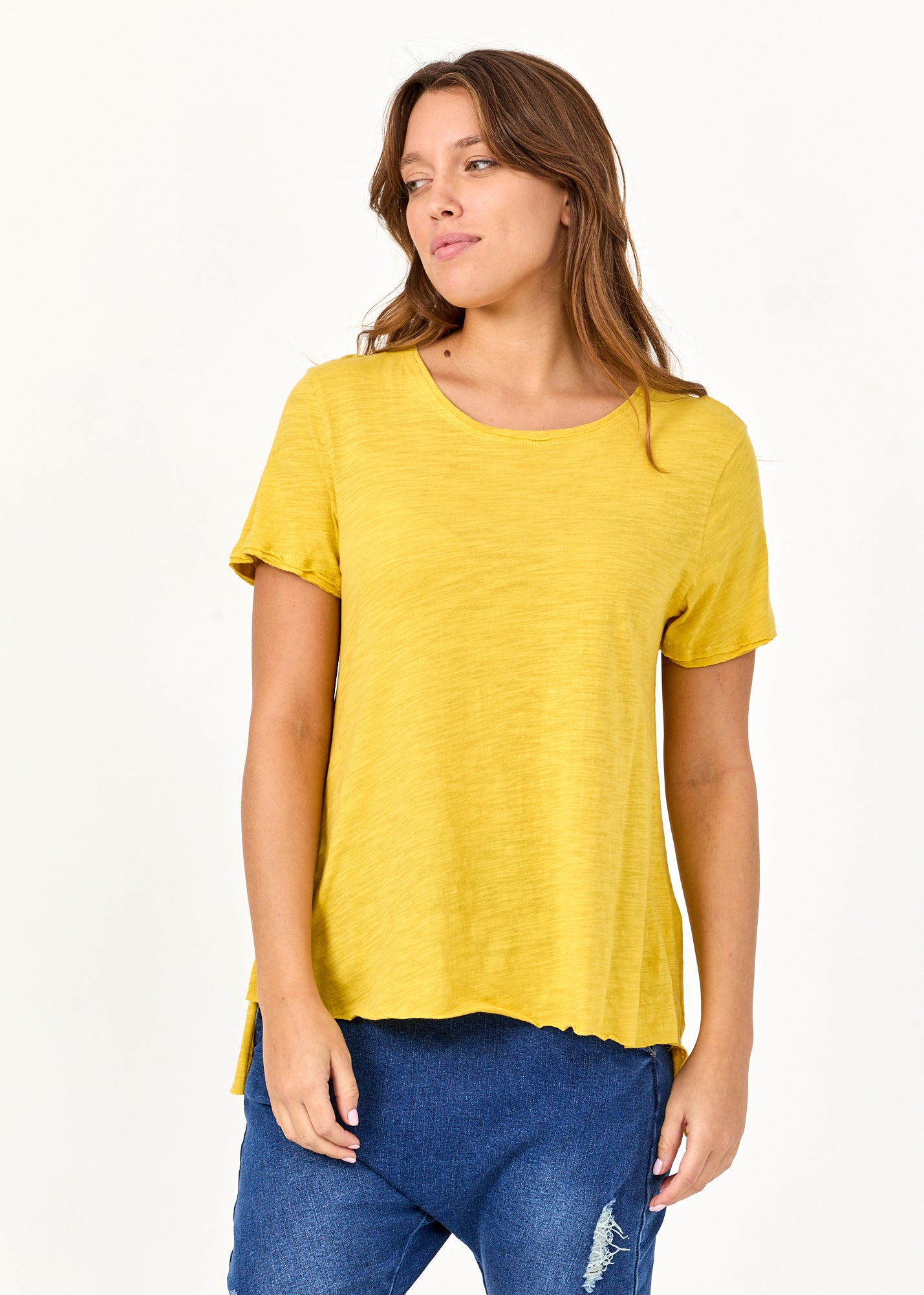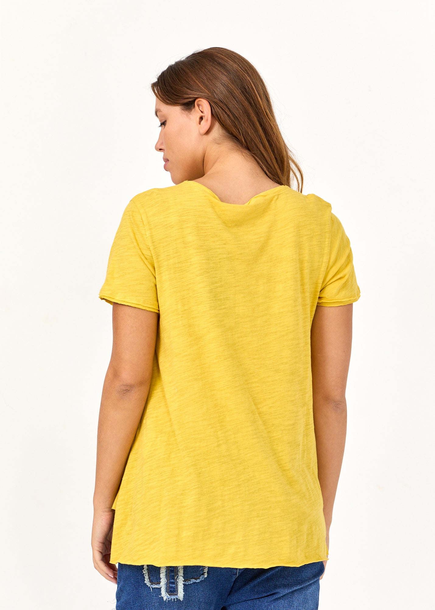 טי שרט סיומת משולשת גב ארוך צהוב