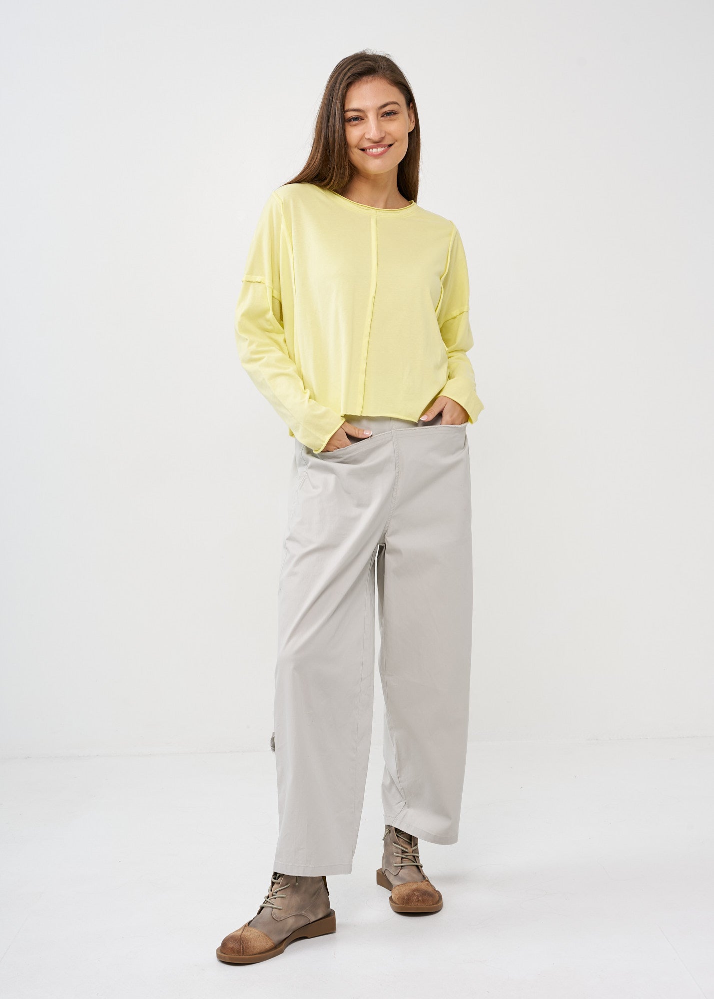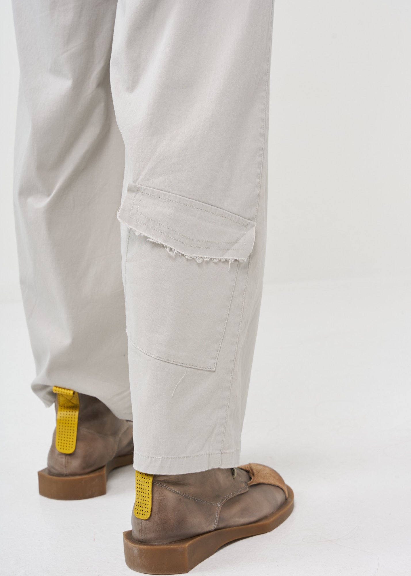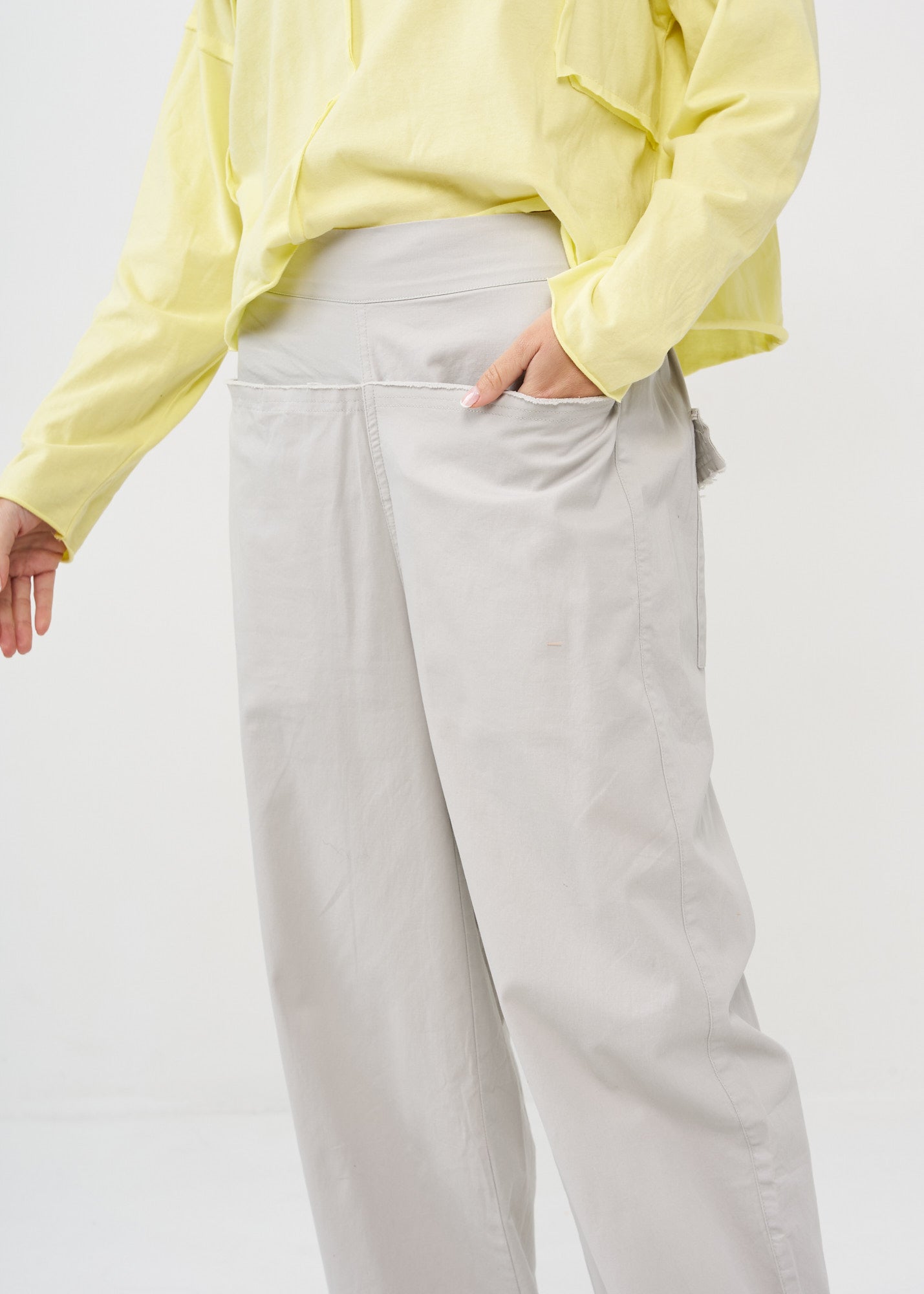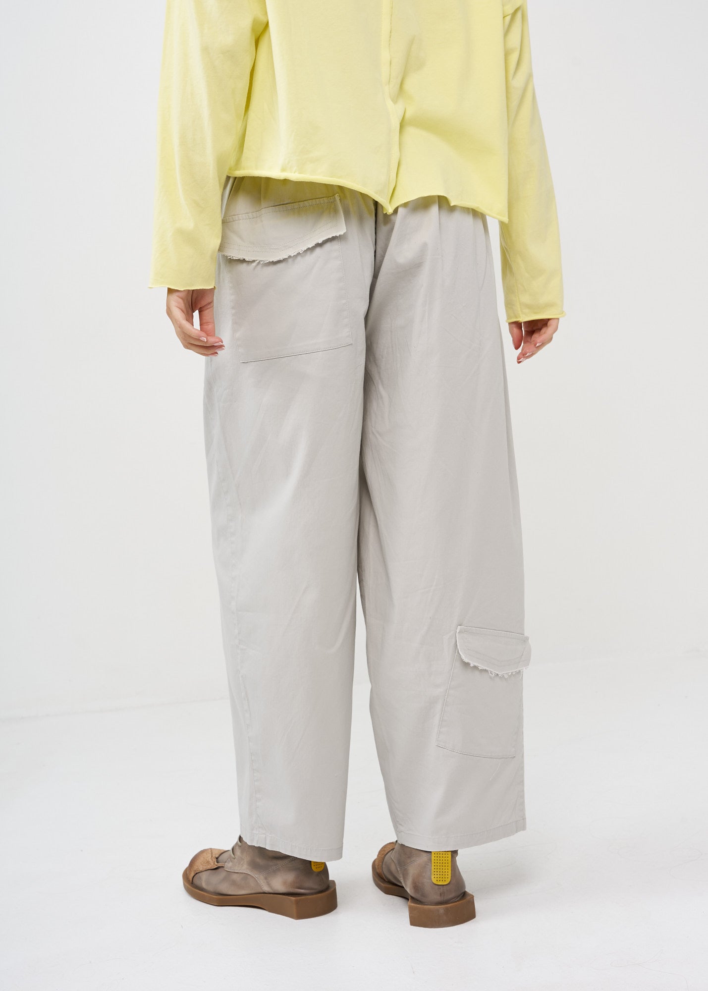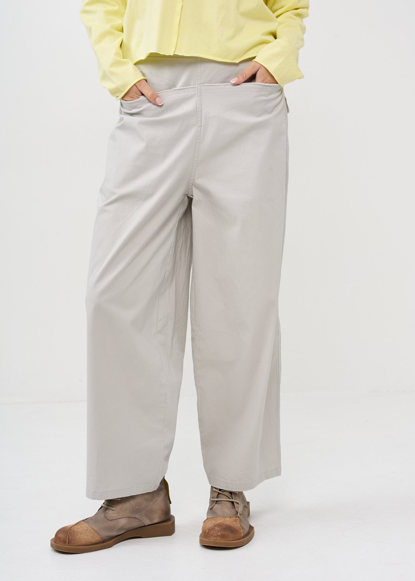 מכנסיים רגל רחבה כיסים ישרים אפור בהיר