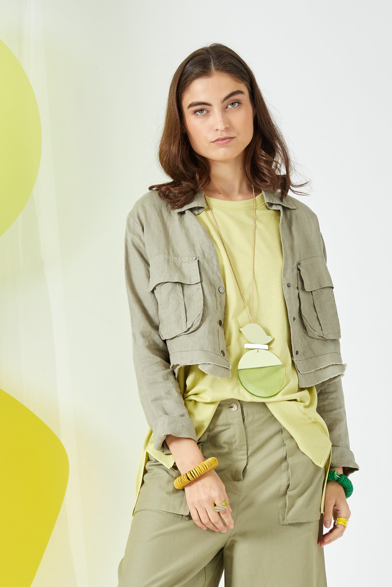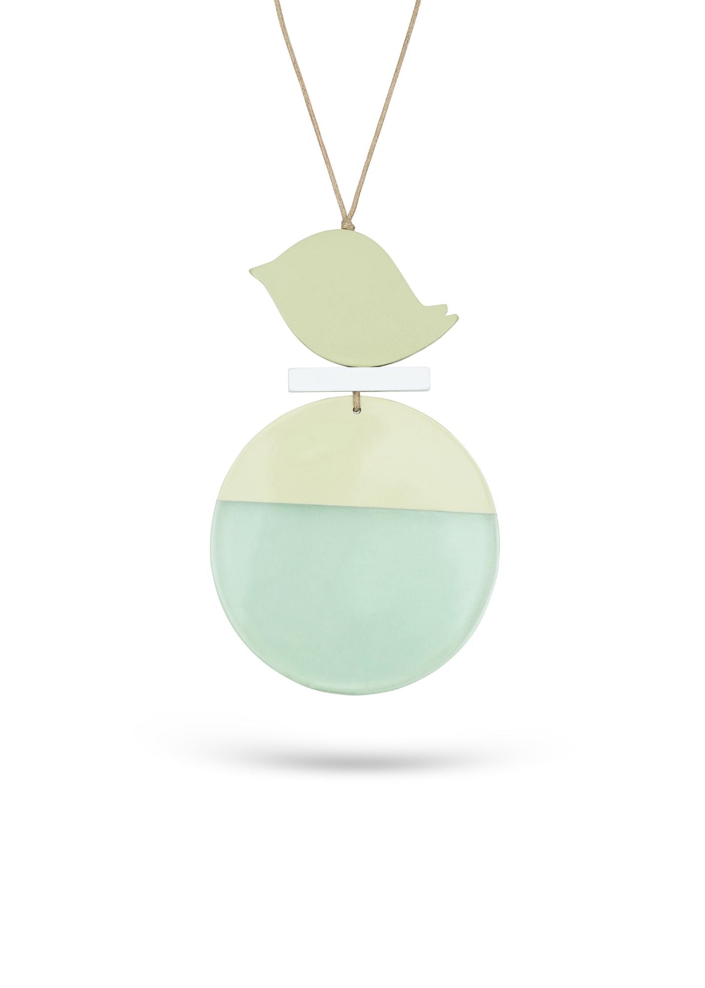 שרשרת עבודת יד עץ ציפור ודיסקית חצי שקופה ירוק בהיר