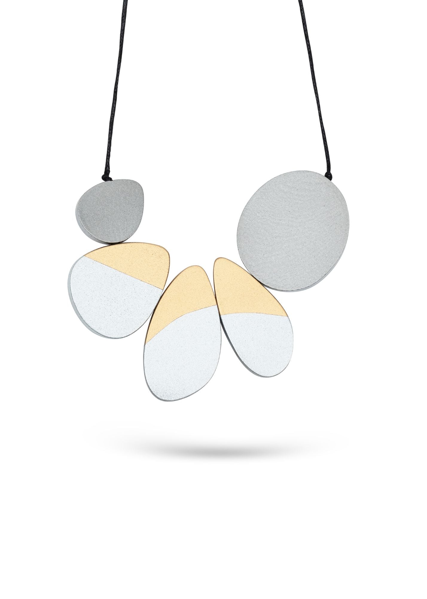שרשרת עבודת יד דיסקיות בשילוב שני צבעים כסף