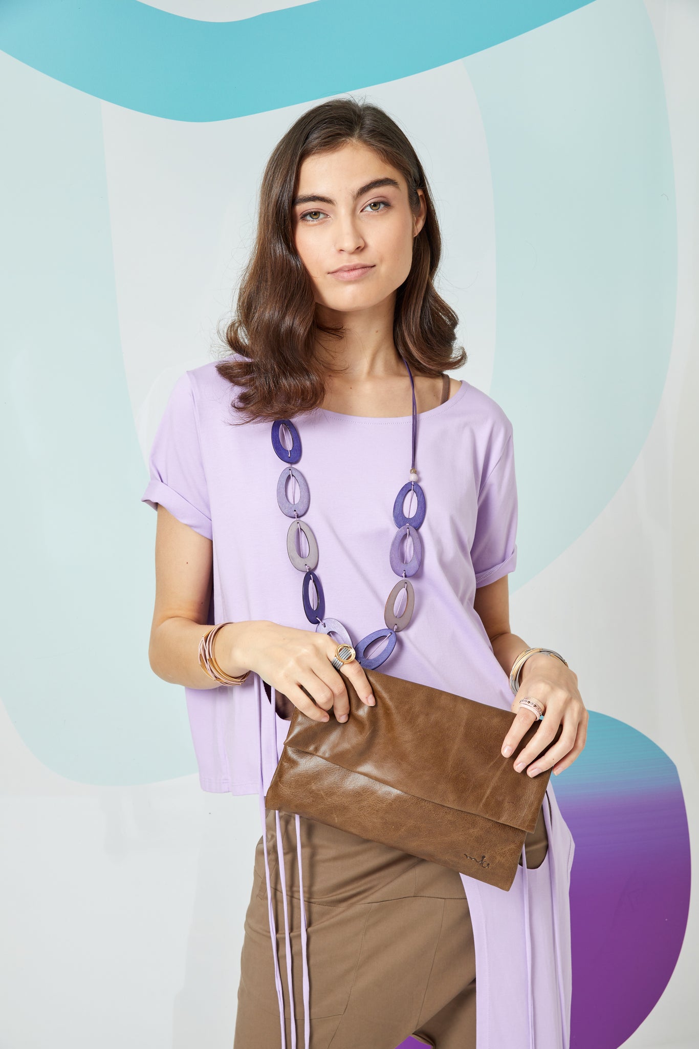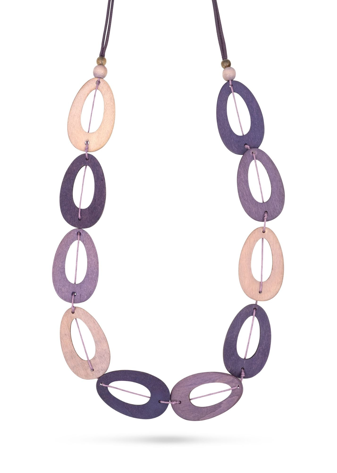 שרשרת דיסקיות עץ בצורת טיפה סגול