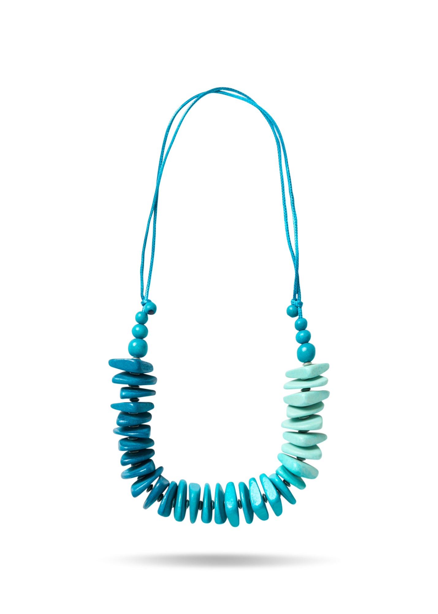 שרשרת עבודת יד חרוזי עץ גוונים כחול