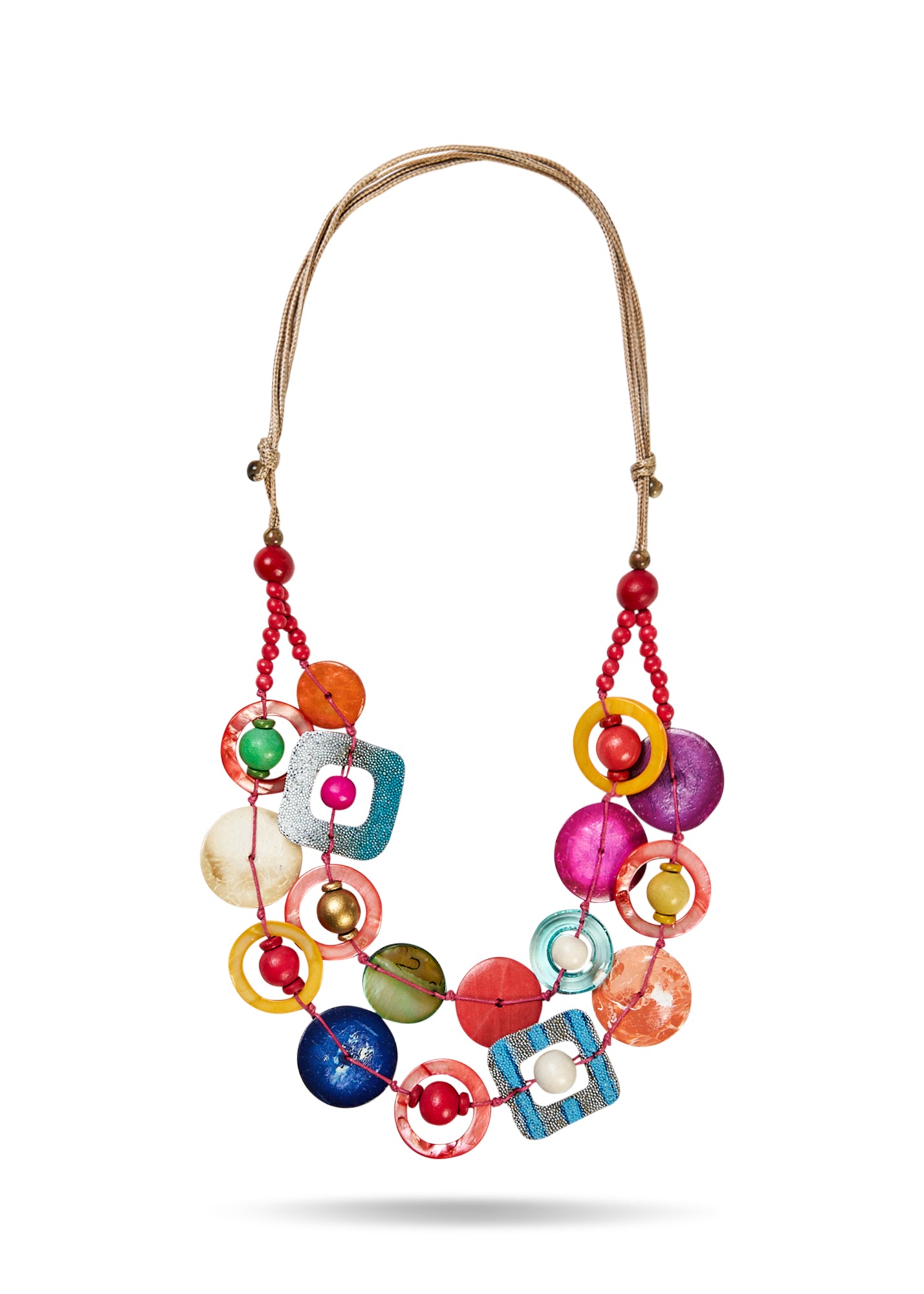 שרשרת עבודת יד שילוב חרוזים רזין ועץ צבעוני