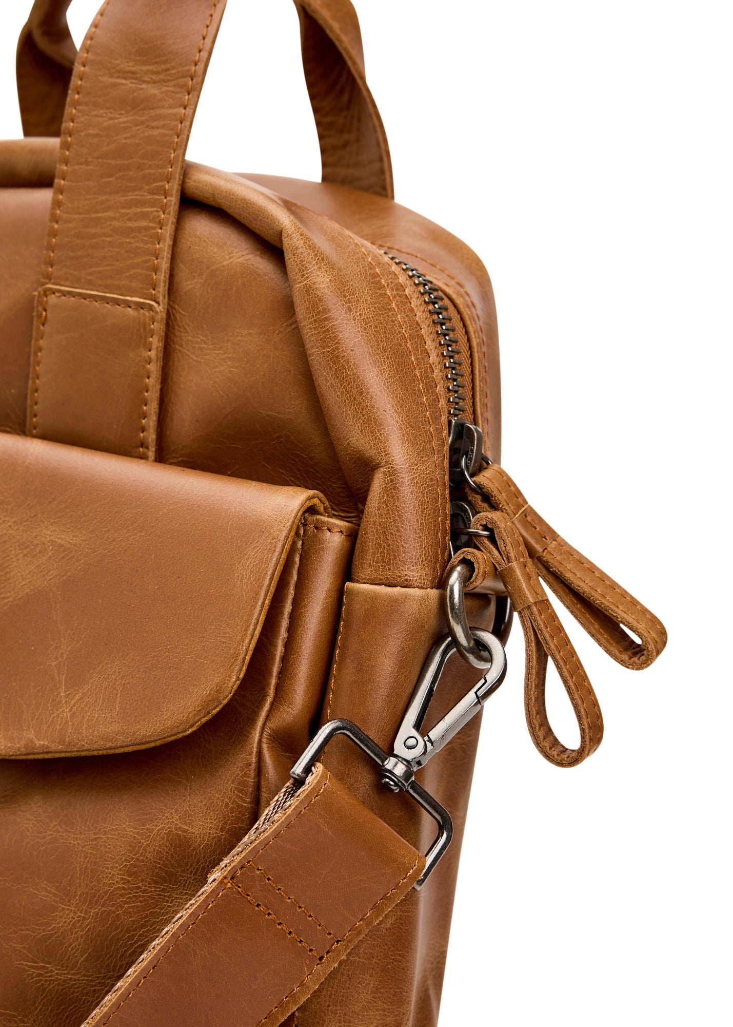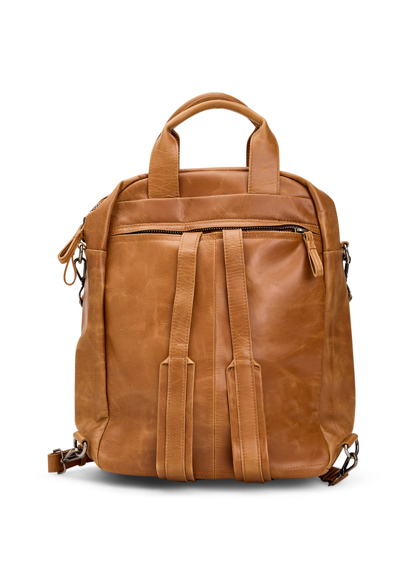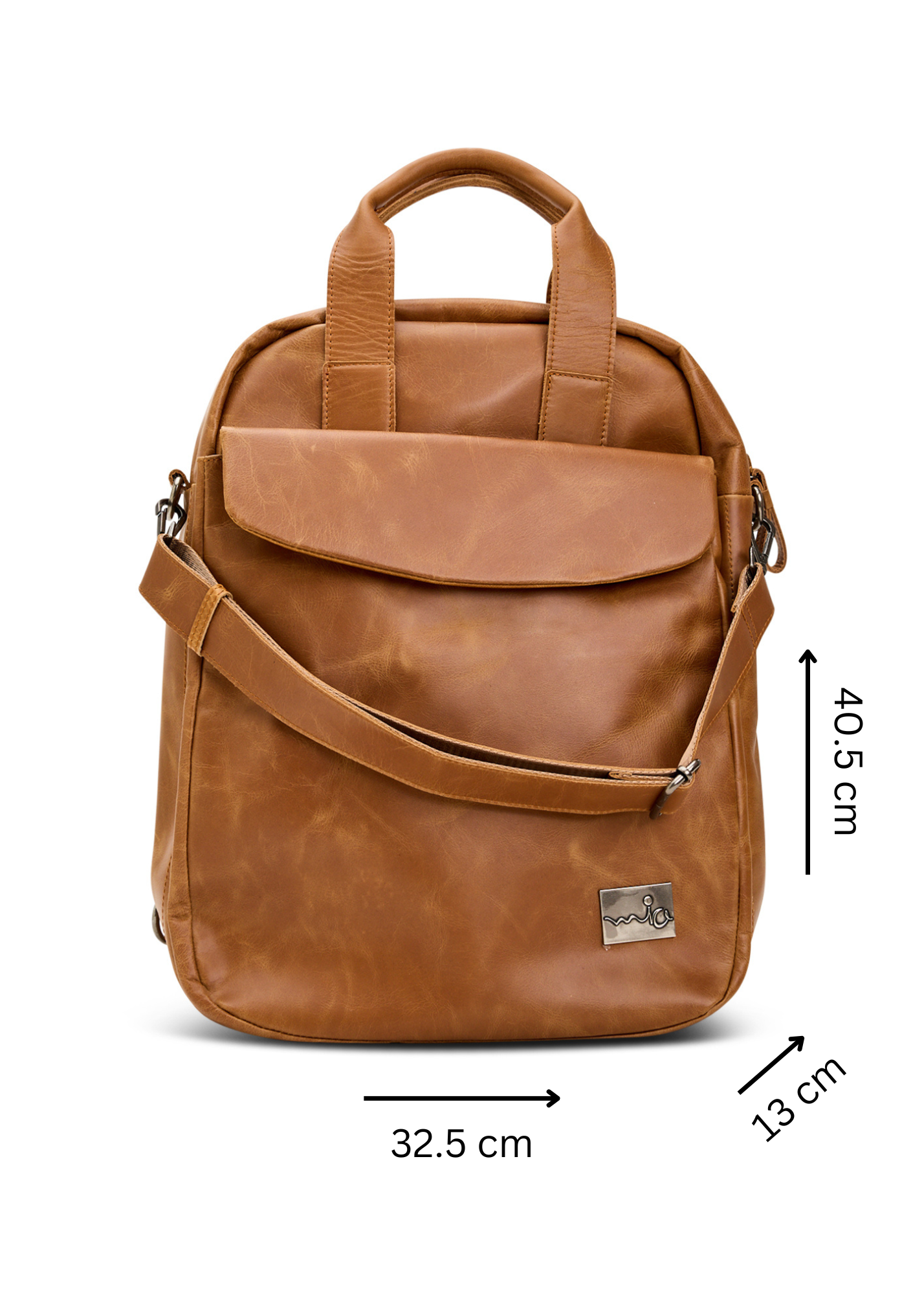 תיק גב מעוצב העשוי מעור איכותי ורך, מתאפיין בכיס קדמי גדול ובולט עם קלאפה מעוגלת אלגנטית היוצרת את אלמנט העיצוב המרכזי והייחודי שלו. הכיס מספק גישה מהירה ונוחה לפריטים נחוצים. בחזית העליון רוכסן אופקי עם משיכה מעור נוספת לתא המרכזי והגדול המאפשר אחסון מאובטח ונוח. בעל ידיות נשיאה עליונות רחבות ומרופדות המאפשרות אחיזה נוחה לנשיאה ביד, בעוד רצועות הכתפיים המתכווננות עשויות מעור איכותי ומחוזקות בחיבורים מתכתיים חזקים וקליפסים איכותיים המאפשרים התאמה אישית מושלמת. בנוסף ישנה רצועה לנשיאה על הכתף הניתנת להסרה מלאה באמצעות קרסים מתכתיים, מה שהופך אותו לגמיש ומותאם לכל צורך, כתיק גב, יד או צד. המבנה הפנימי מרווח ומאורגן היטב, מתאים לשגרת יום מלאה ומאפשר אחסון נוח של מחשב נייד קטן, ספרים, ארנק, טלפון וכל הפריטים החיוניים שלך.