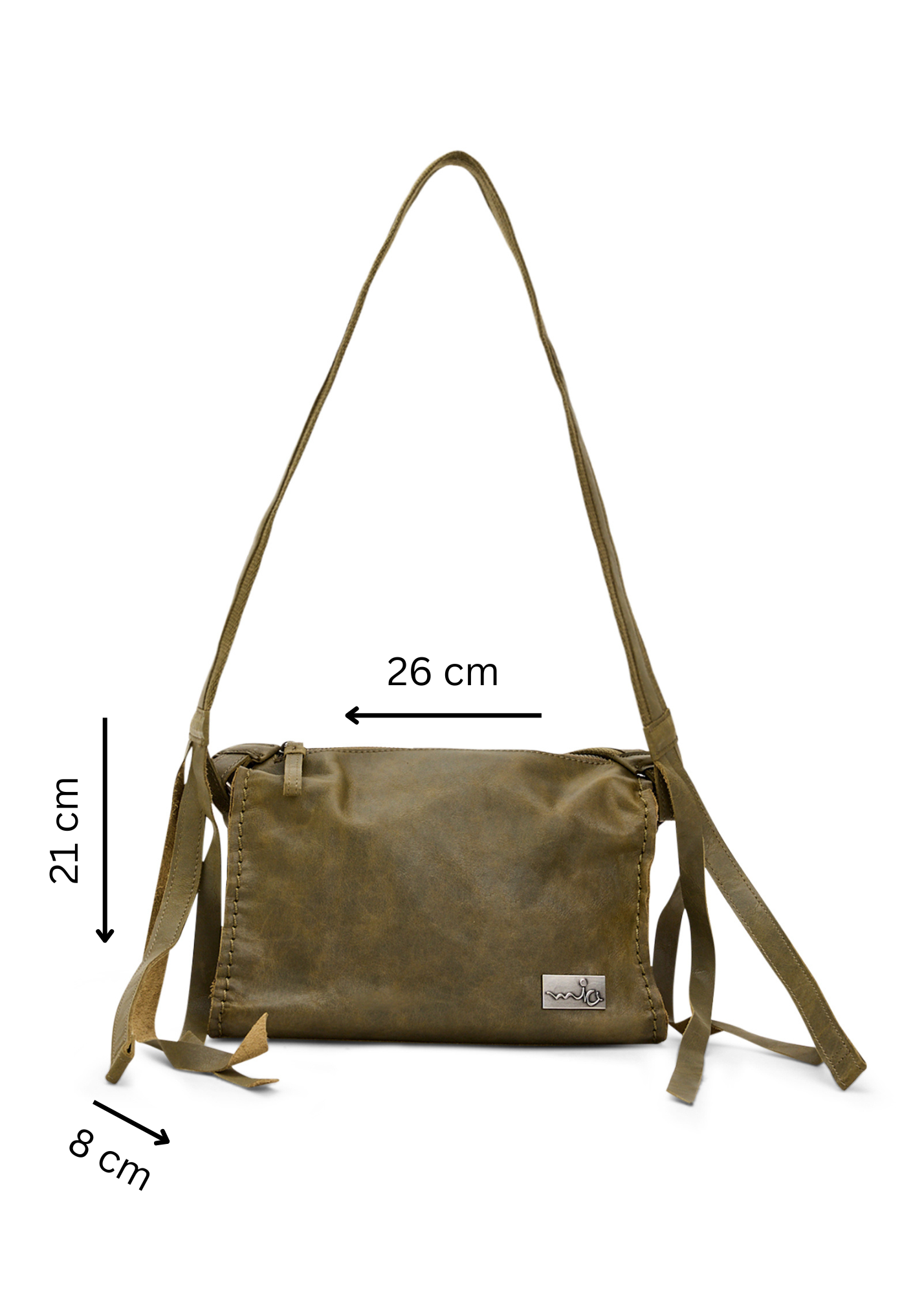 תיק מלבני וקומפקטי, העשוי מעור איכותי ורך במיוחד בגימור מט המעניק מראה אלגנטי ועכשווי, בעל עיצוב של פסי עור דקורטיביים תלויים בצדדים וסגירת רוכסן עליון מלא המבטיח אבטחה מקסימלית לחפצים האישיים שלך, תא אחורי עם רוכסן לגישה מהירה לפריטים נחוצים ורצועת כתף רחבה ונוחה במיוחד המחוזקת בחיבורי עור וקליפסים מתכתיים מתכווננים המאפשרים התאמה אישית מושלמת. הרצועה ניתנת להסרה ולהתאמה לאורך רצוי ומעניקה גמישות מרבית בנשיאה. המבנה הפנימי מאורגן ומרווח במידה מושלמת, מתאים לאחסון נוח של ארנק, טלפון, מפתחות וכל הפריטים החיוניים לשגרת היום.