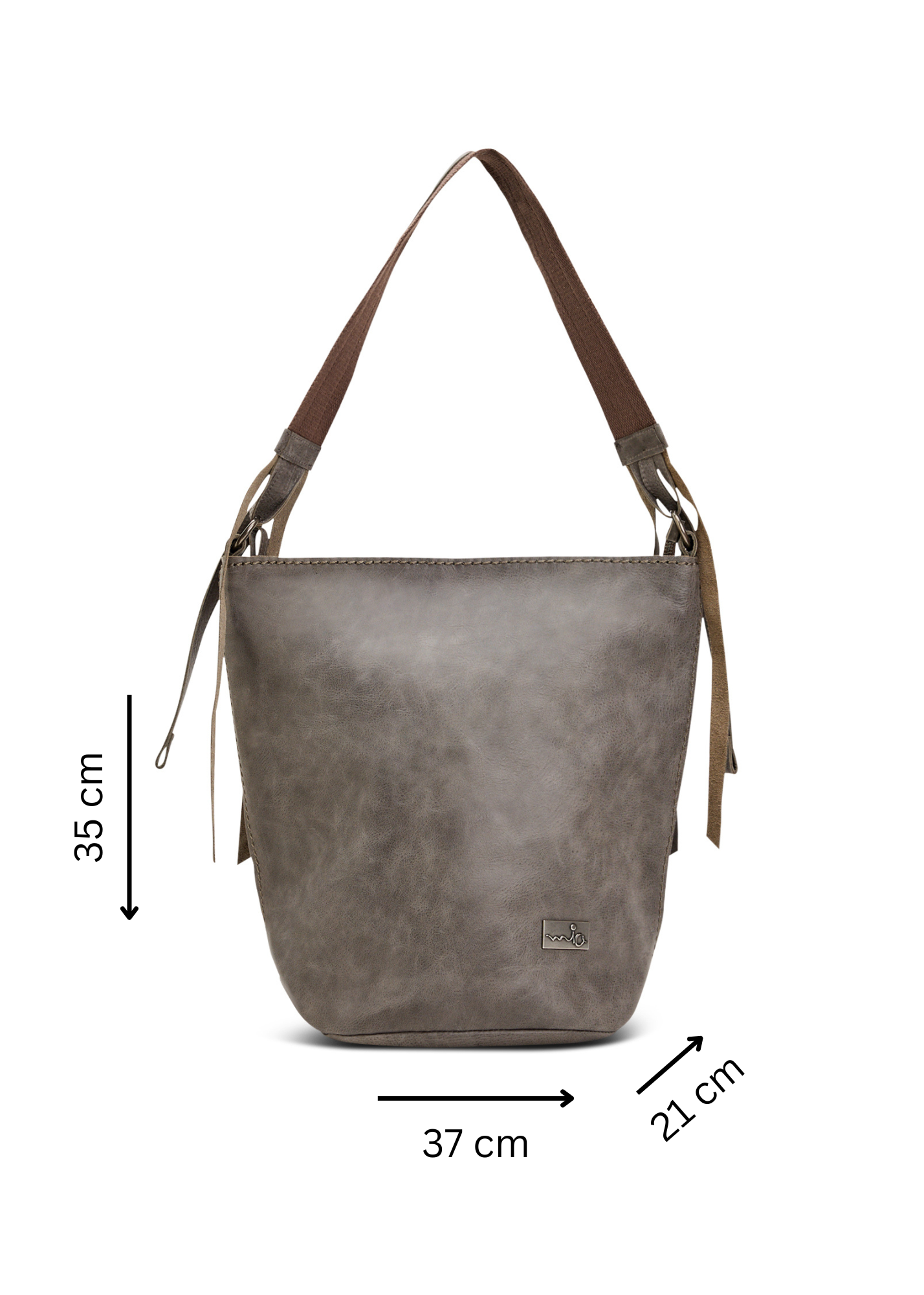 תיק באקט מעוצב ואלגנטי העשוי מעור איכותי ורך במיוחד, מתאפיין בסגירה עליונה פתוחה ונוחה עם פסי עור דקורטיביים תלויים בצדדים ותא אחורי המאפשר גישה מהירה לפריטים נחוצים, בעוד התיפורים המוקפדים בחוט בולט מדגישים את איכות הייצור. בעל רצועת כתף רחבה ונוחה הניתנת להסרה ולהתאמה לאורך רצוי ומעניקה גמישות מרבית בנשיאה. המבנה הפנימי מרווח ומאורגן, מתאים לשגרת יום מלאה ומאפשר אחסון נוח של כל הפריטים החיוניים שלך.