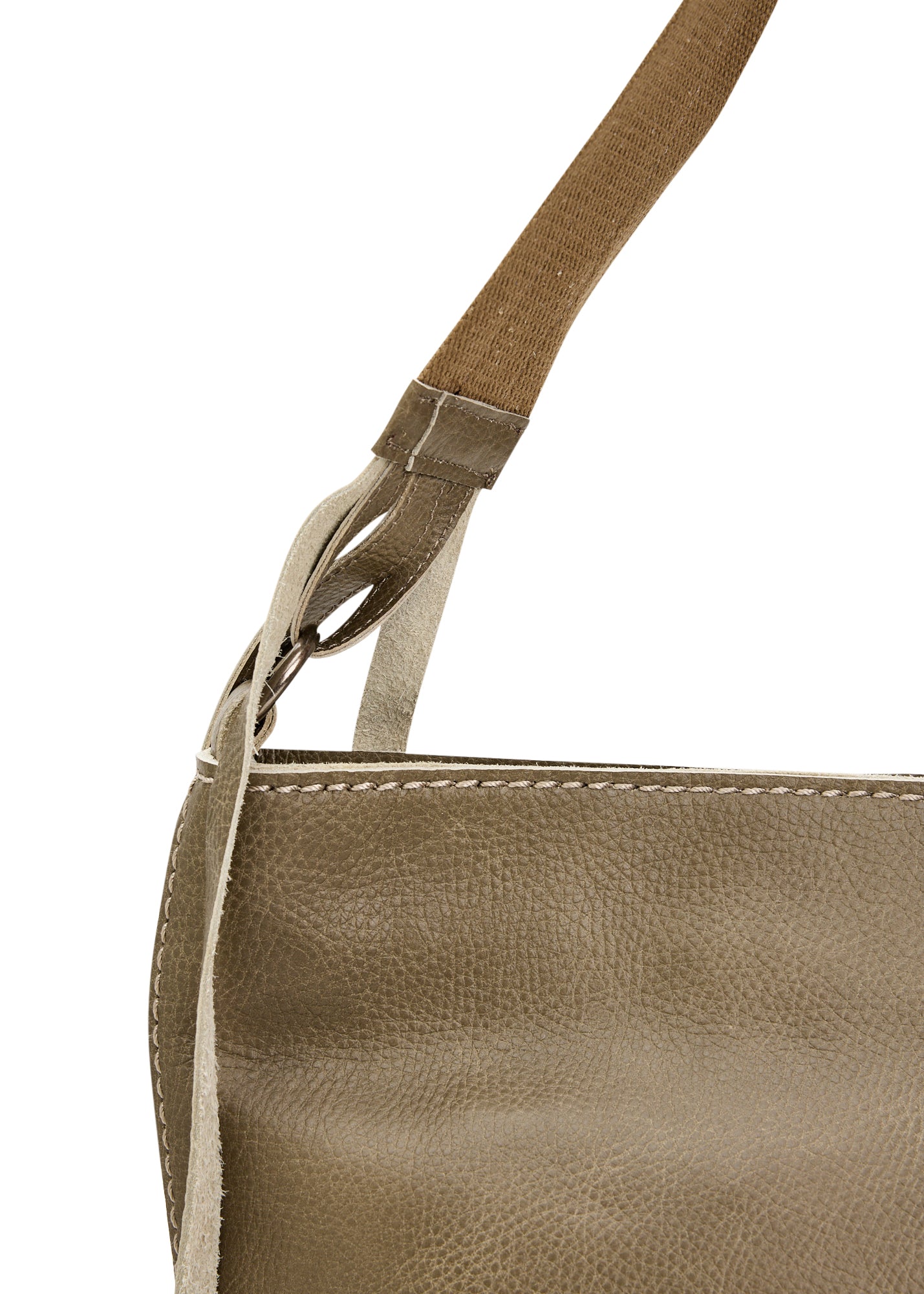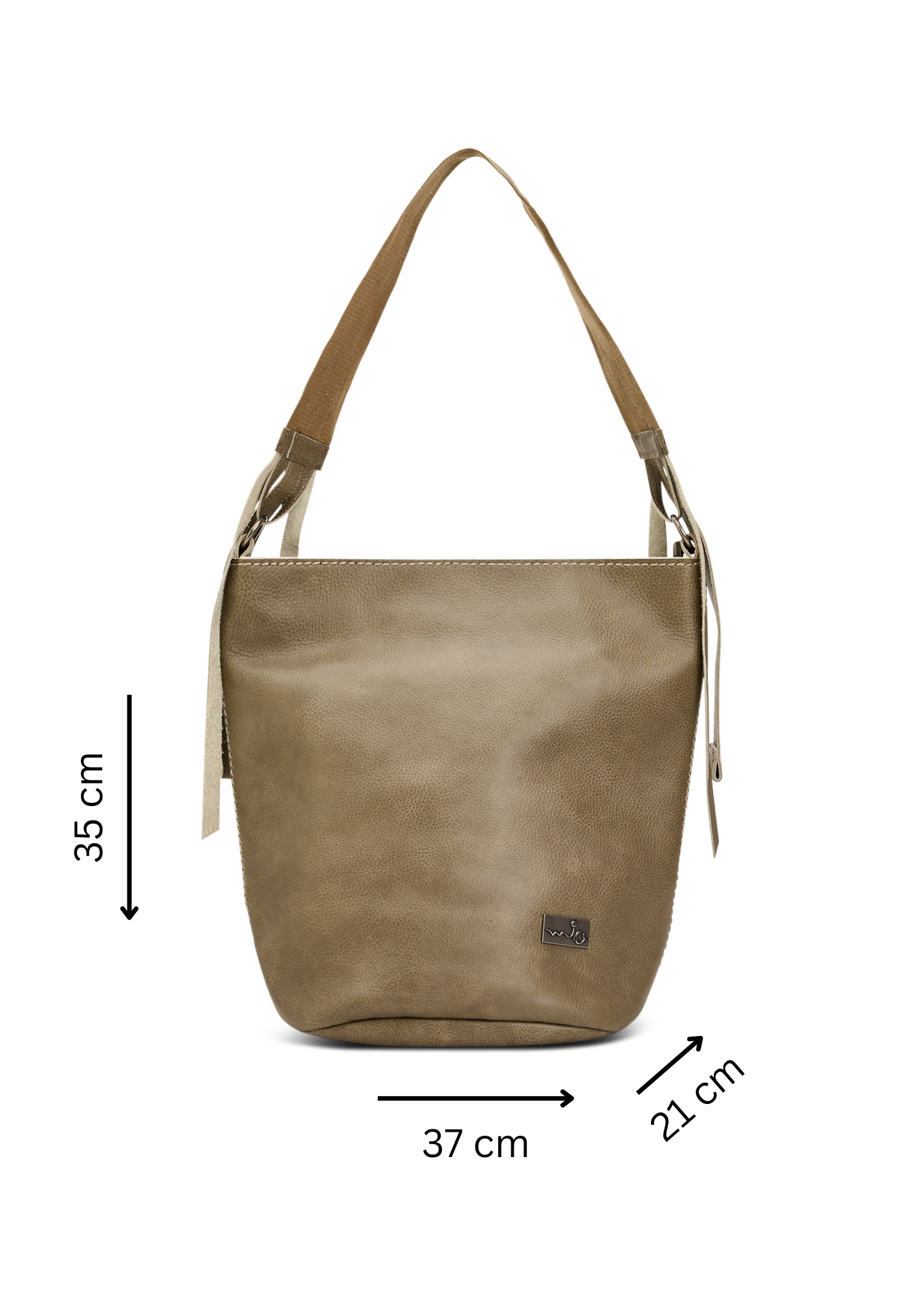תיק באקט מעוצב ואלגנטי העשוי מעור איכותי ורך במיוחד, מתאפיין בסגירה עליונה פתוחה ונוחה עם פסי עור דקורטיביים תלויים בצדדים ותא אחורי המאפשר גישה מהירה לפריטים נחוצים, בעוד התיפורים המוקפדים בחוט בולט מדגישים את איכות הייצור. בעל רצועת כתף רחבה ונוחה הניתנת להסרה ולהתאמה לאורך רצוי ומעניקה גמישות מרבית בנשיאה. המבנה הפנימי מרווח ומאורגן, מתאים לשגרת יום מלאה ומאפשר אחסון נוח של כל הפריטים החיוניים שלך.