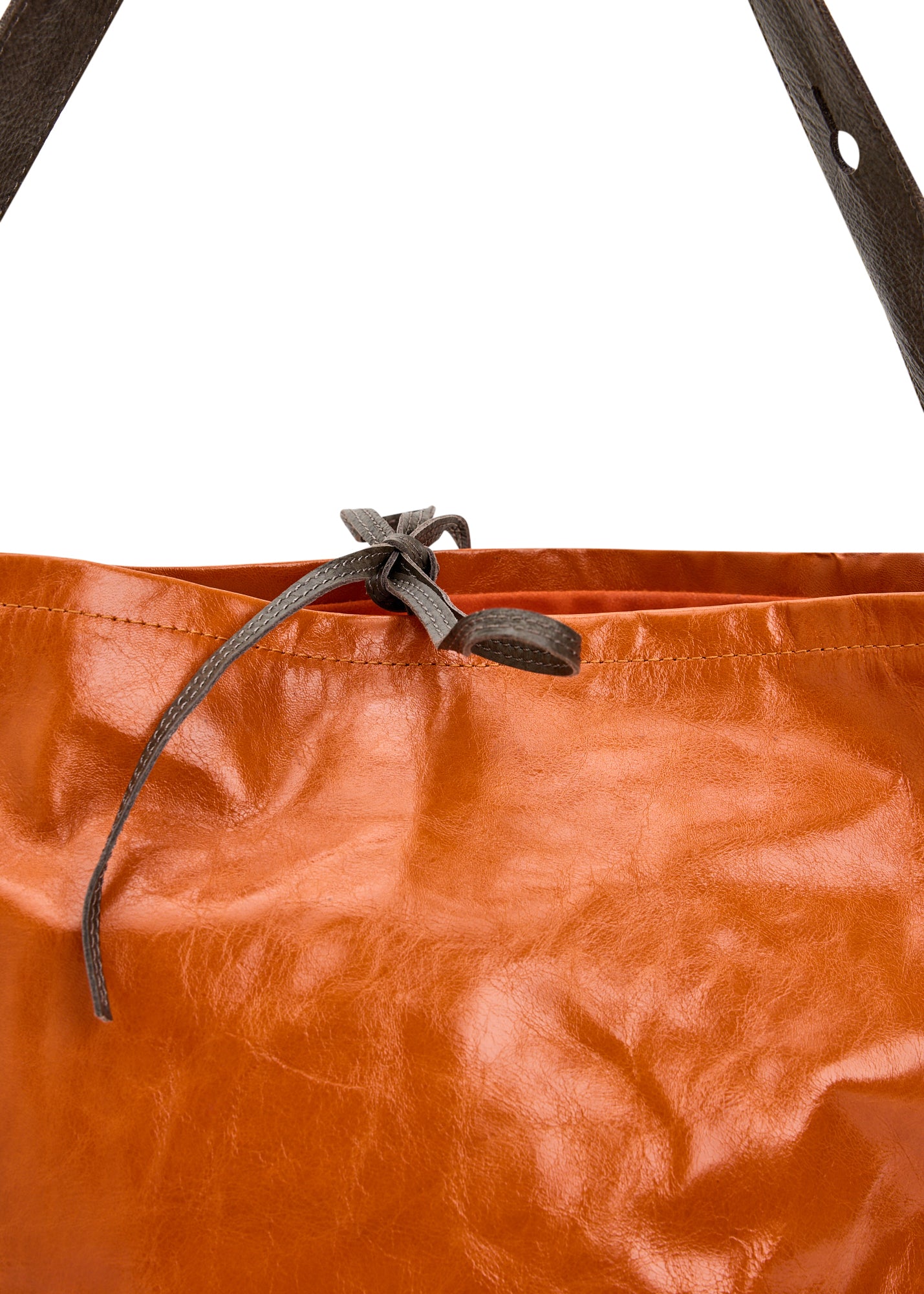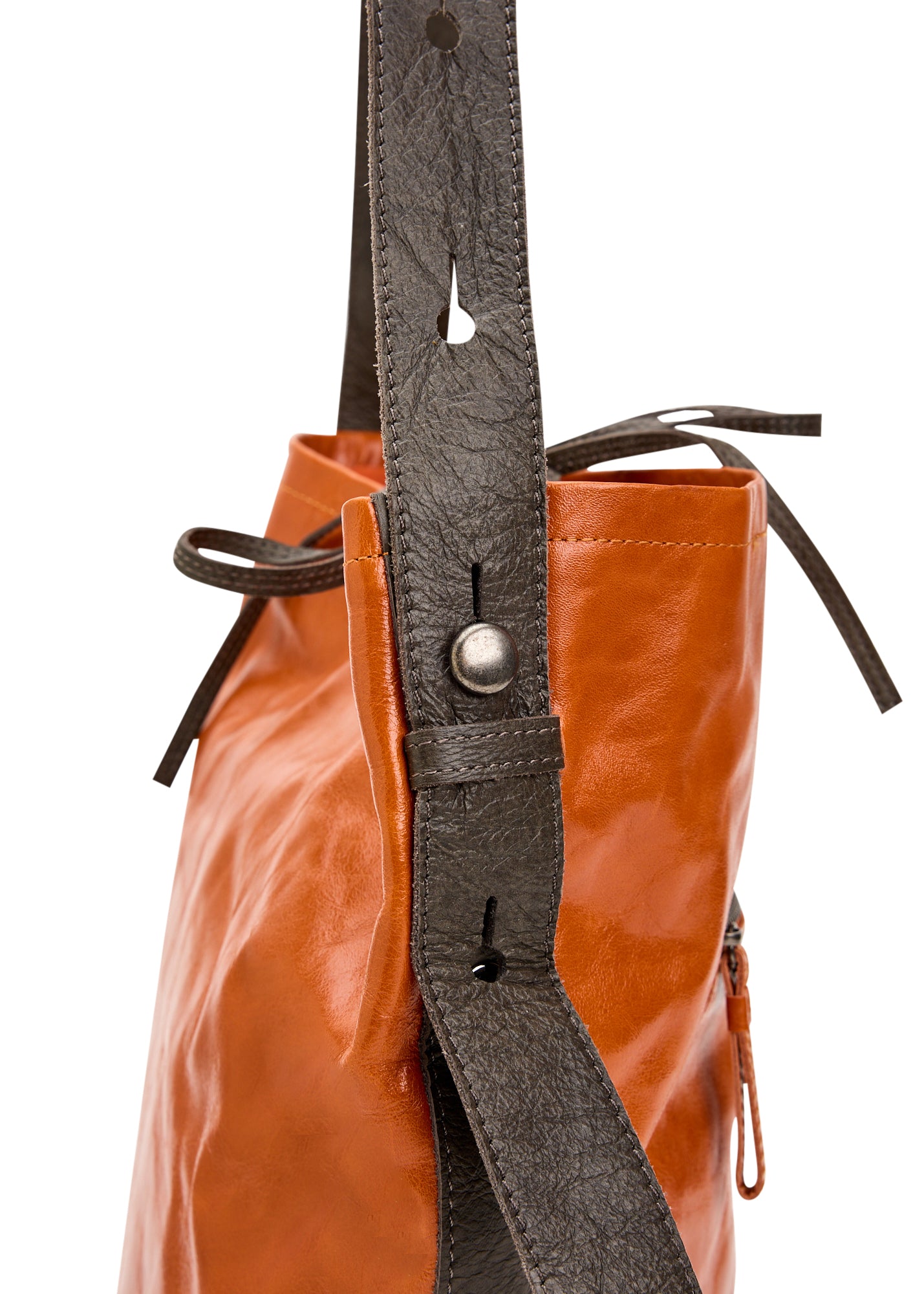 תיק באקט העשוי מעור איכותי ורך במיוחד, מתאפיין בסגירה ייחודית עם שרוכי עור דקורטיביים ותא אחורי המאפשר גישה מהירה לפריטים נחוצים. בעל רצועת כתף רחבה ומתכווננת המאפשרת נשיאה נוחה ומותאמת אישית.