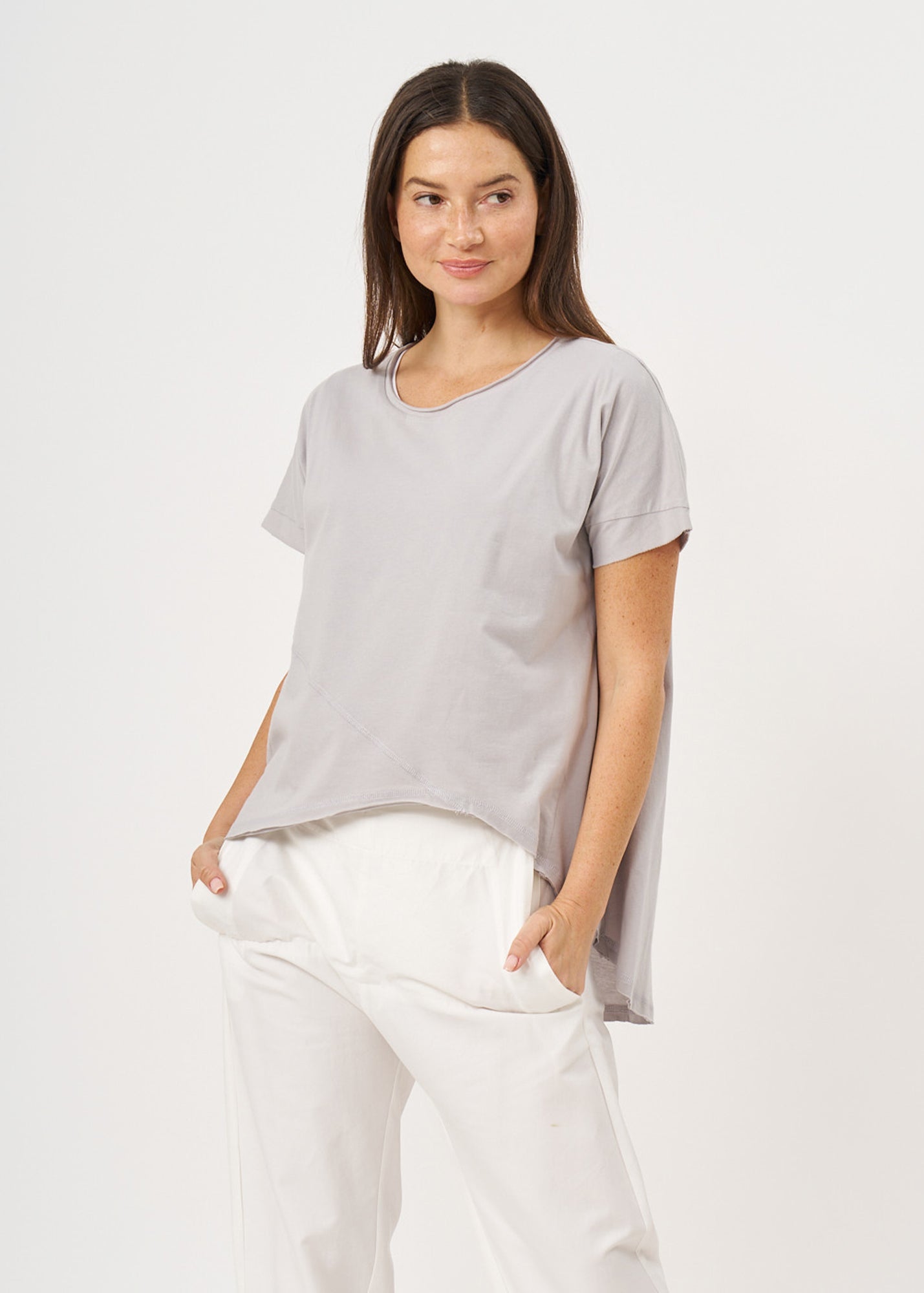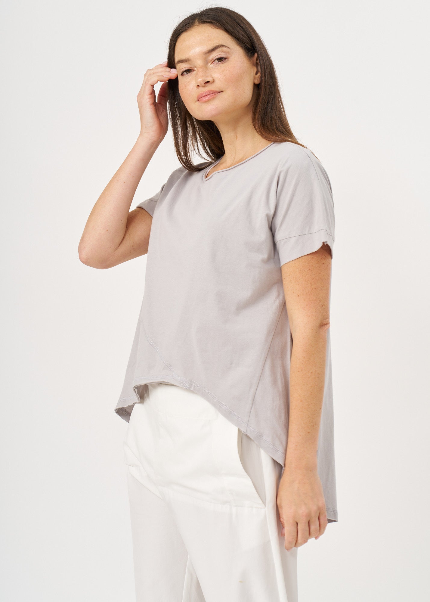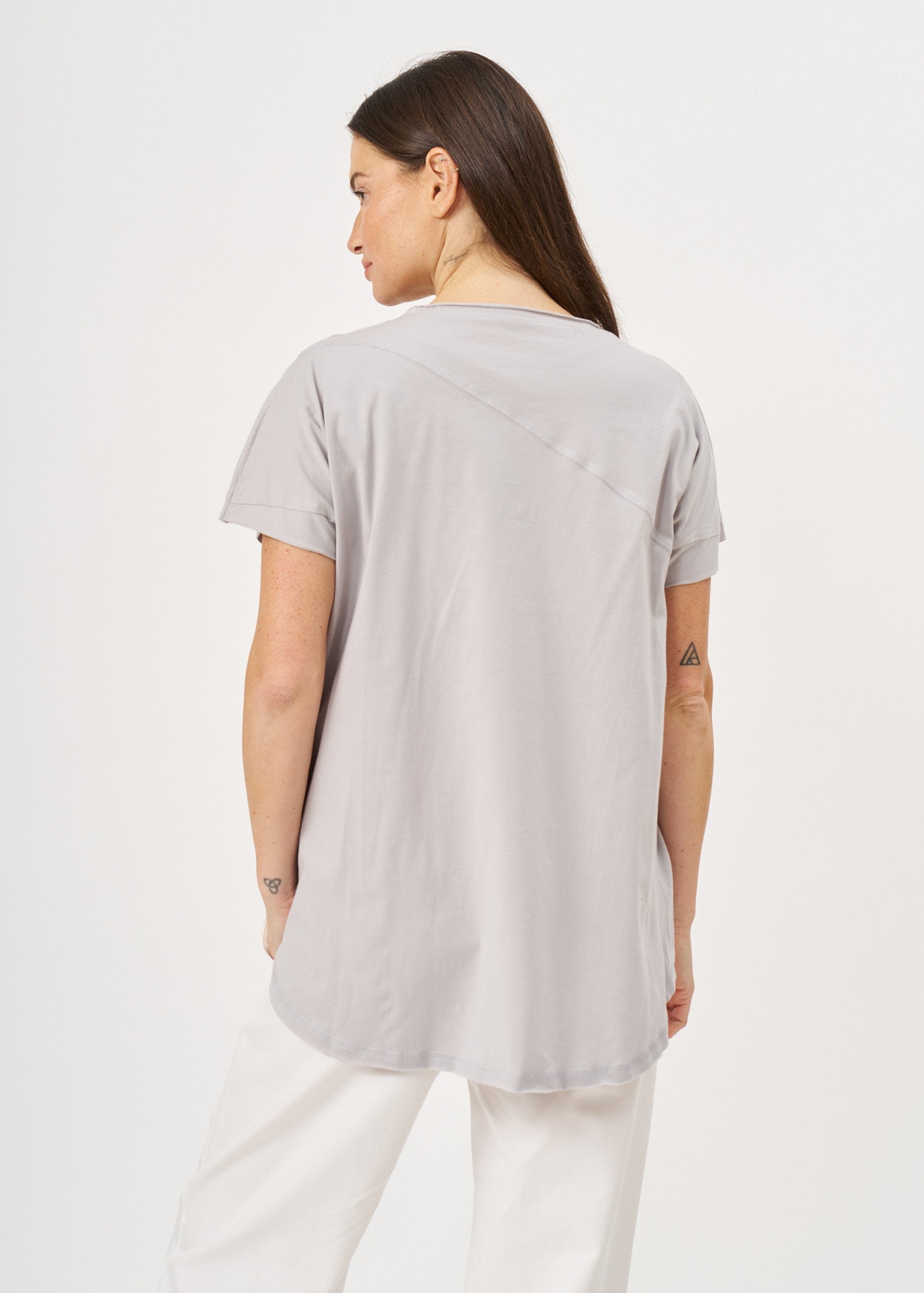 טוניקה שרוול קצר חתכים אלכסוניים אפור בהיר