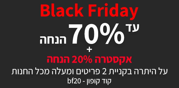 Black Friday|אקסטרה 20% בקניית 2 פריטים ומעלה|קופון - bf20