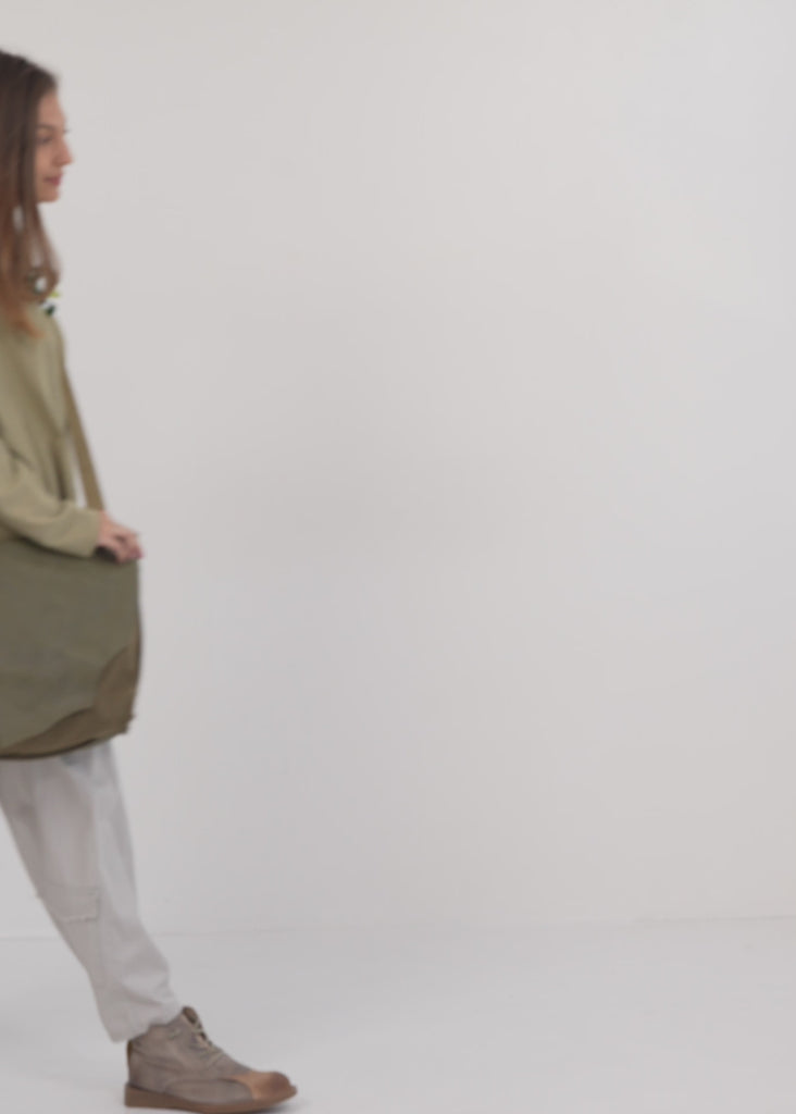טוניקה מעוצבת בגזרה רחבה ומשוחררת עם שרוולים ארוכים וצווארון עגול ומחמיא, בעיצוב אסימטרית עם גב מתארך, בעל תפרים אלכסוניים ודקורטיביים.