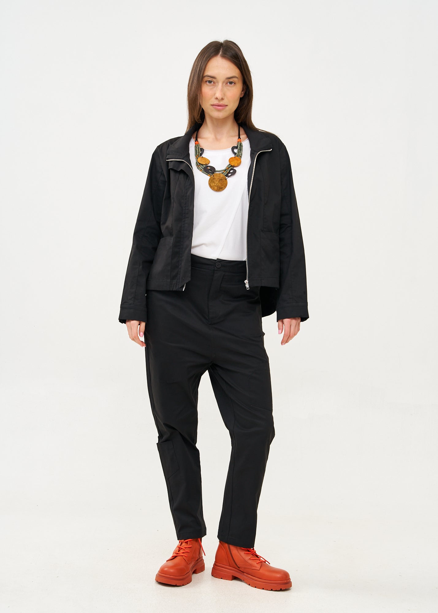 מגפוני עור עם שרוכים ורוכסן כתום