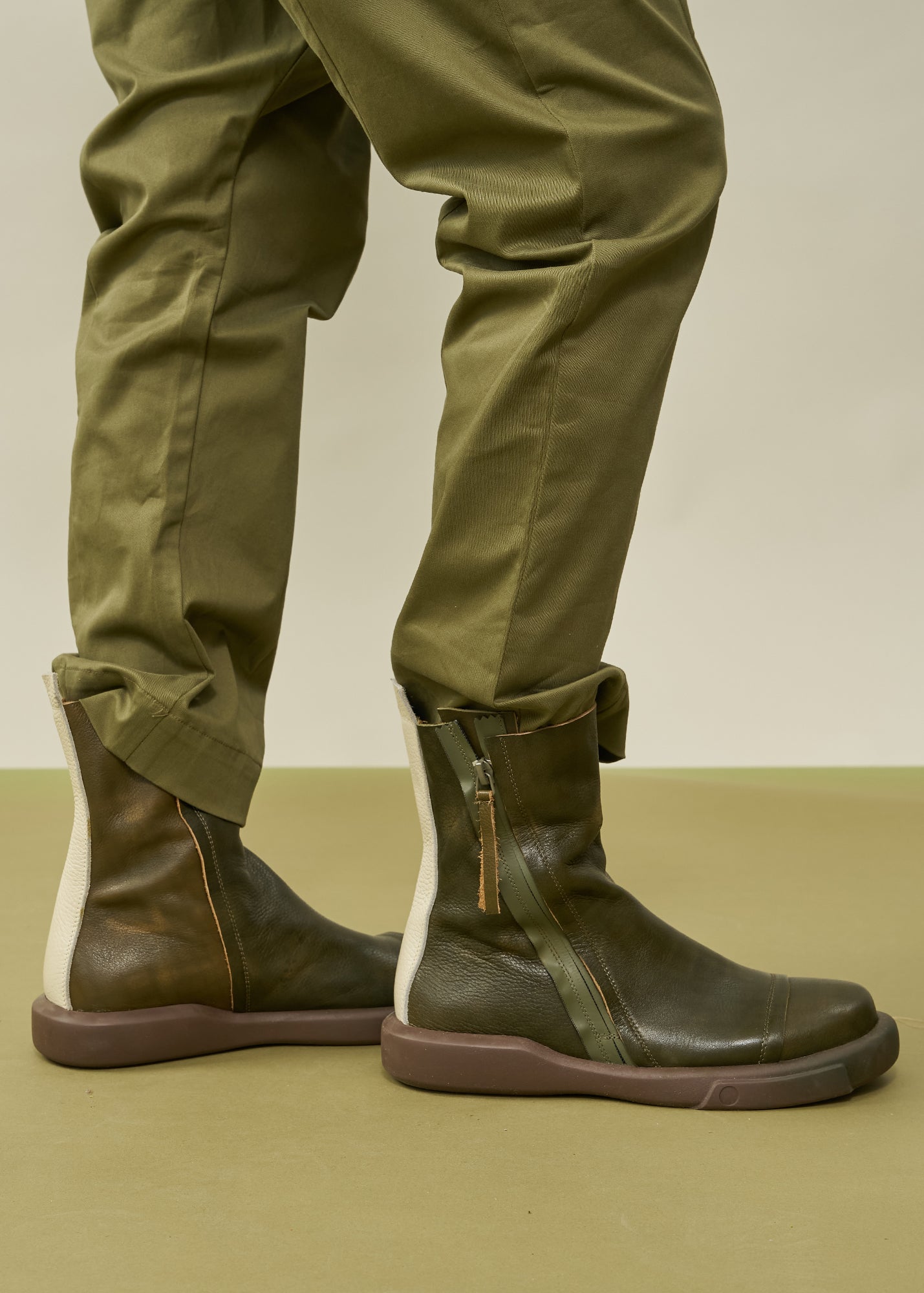 מגפוני נוחות מעור עם רוכסן הפוך חום
