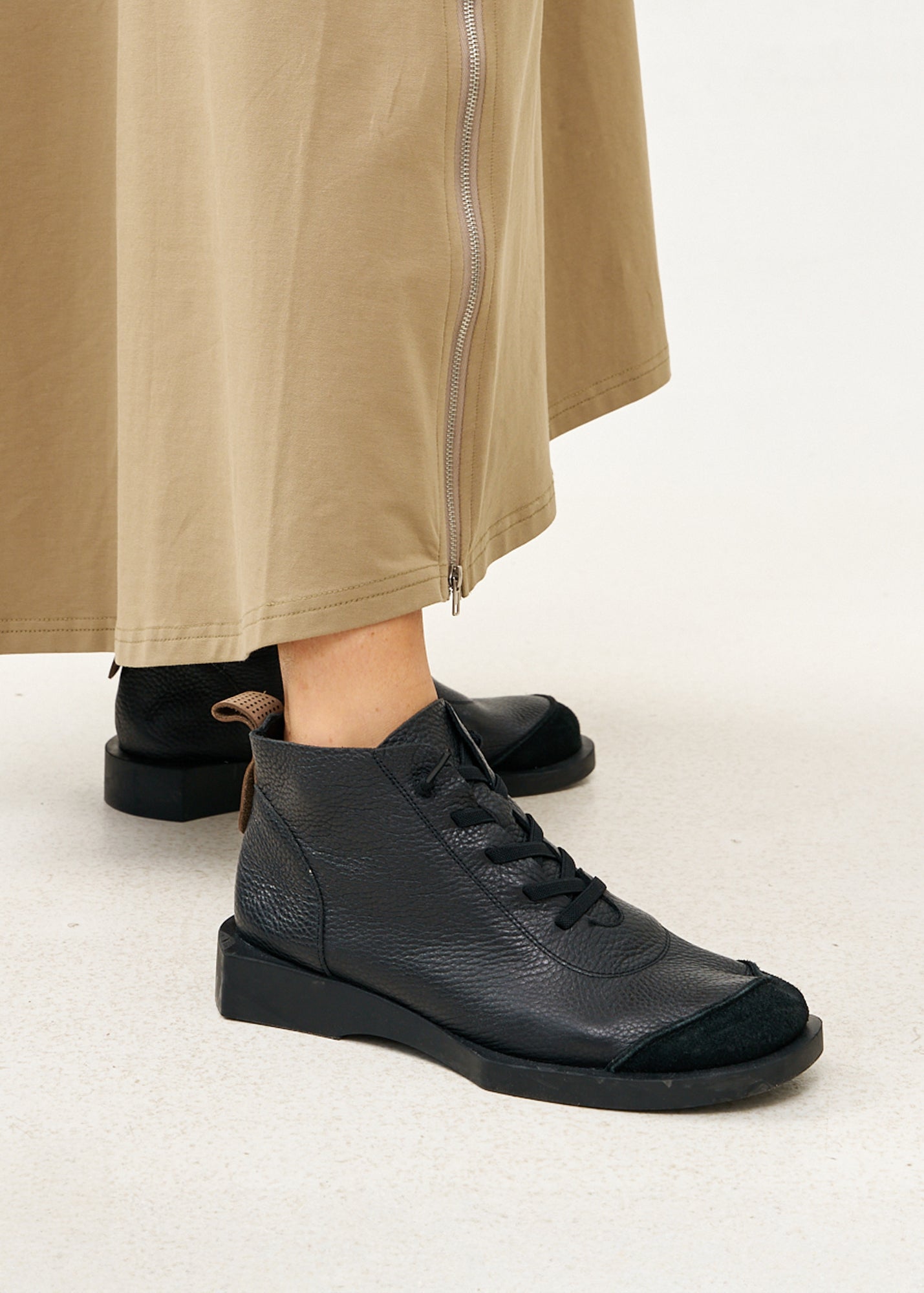 נעלי נוחות גבוהות בגזרה גבוהה המגיעה עד מעל הקרסול ומעניקה תמיכה וחמימות, לצד קווים נקיים ומינימליסטיים שמדגישים את איכות החומרים והעבודה המוקפדת.
