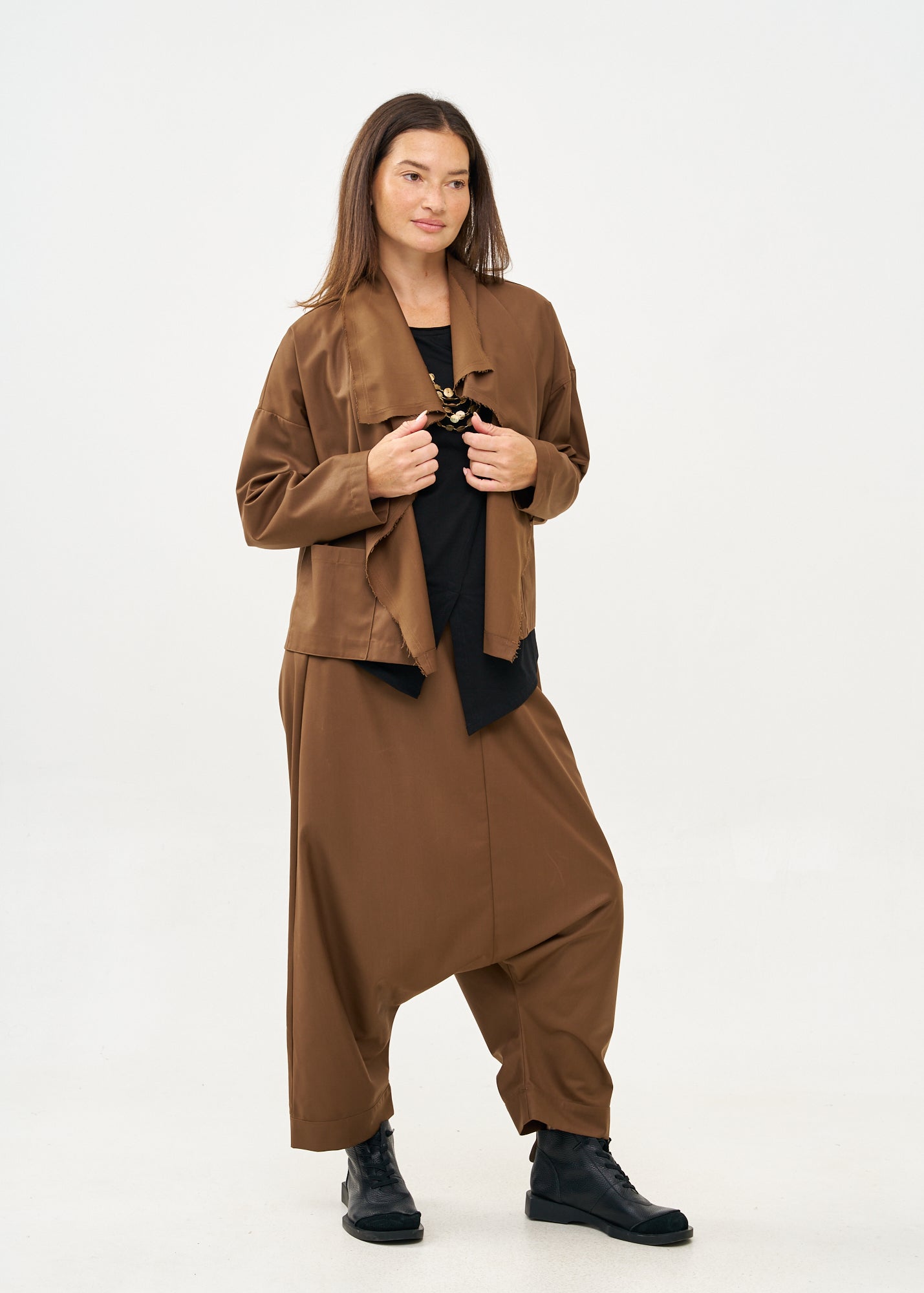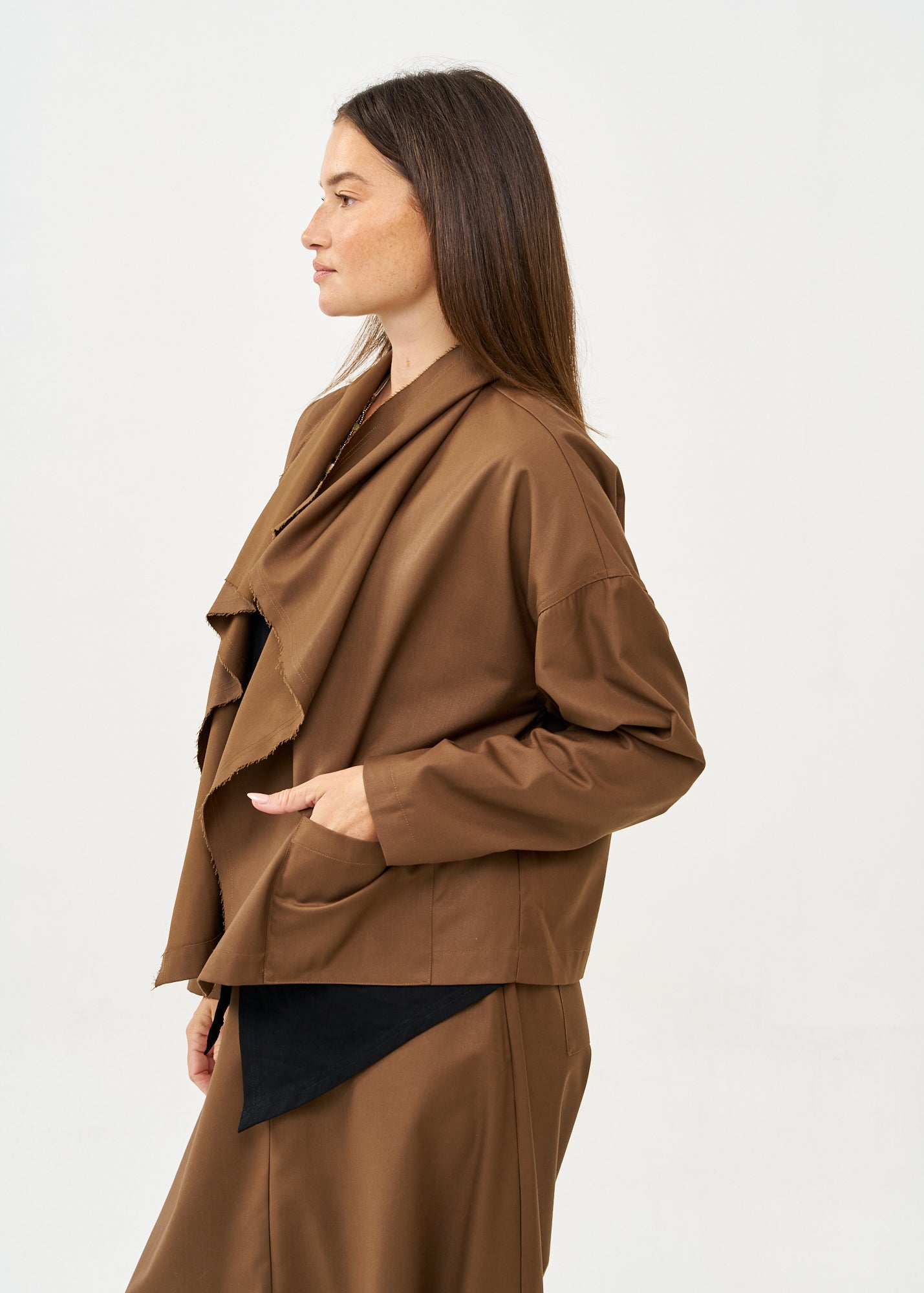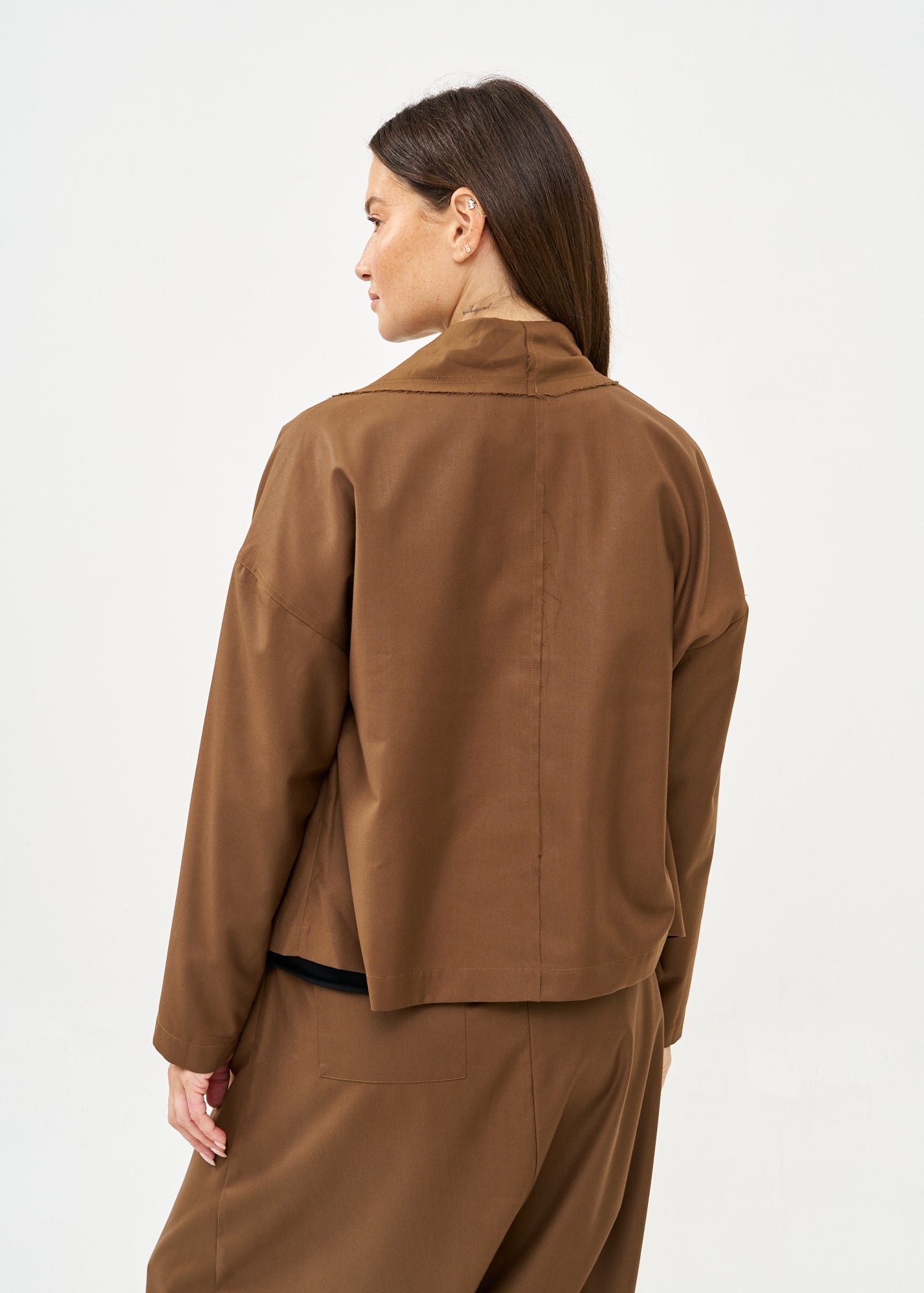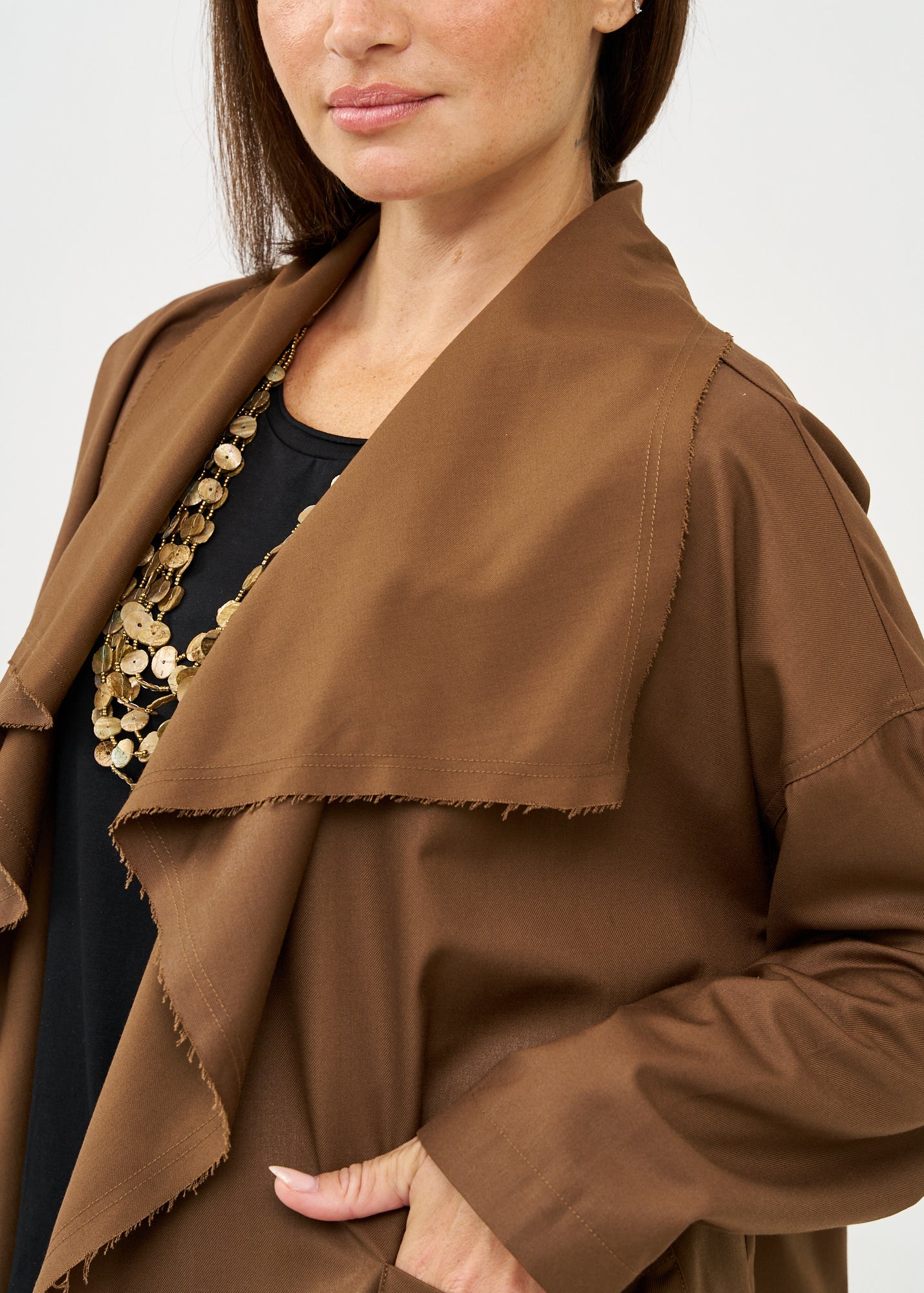 עליונית אלגנטית ומתוחכמת בגזרה קלאסית ונקייה המחמיאה לכל מבנה גוף עם שרוולים ארוכים וכיסים צדדיים המעניקים נוחות ופרקטיות. הפריט בעל גימור של שוליים פרומים לאורך הדשים והכיסים המעניקים מראה עשיר ומעוטר.