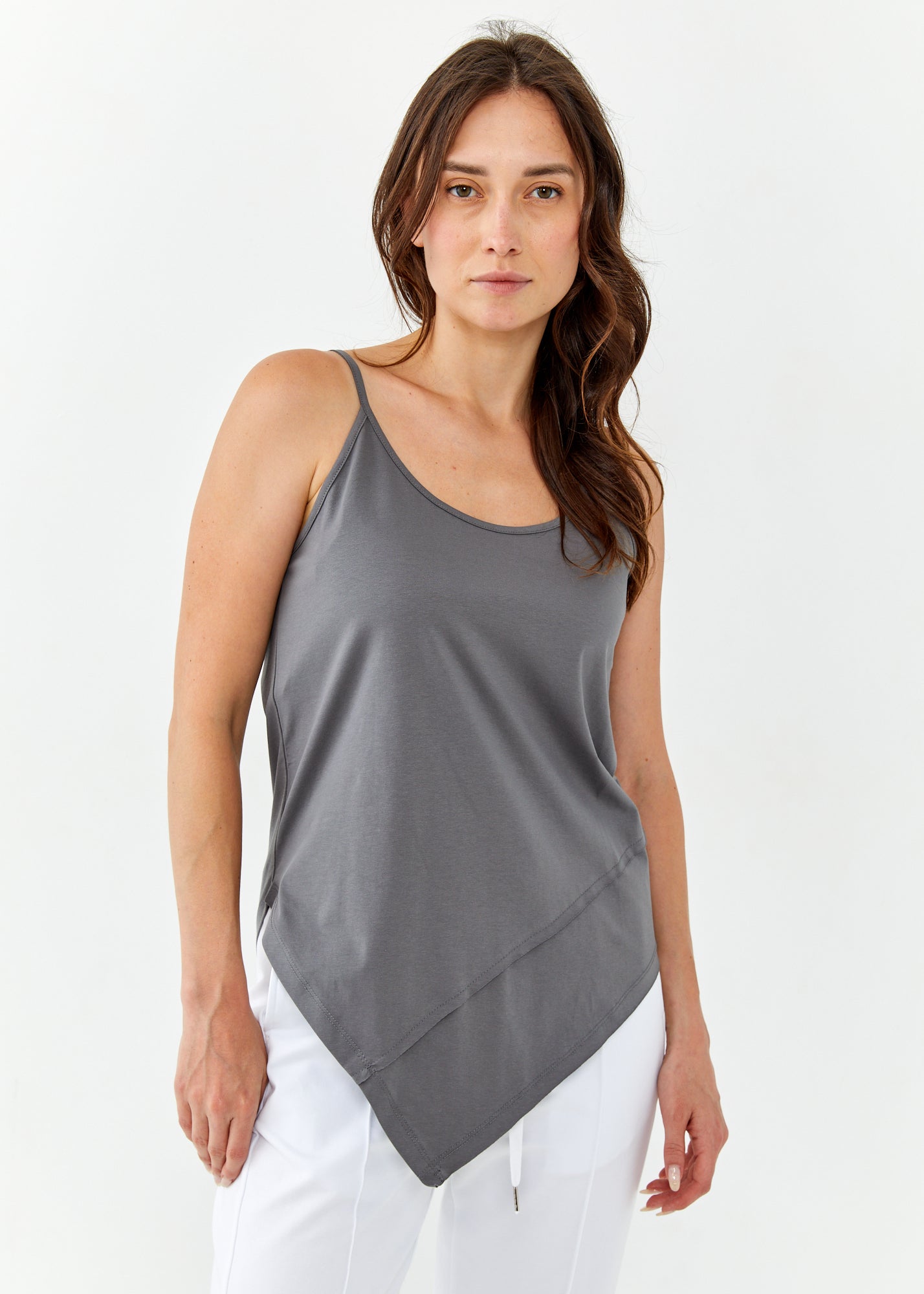 גופיה ספגטי שפיץ קדימה אפור כהה