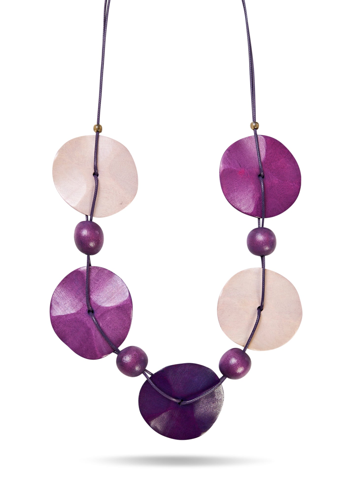 שרשרת עבודת יד עיגולים וחרוזים מעץ גדולה סגול