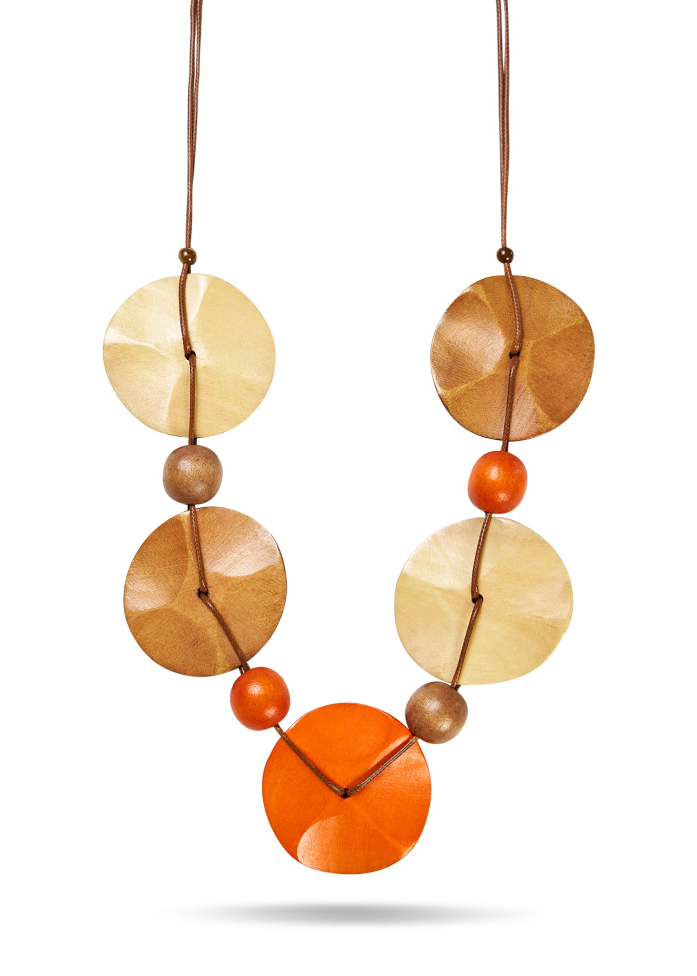 שרשרת עבודת יד עיגולים וחרוזים מעץ גדולה כתום