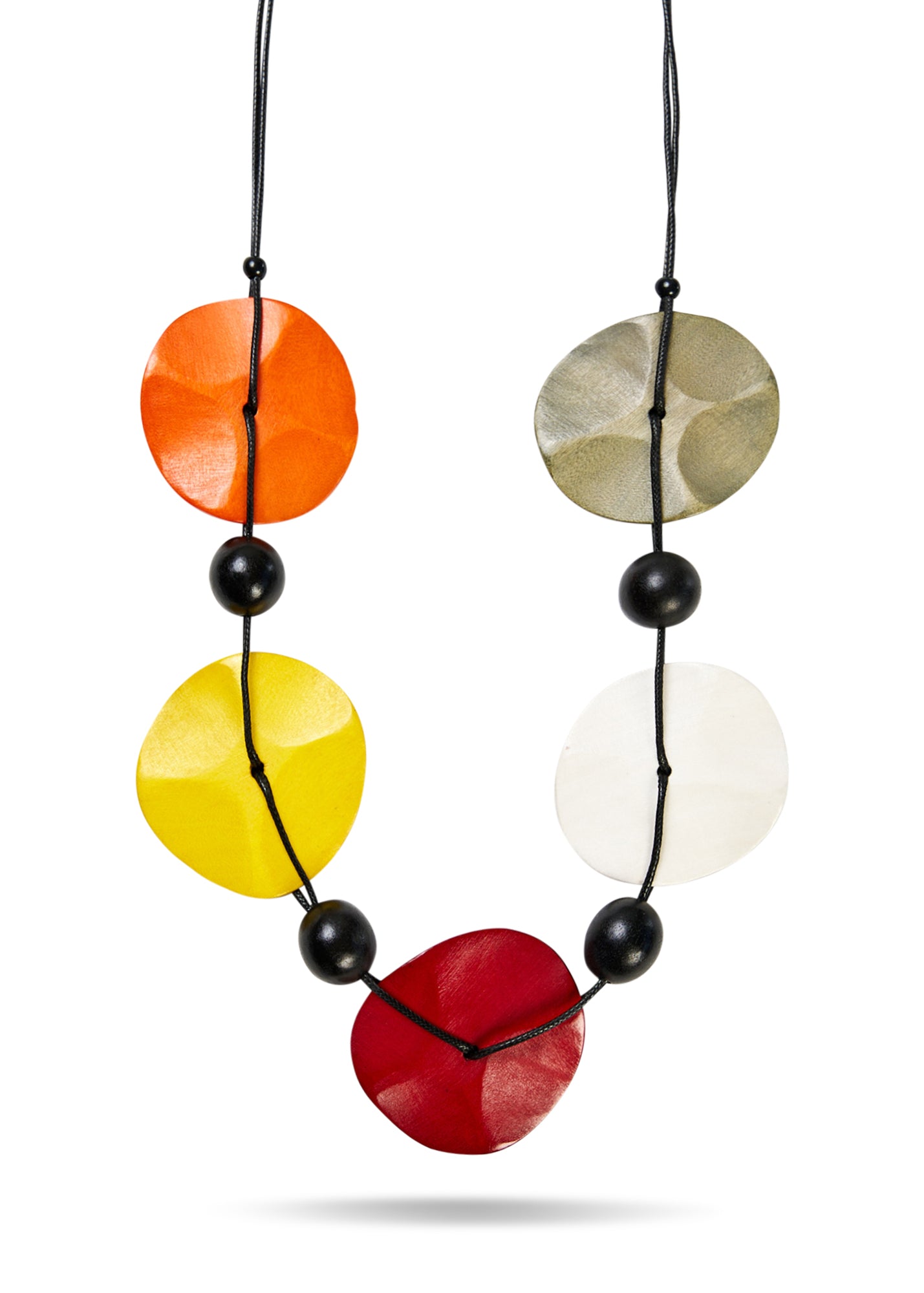 שרשרת עבודת יד עיגולים וחרוזים מעץ גדולה צבעוני
