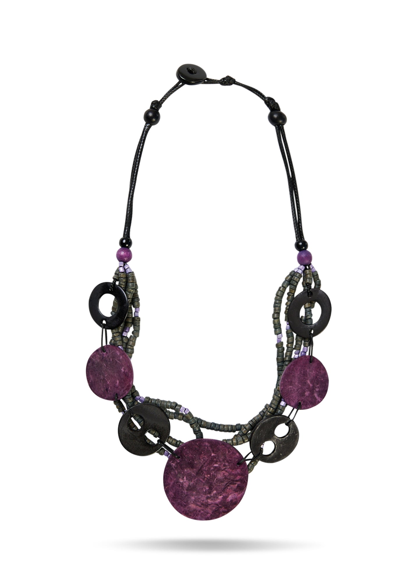 שרשרת שורות חרוזים ודסקיות קוקוס גדולה סגול