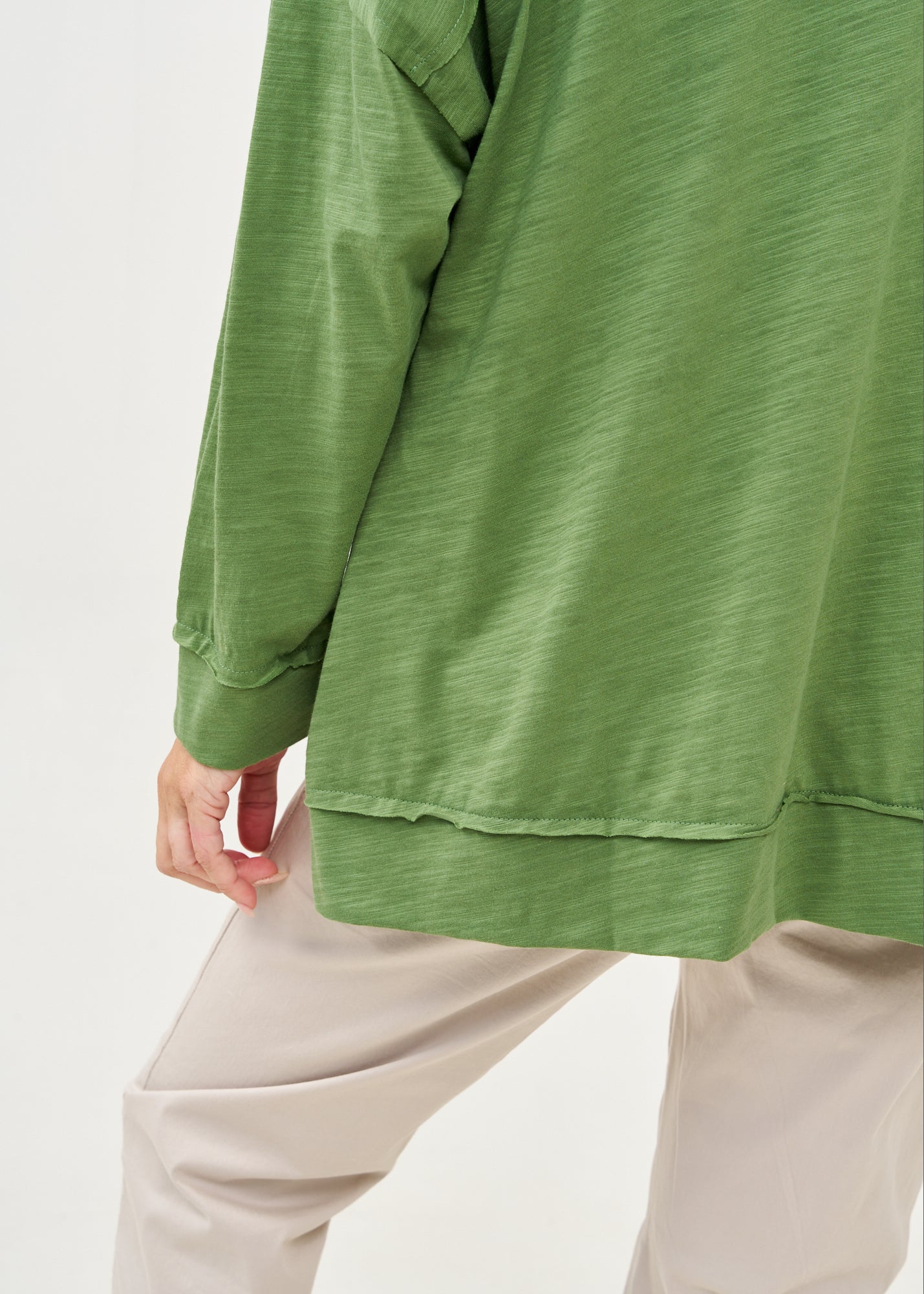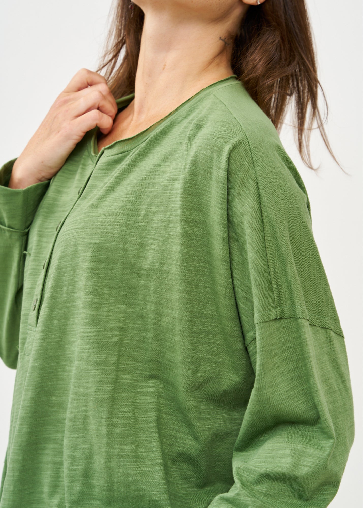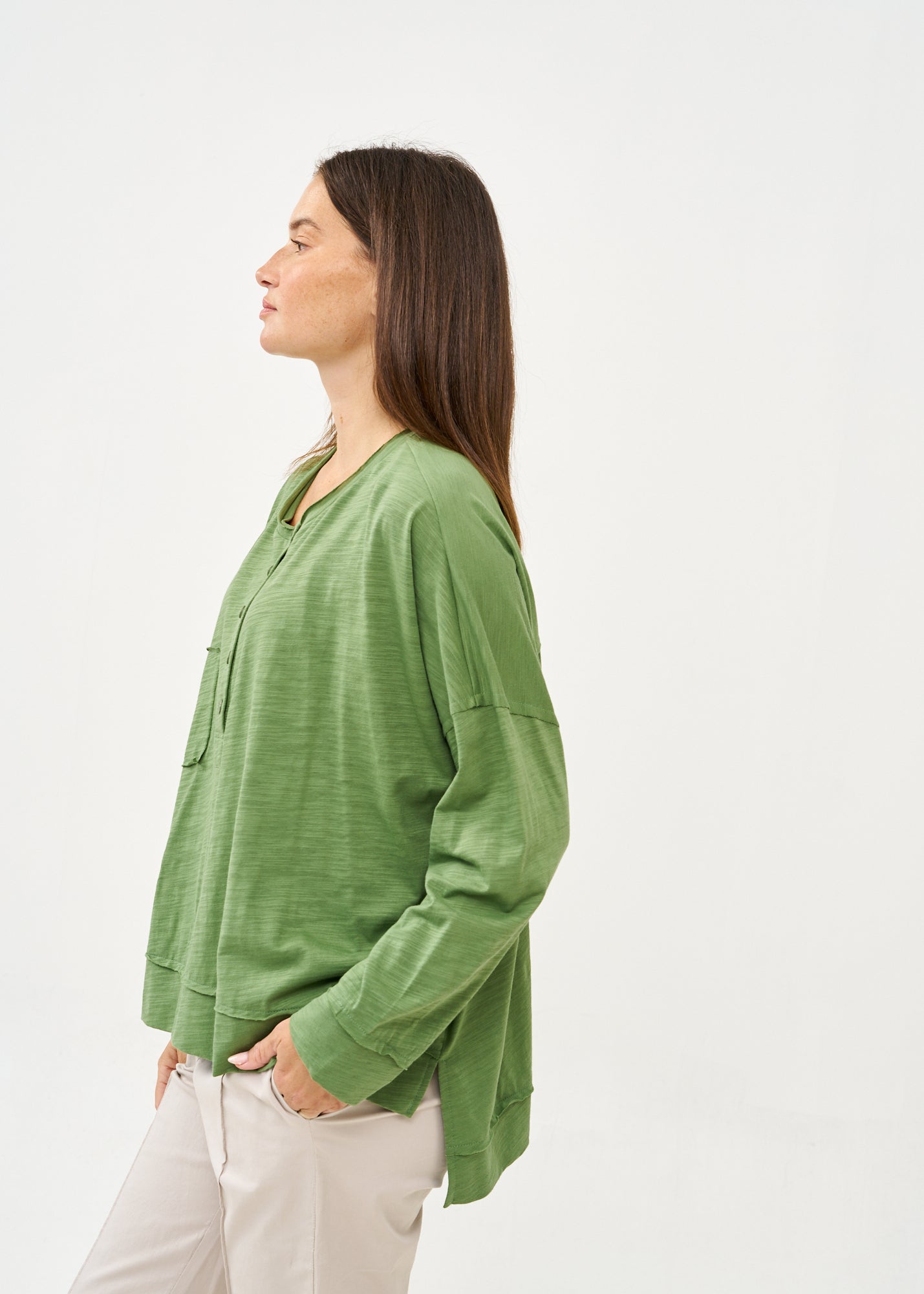 חולצה שרוול ארוך חצי כפתרה ודמוי כיס ירוק
