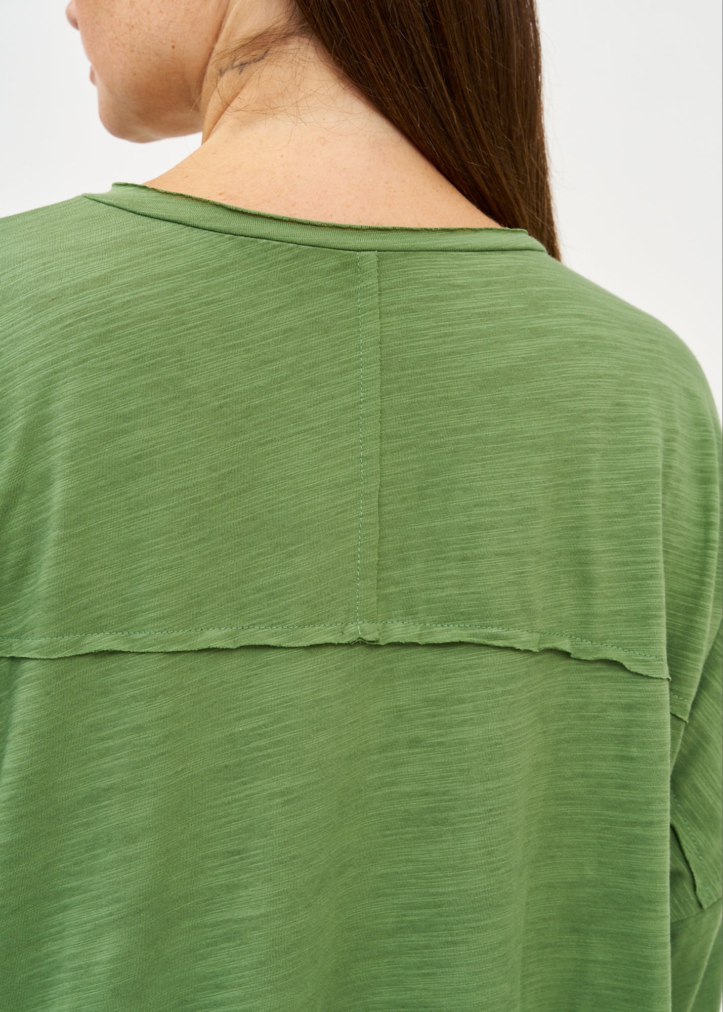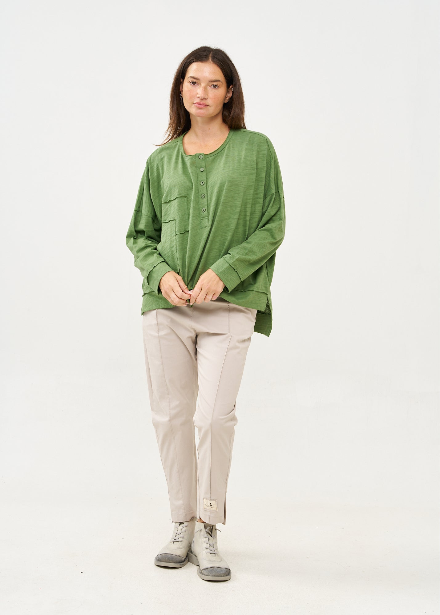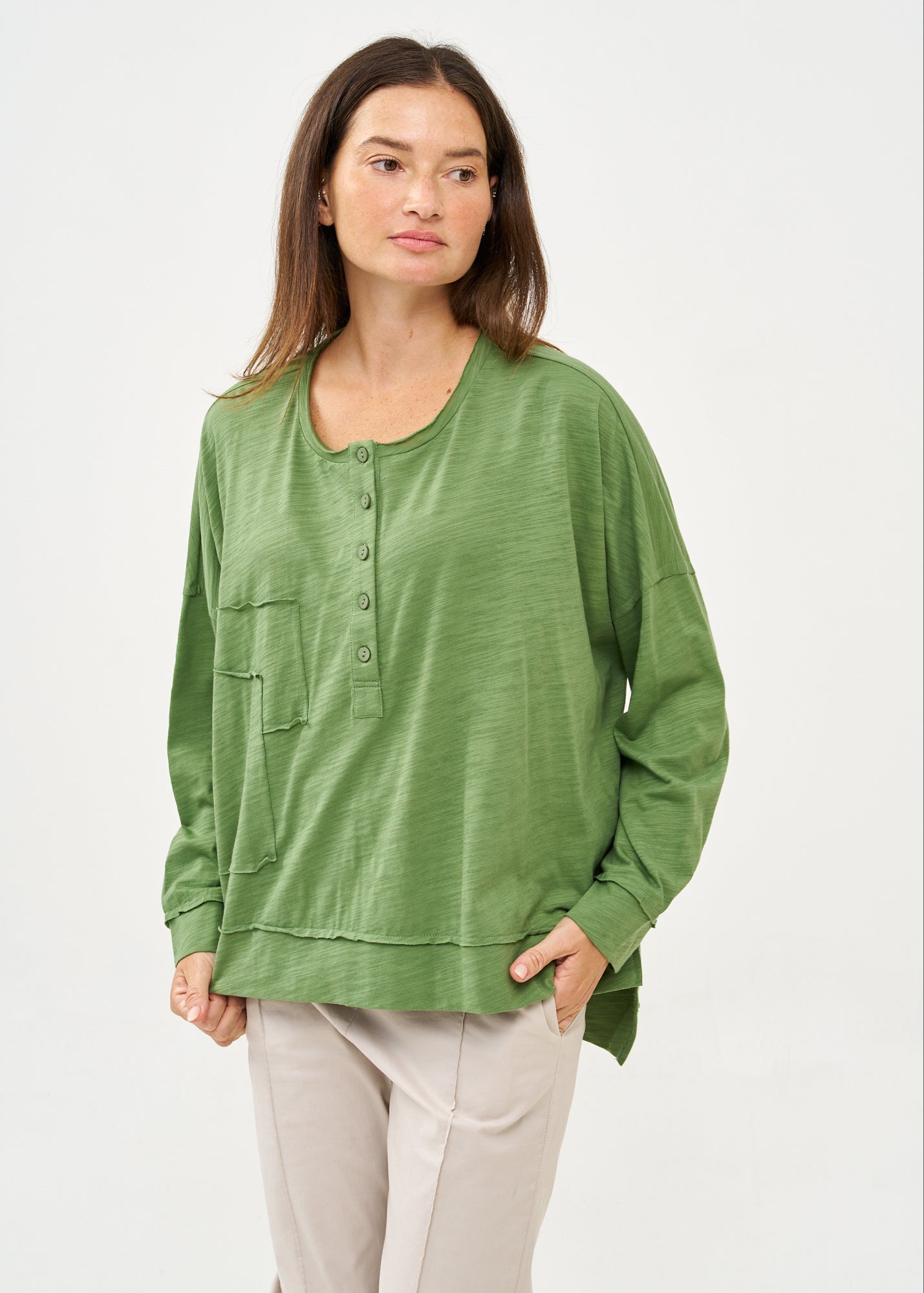 חולצה שרוול ארוך חצי כפתרה ודמוי כיס ירוק