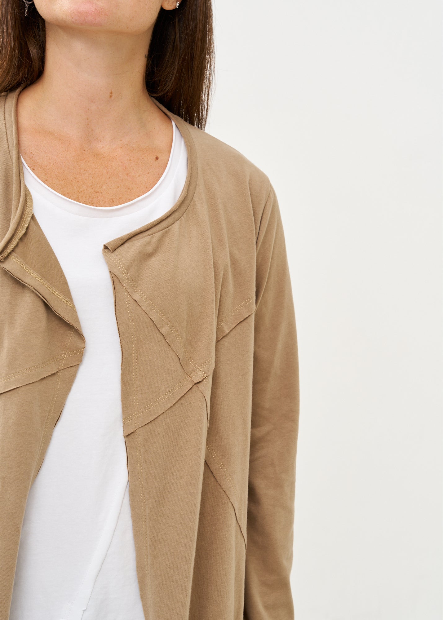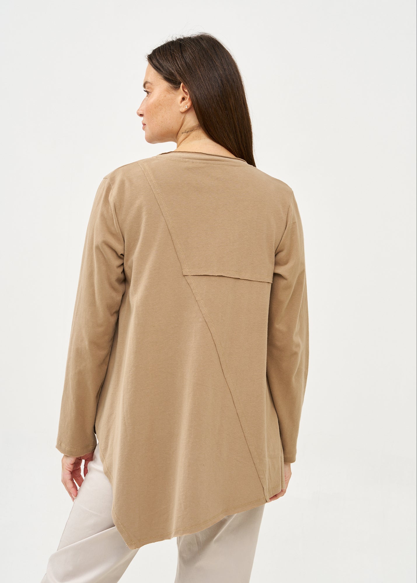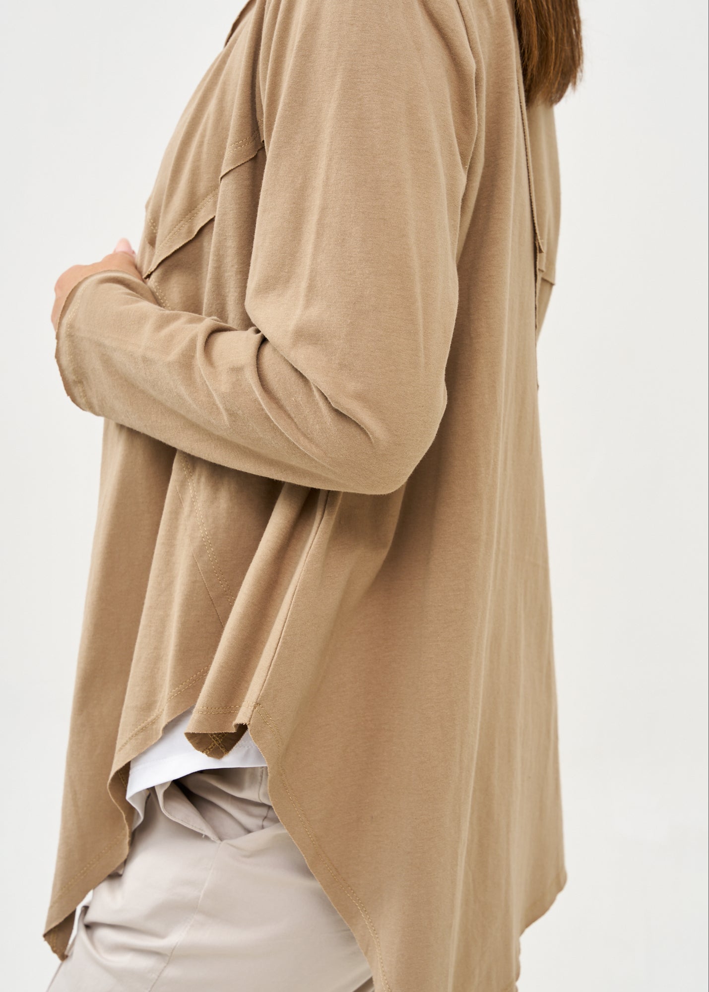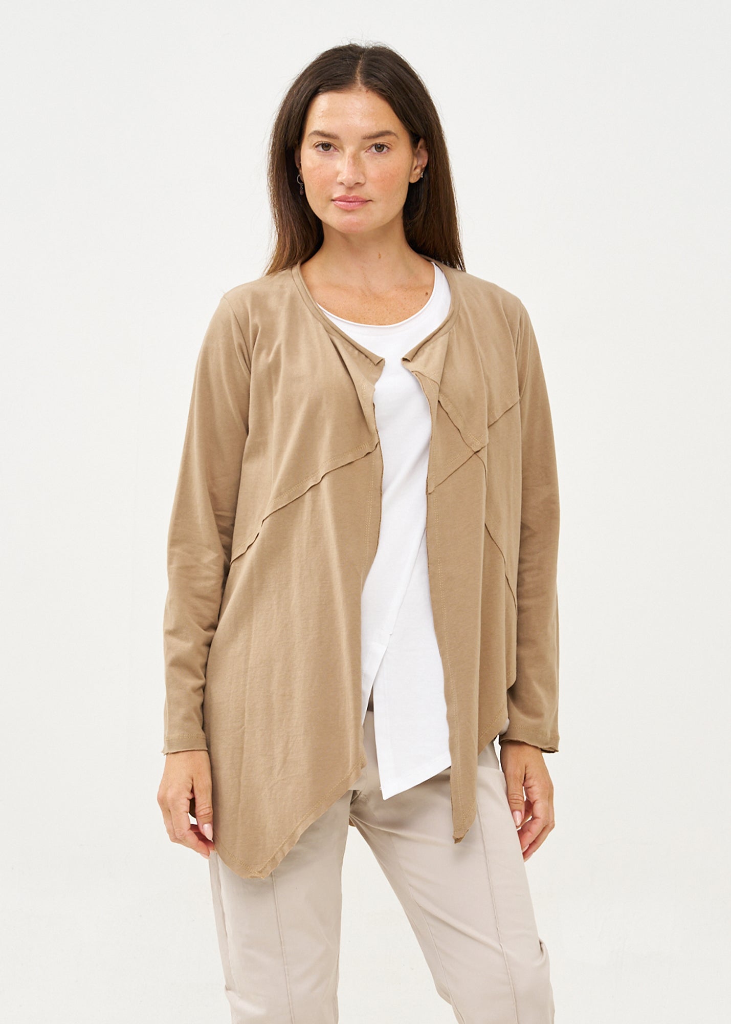 עליונית פתוחה דקה שרוול ארוך חום