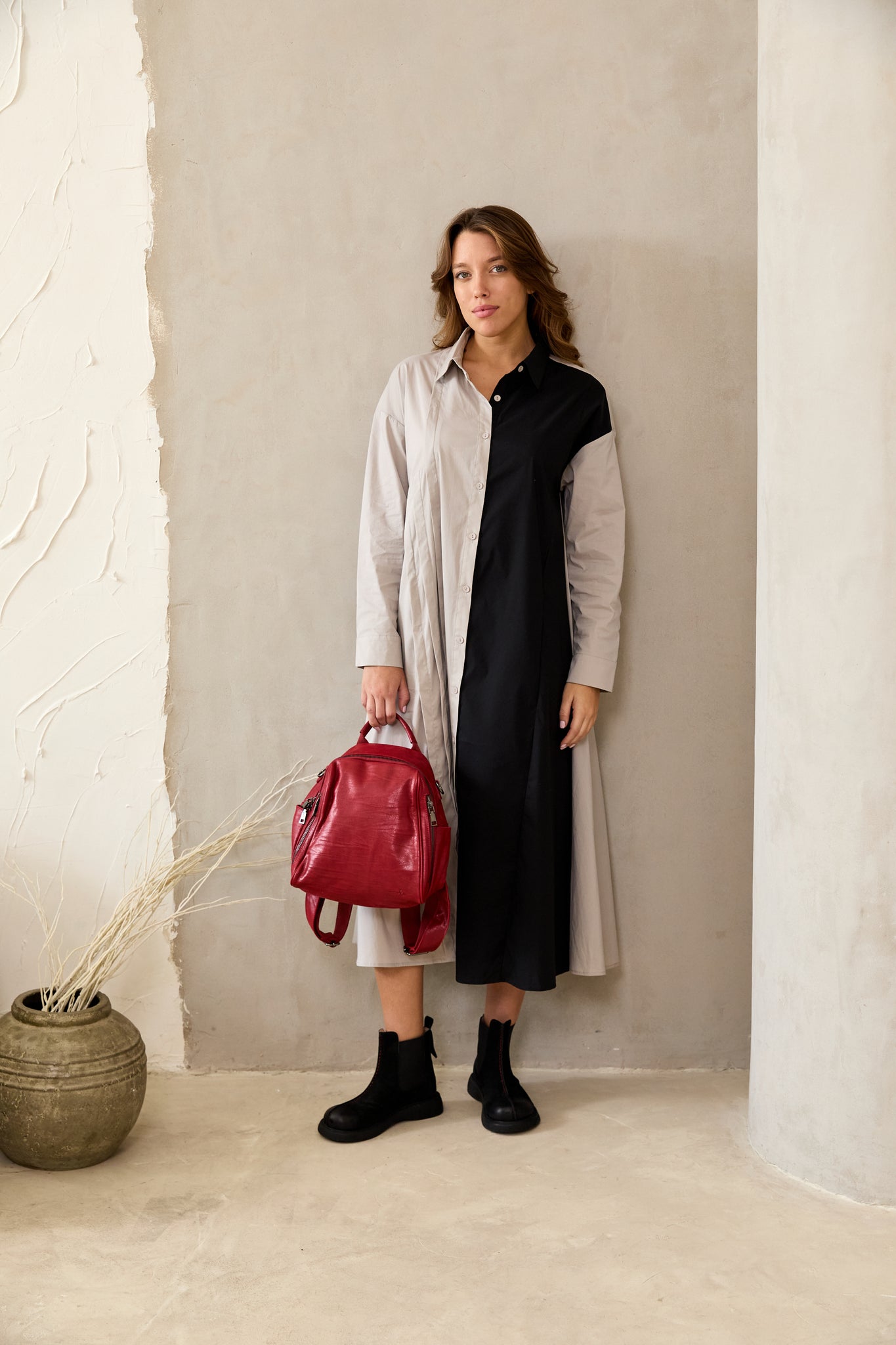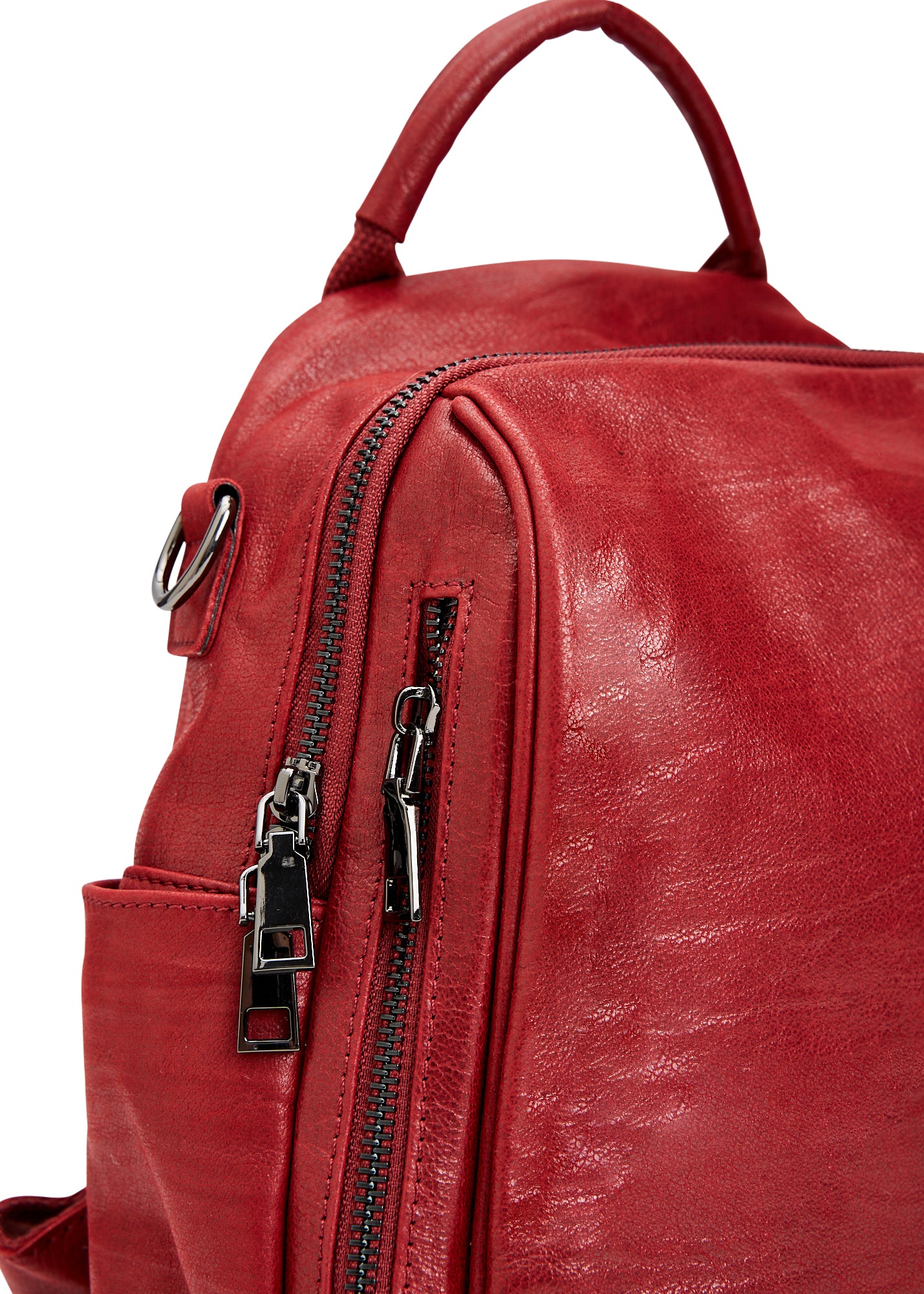 Small leather backpack red side compartments