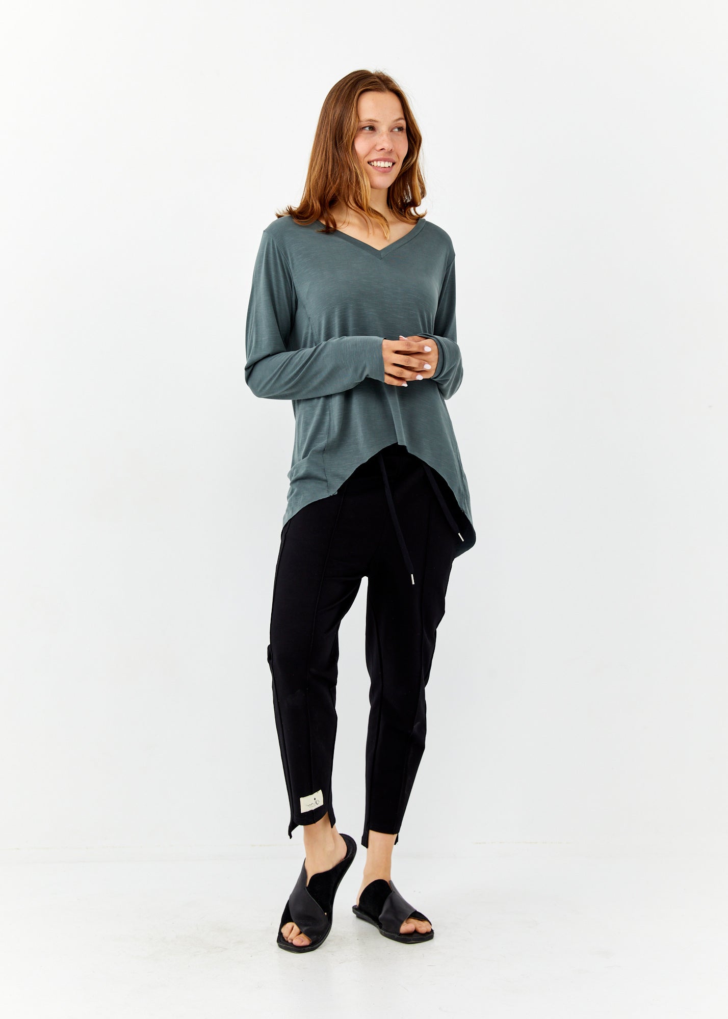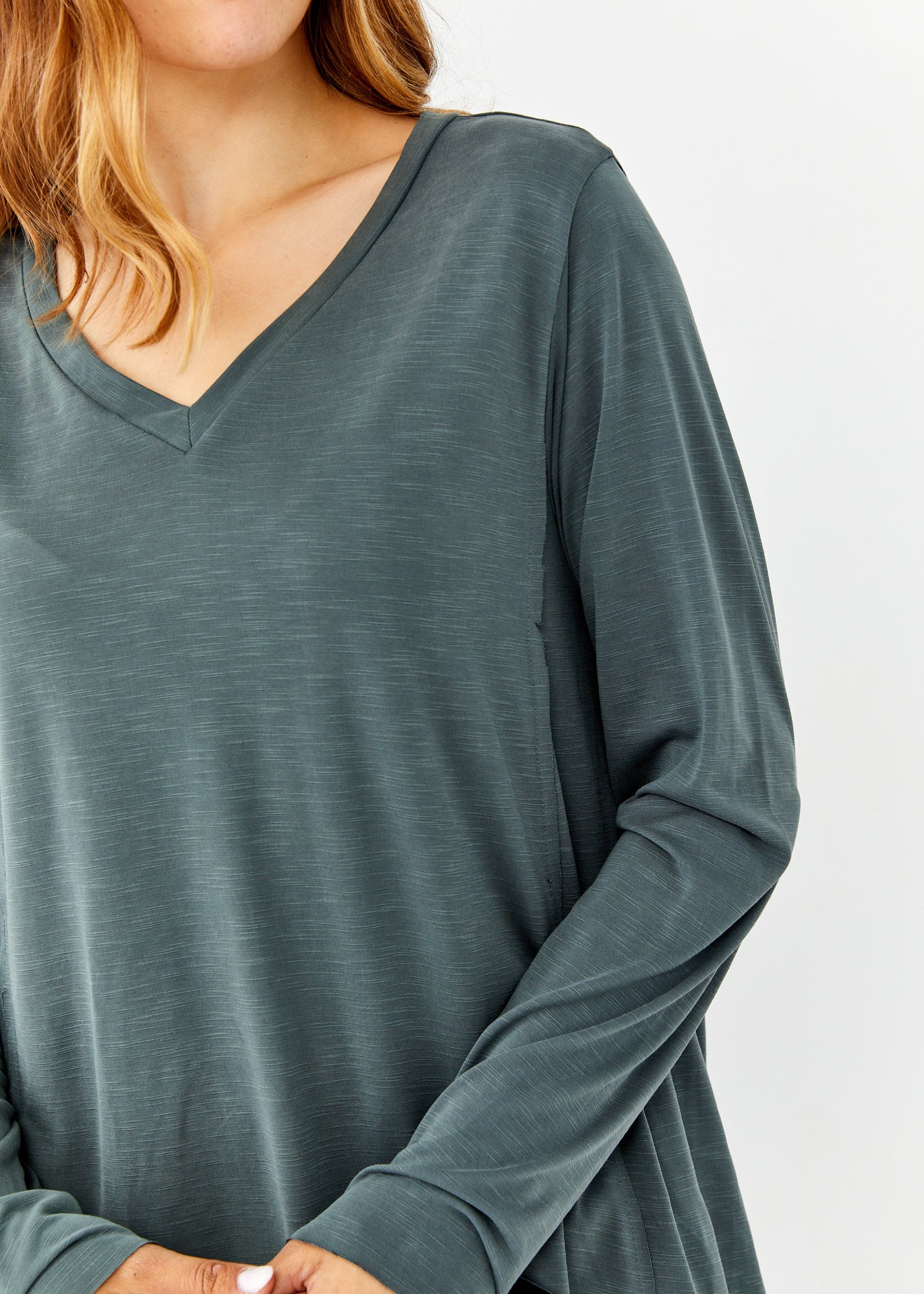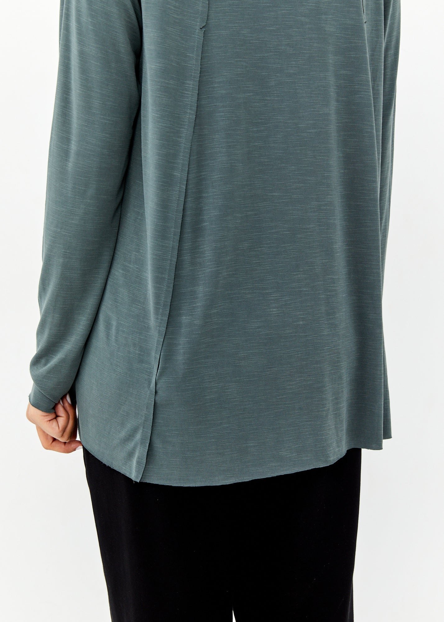 חולצה שרוול ארוך וצווארון וי בד סלאב ירוק