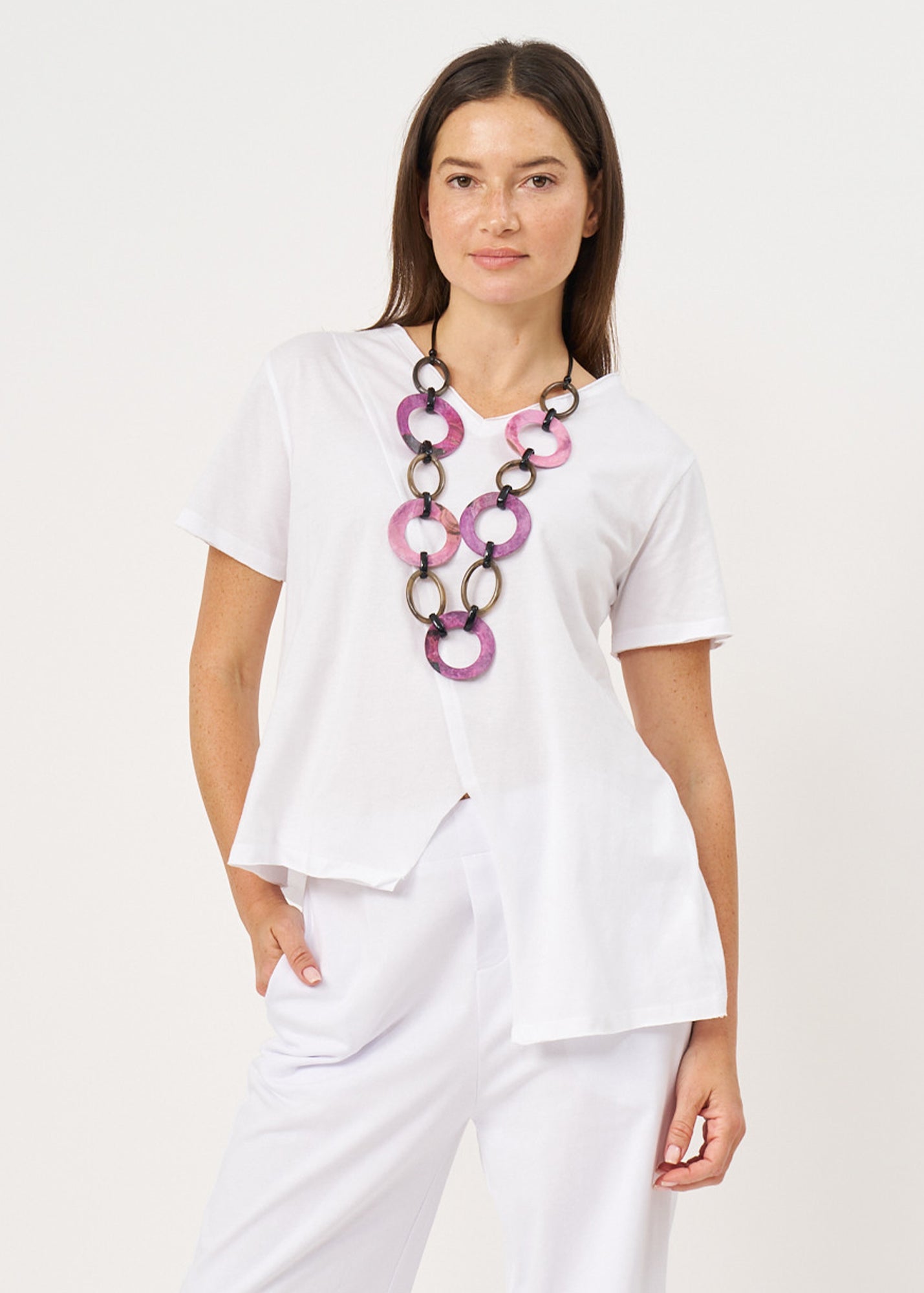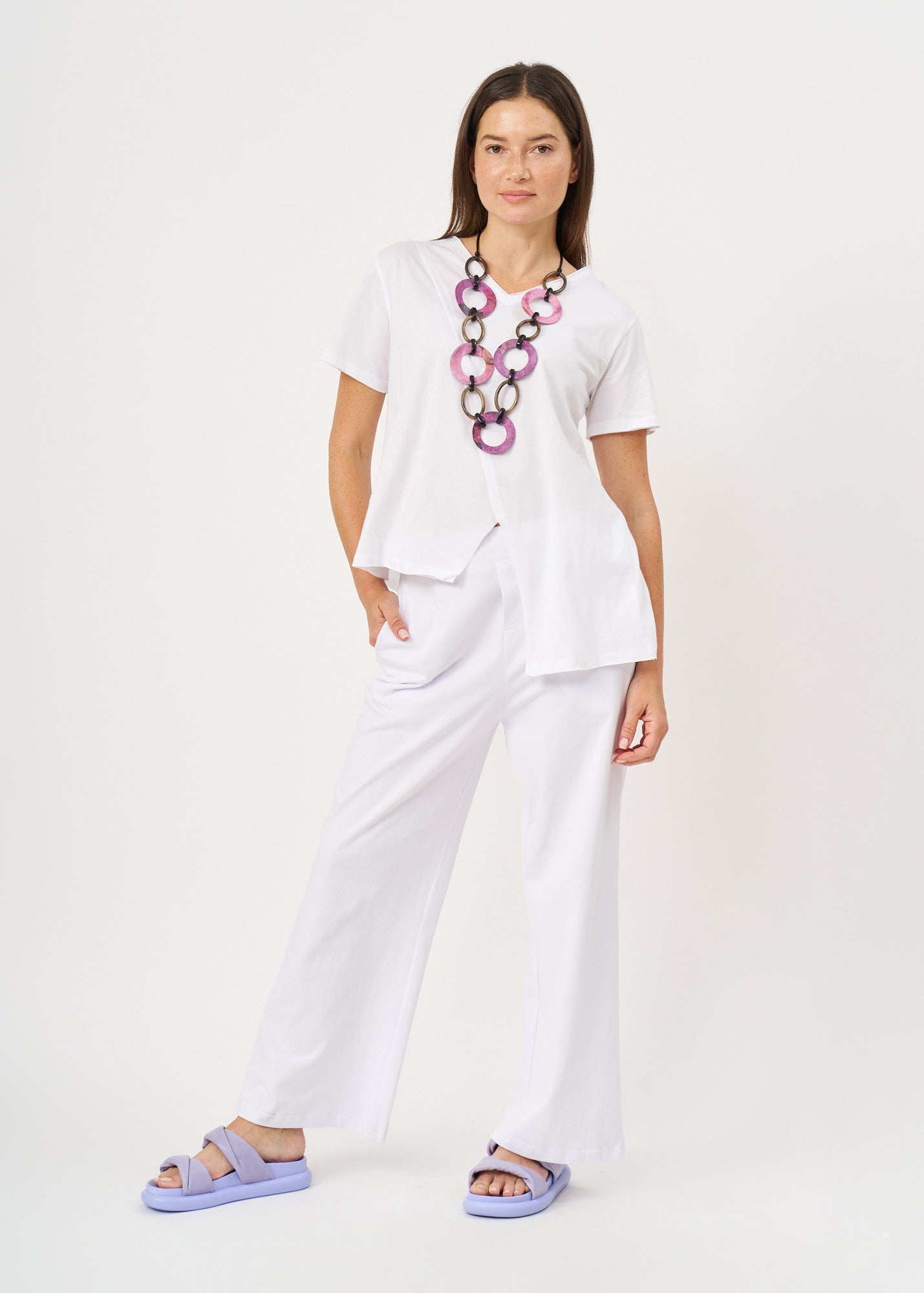 טי שרט חתך אלכסוני אורך א-סימטרי לבן