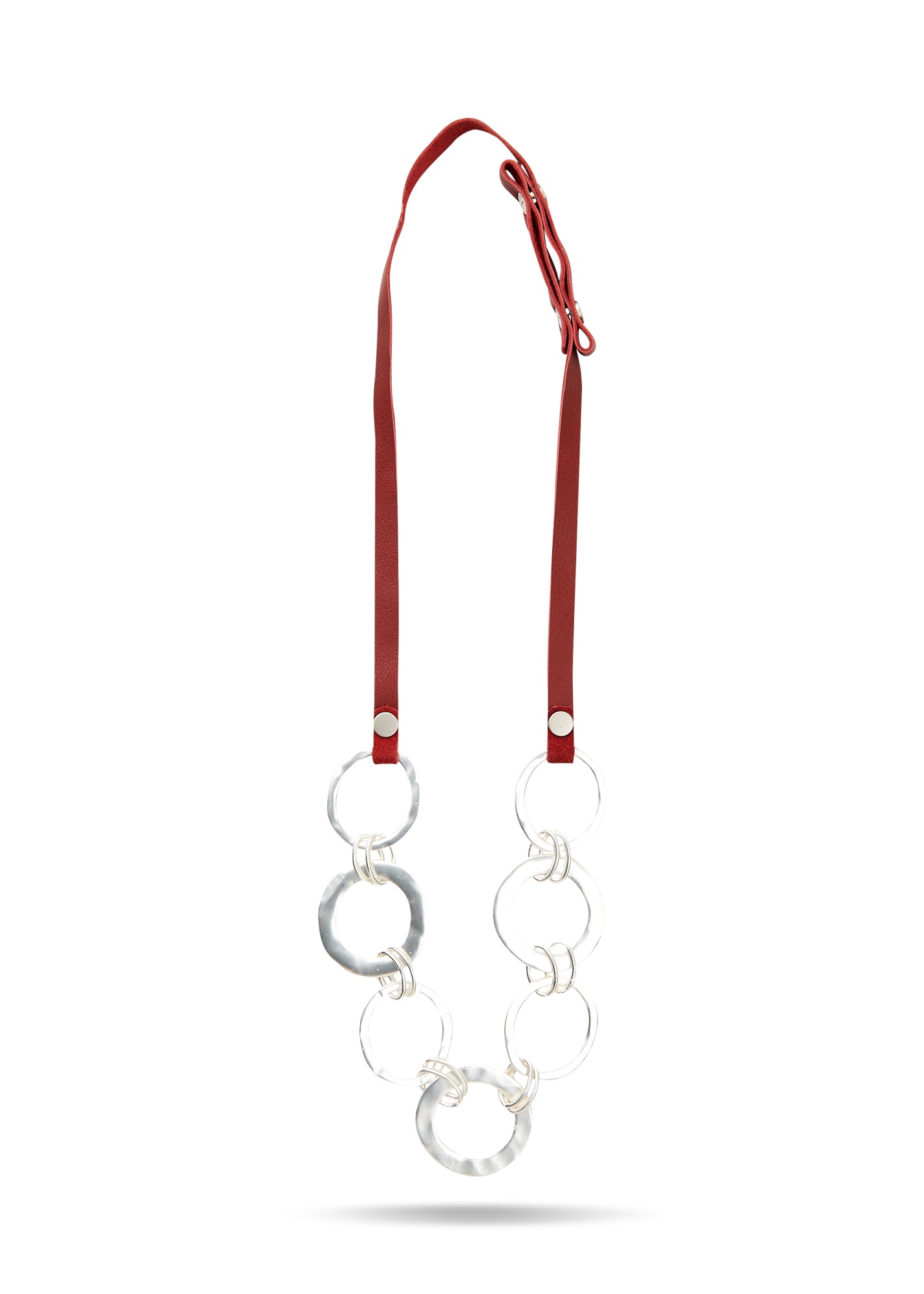 שרשרת בעשוי מרצועת עור במגוון צבעים ועליה מחוברות לולאות מתכת אשר נותנות לשרשרת עיצוב ייחודי וקלאסי שיקפיץ וישדרג כל לוק שתבחרי.