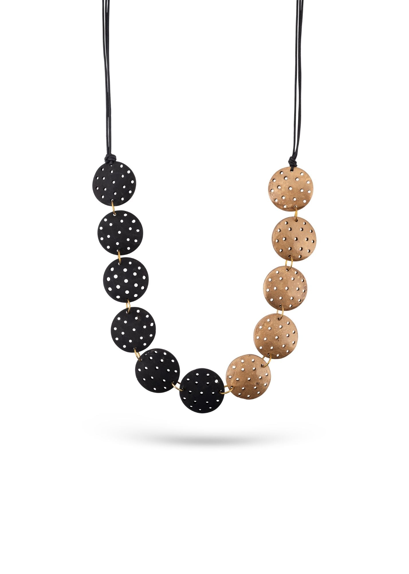 שרשרת כפתורי קוקוס מחוררים זהב שחור